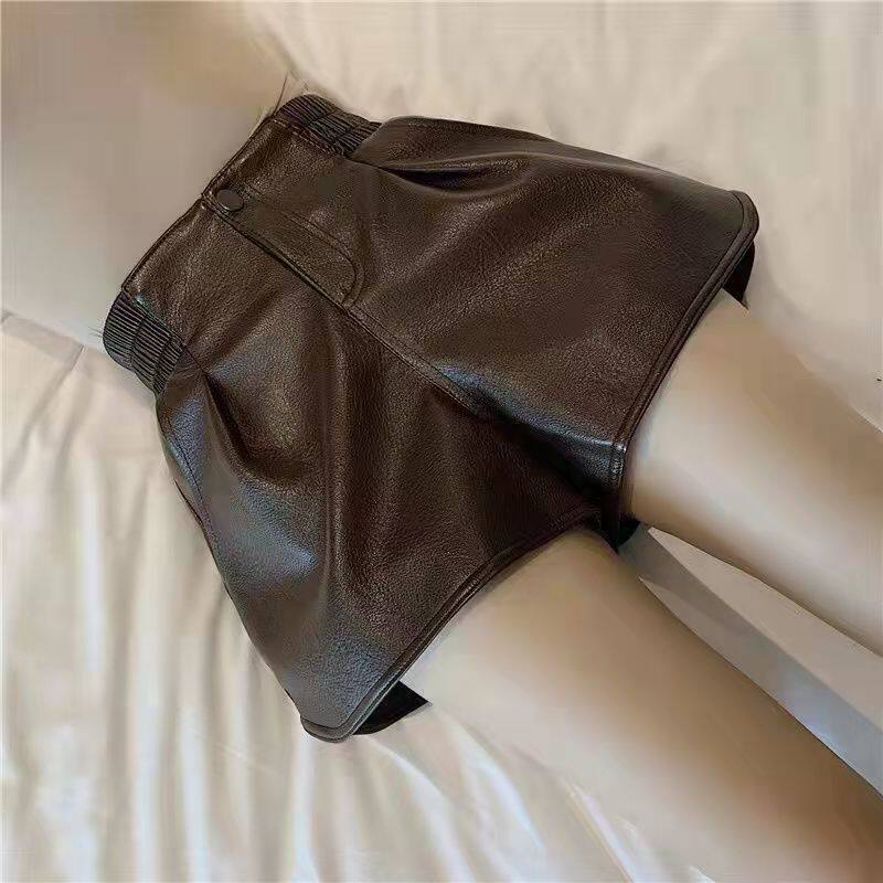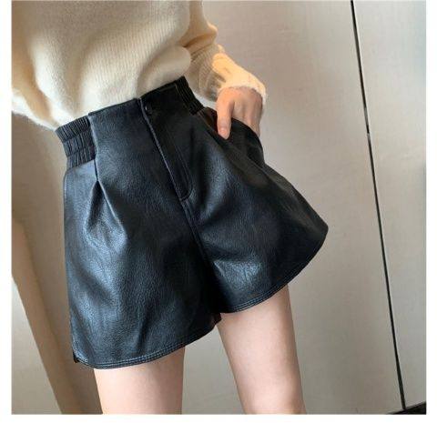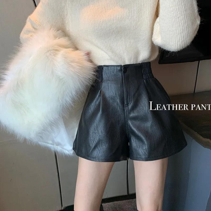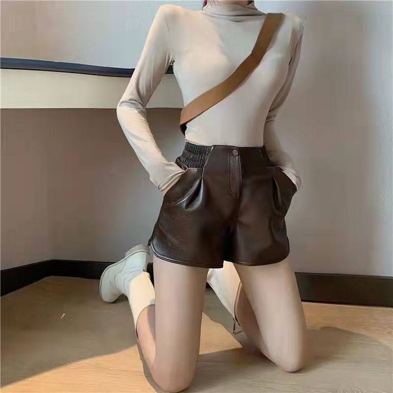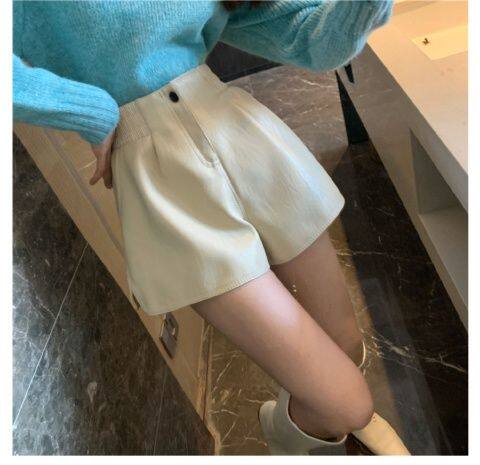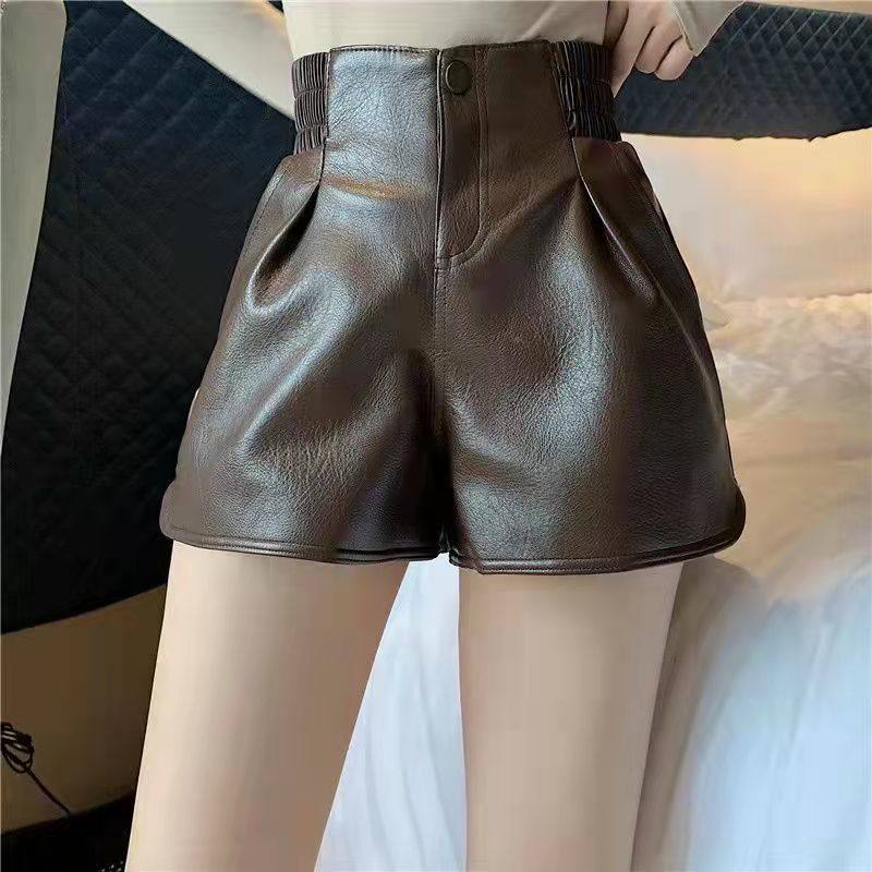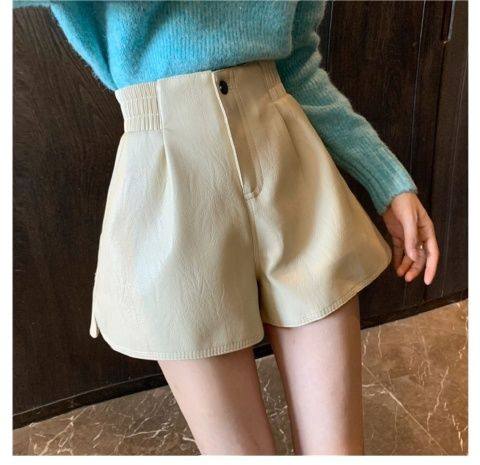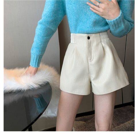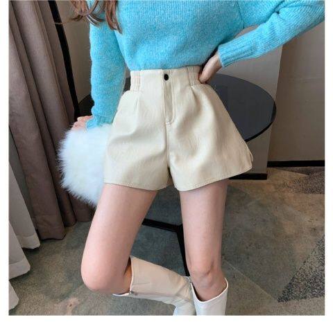 白色皮短褲女秋冬外穿高腰a字濶腿褲皮褲春季春款打底靴褲小個子