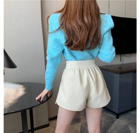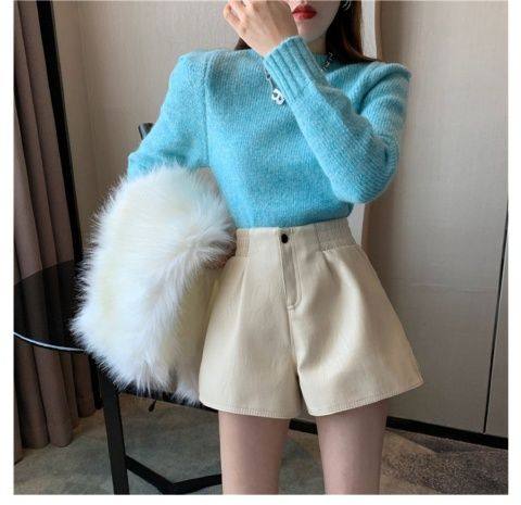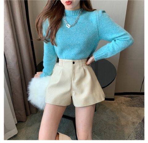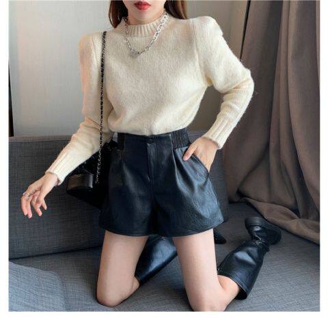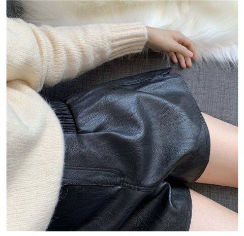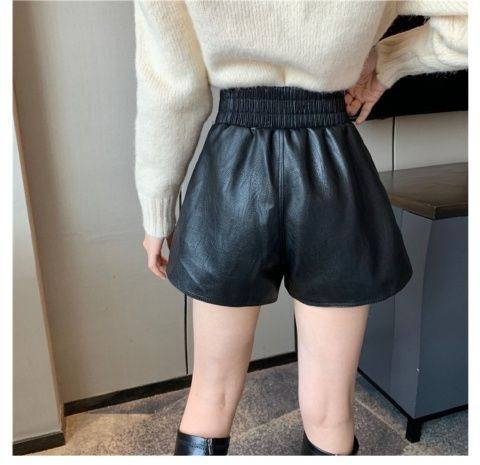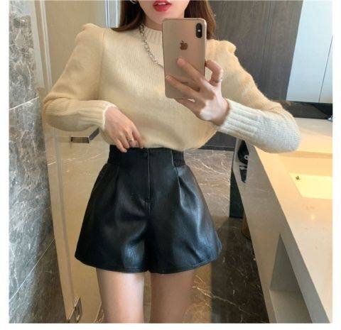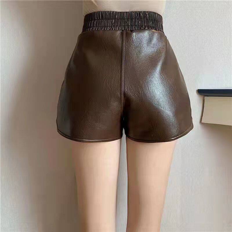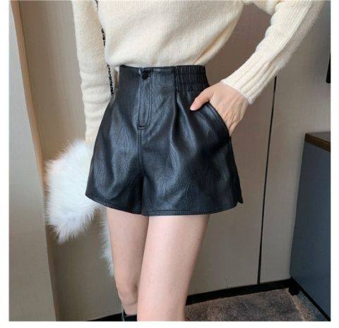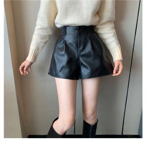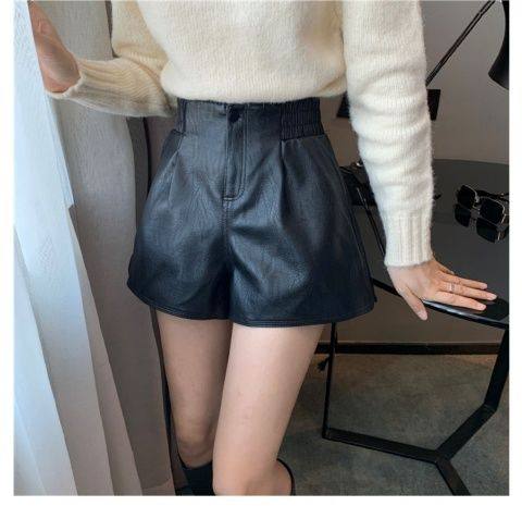 白色皮短褲女秋冬外穿高腰a字濶腿褲皮褲春季春款打底靴褲小個子