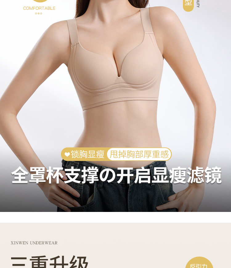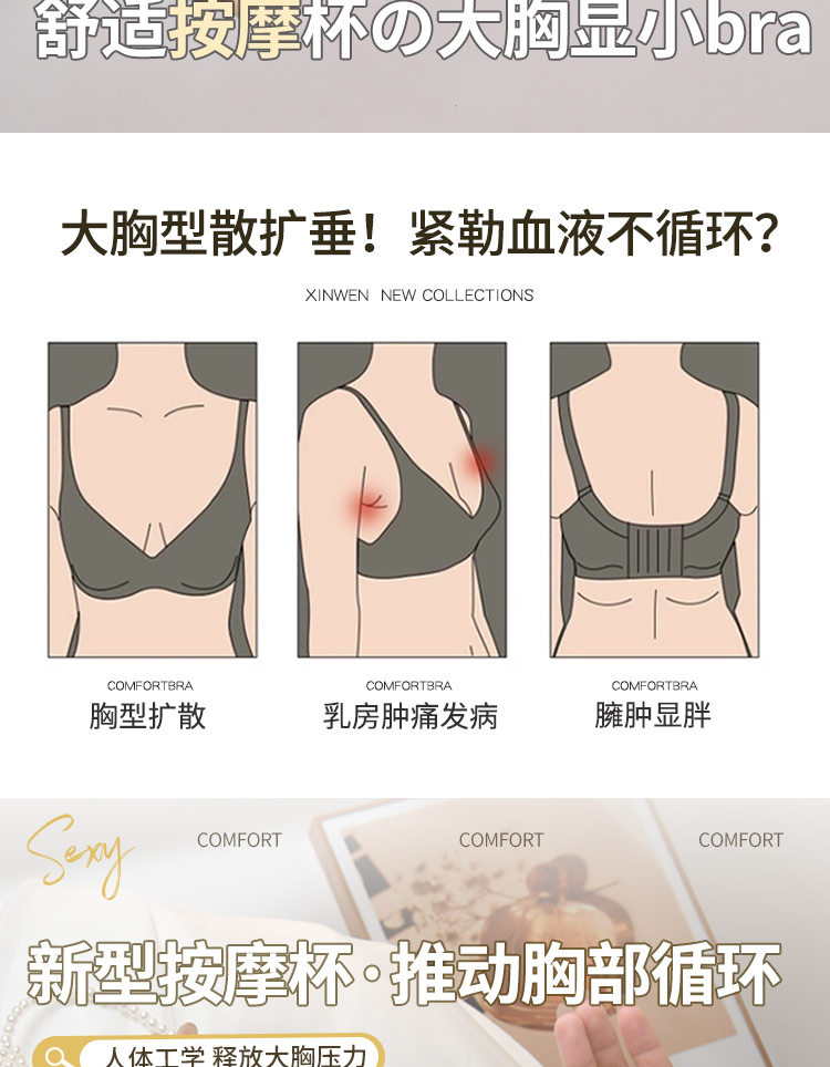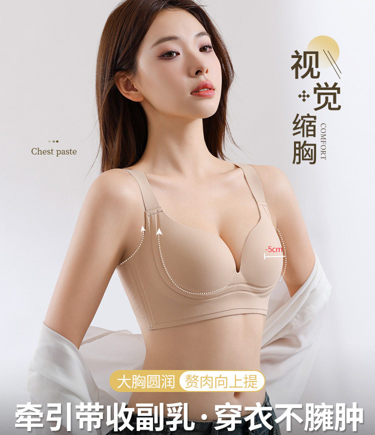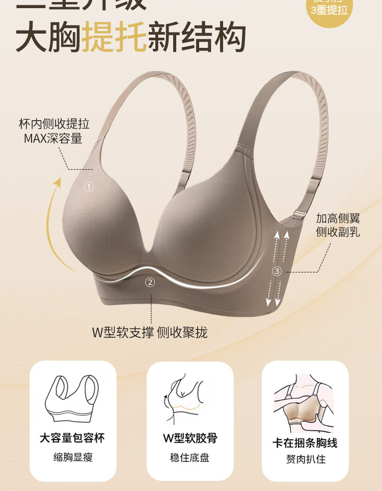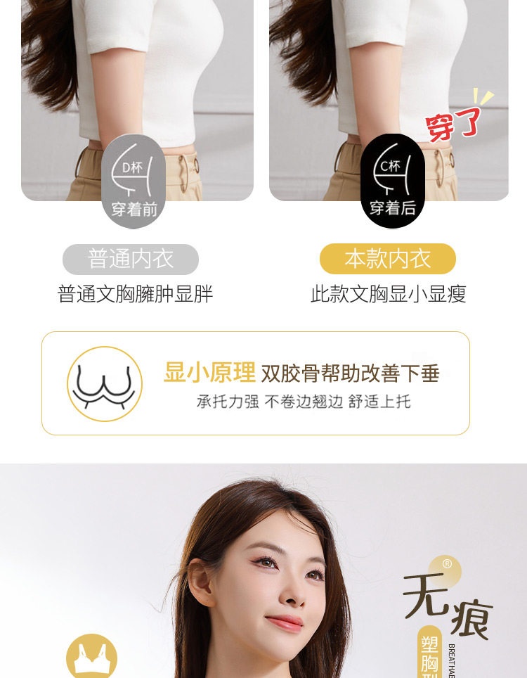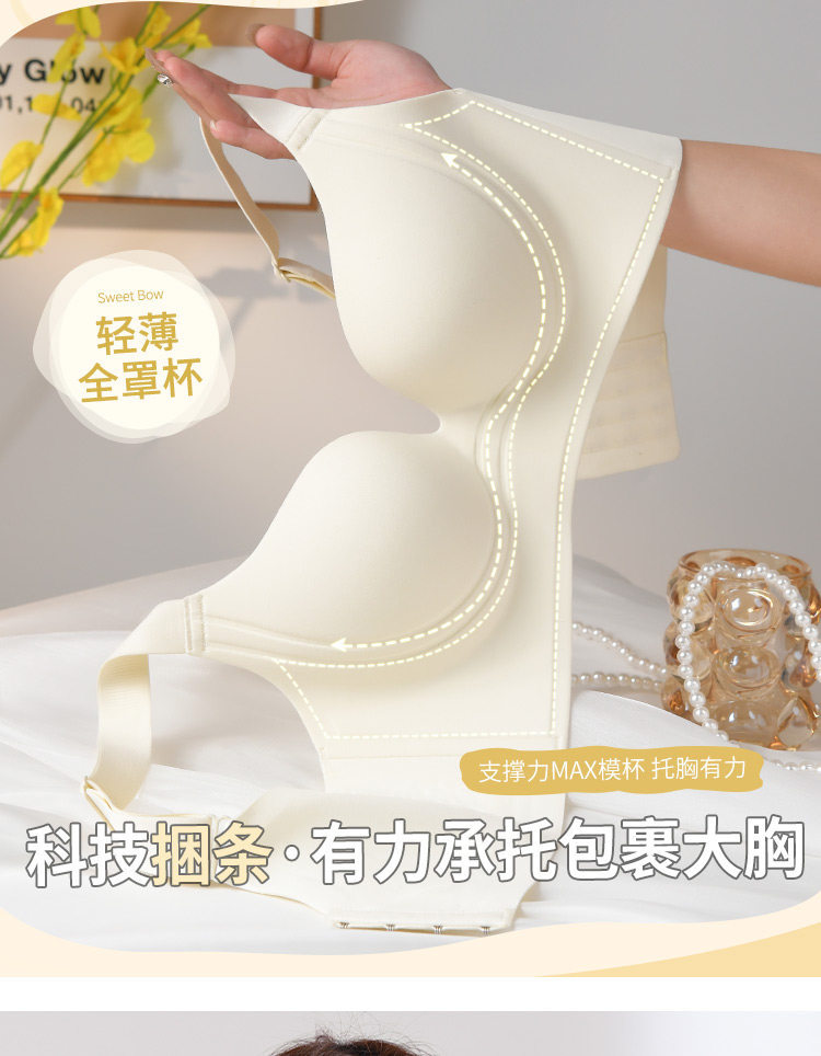薄款無痕內衣女大胸顯小胸收副乳聚攏防下垂上托舒適無鋼圈文胸罩
