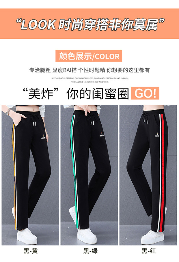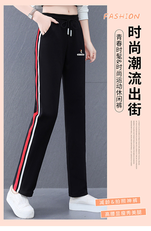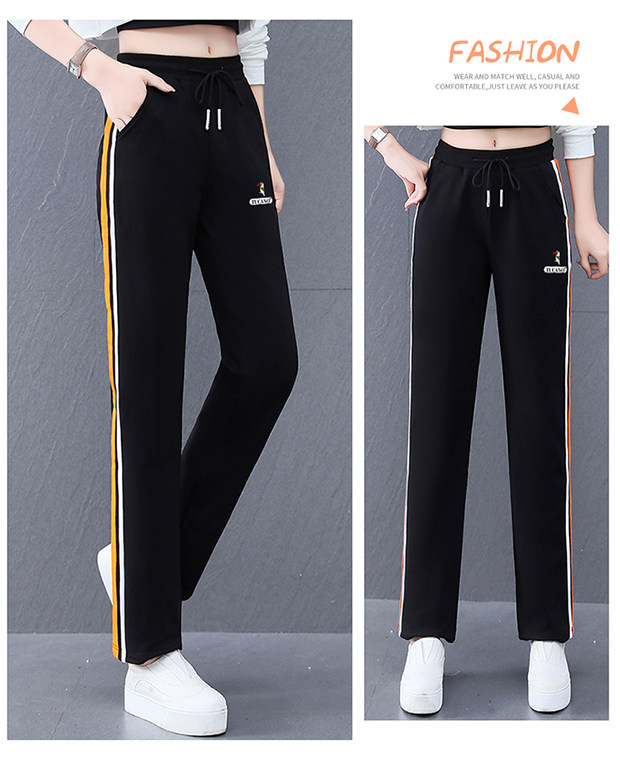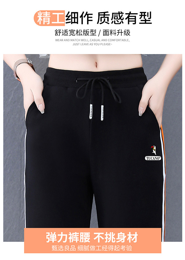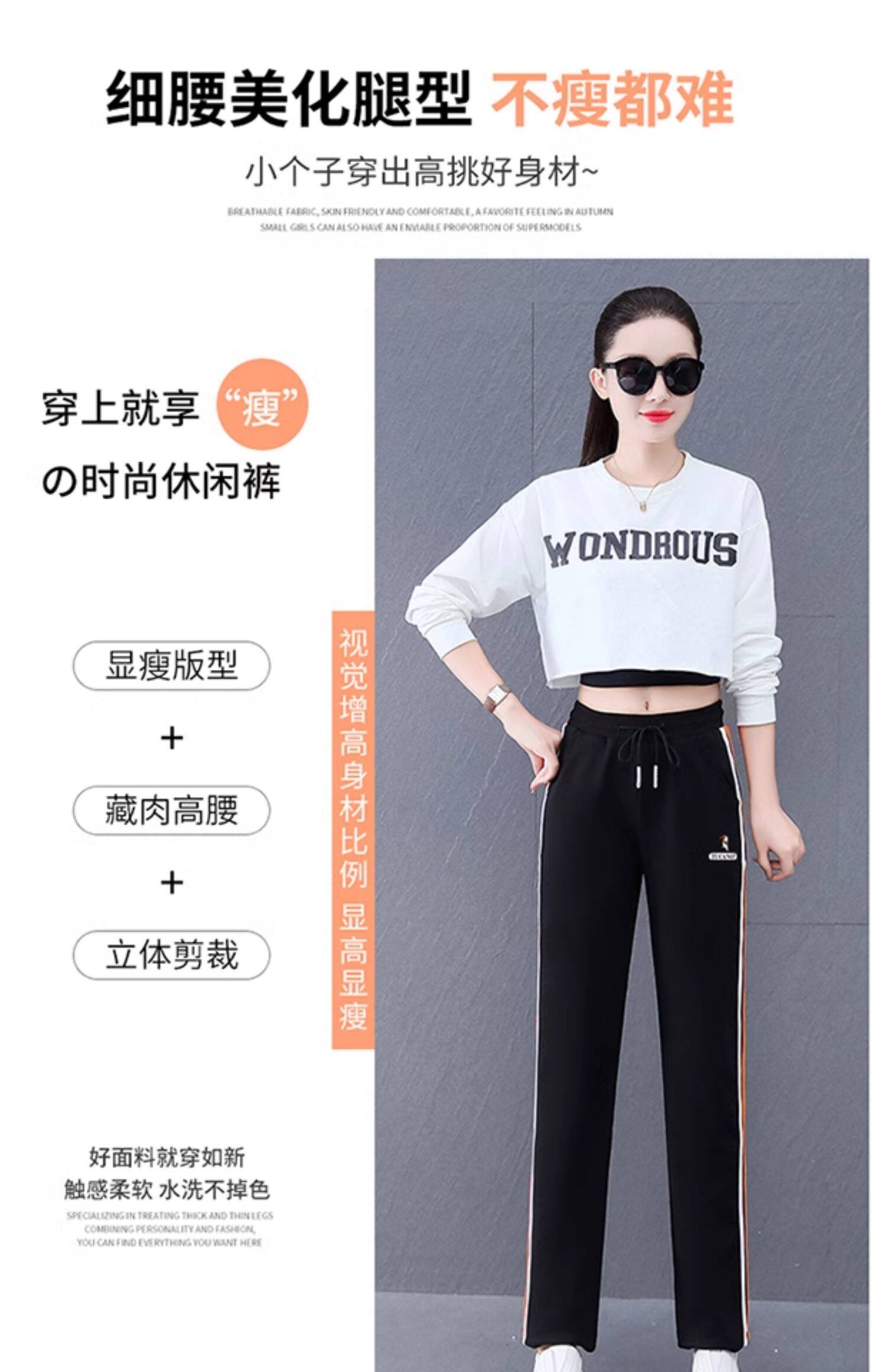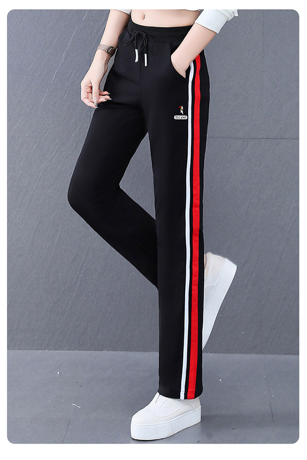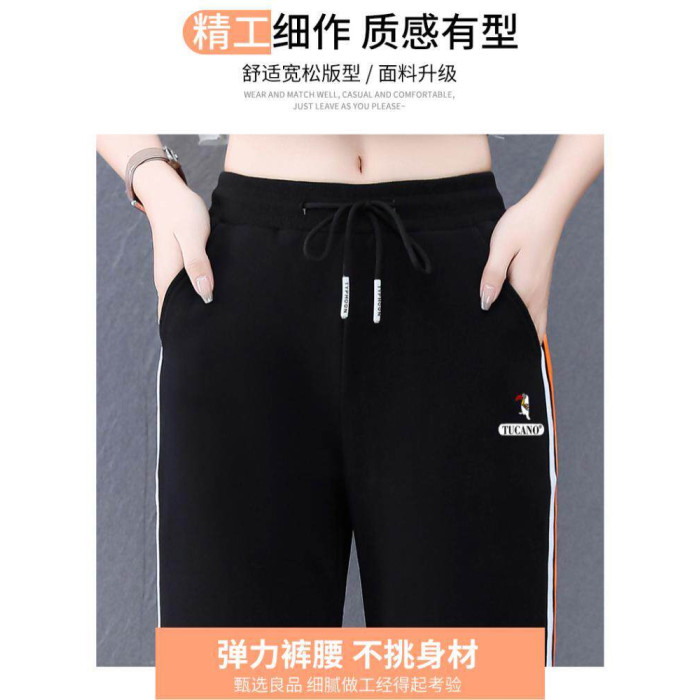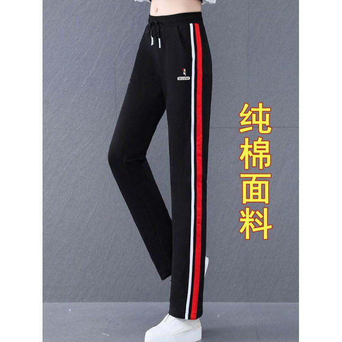 啄木鳥純棉休閒褲女春秋季2025新款直筒運動褲子寬鬆秋冬加絨衛褲