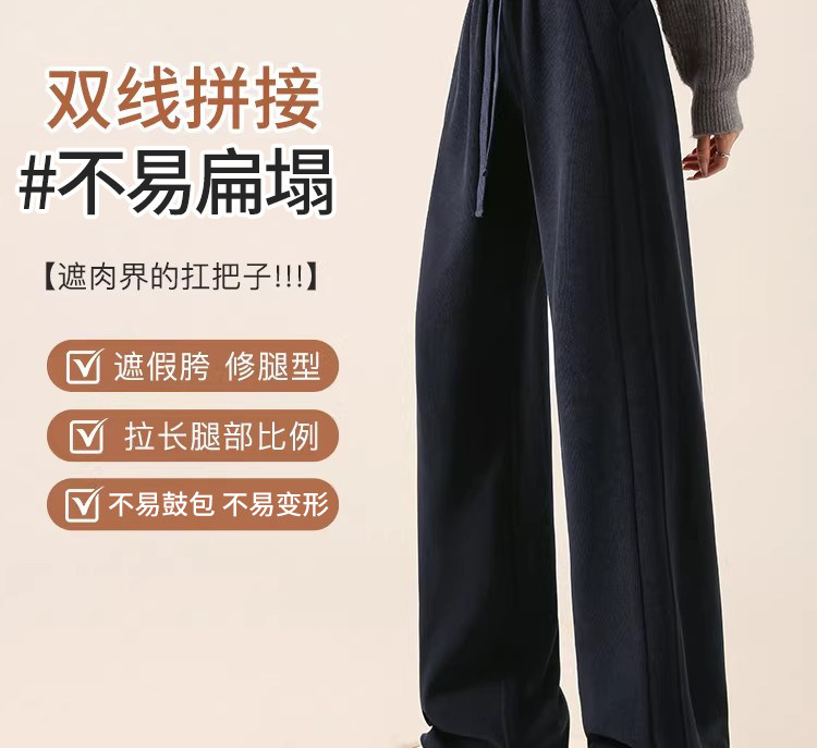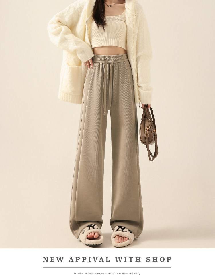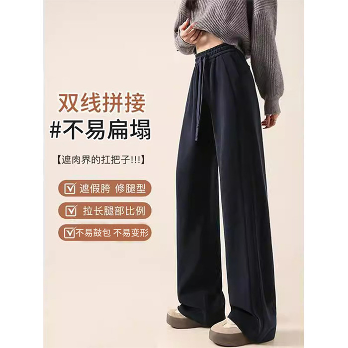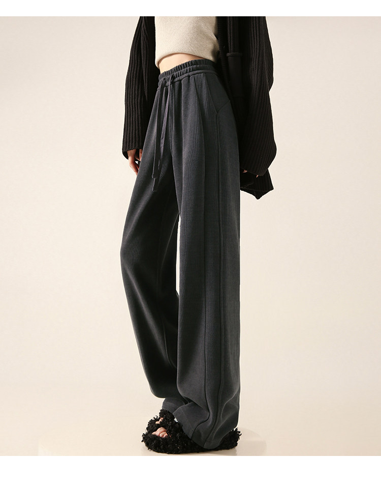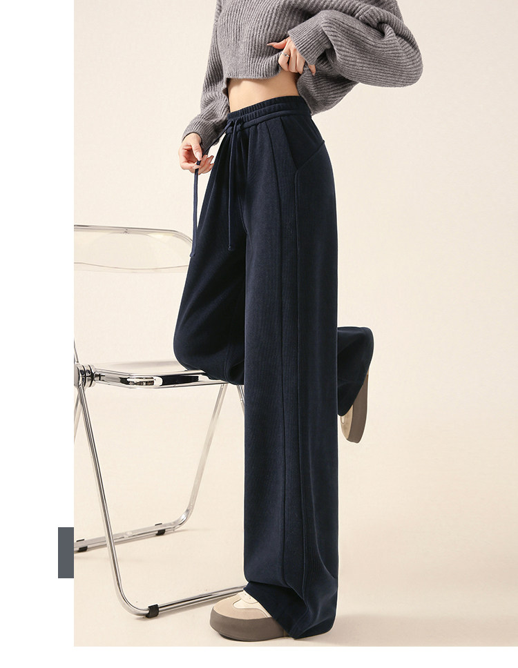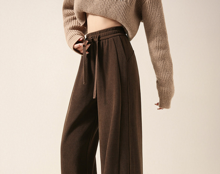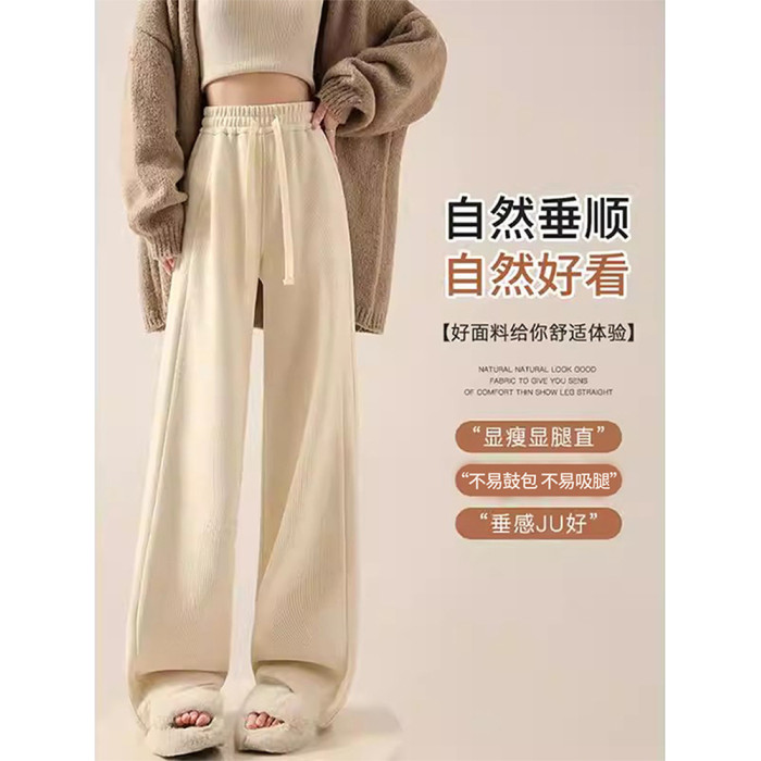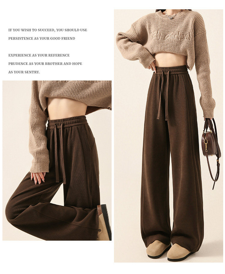 咖色雪尼爾濶腿褲女春秋冬季高腰直筒運動休閒美拉德窄版加絨褲子