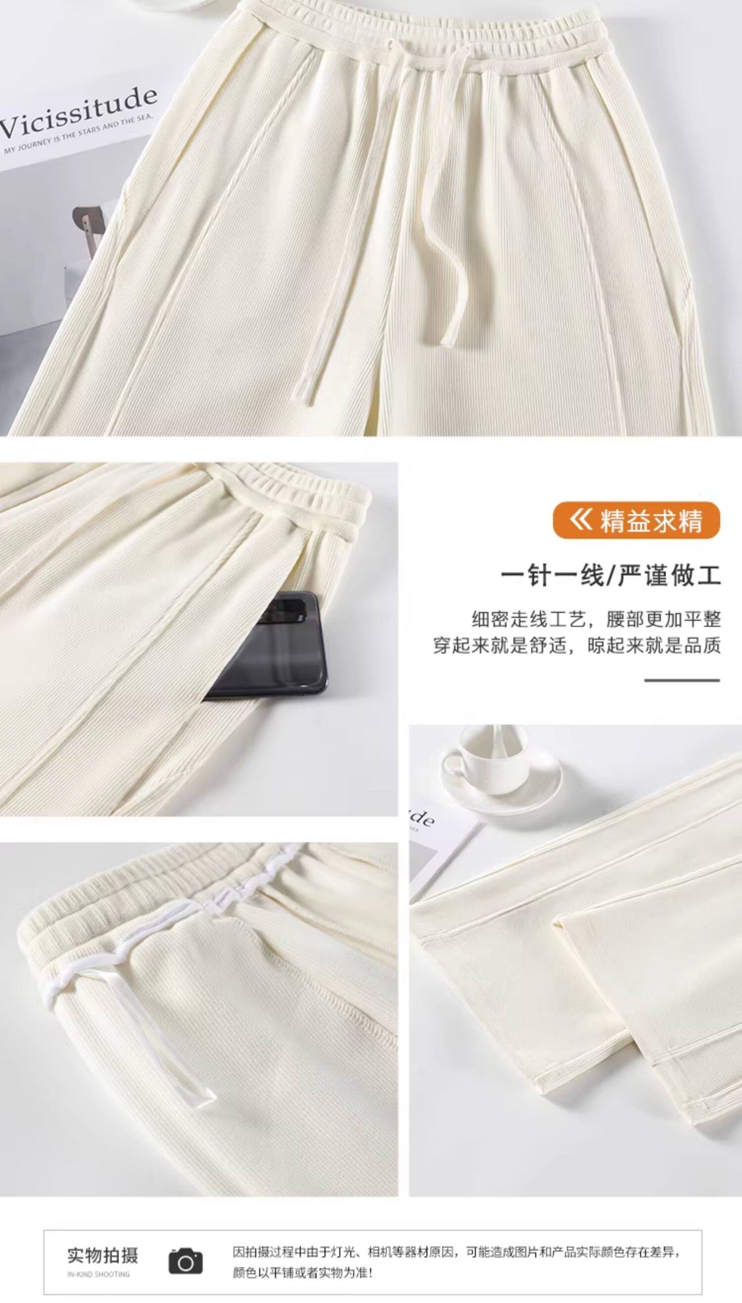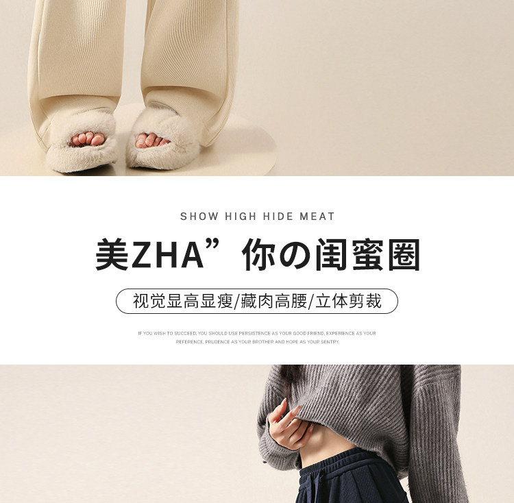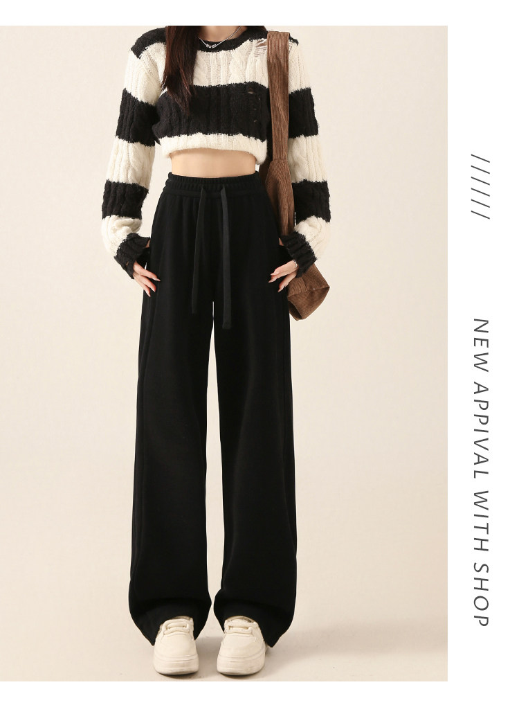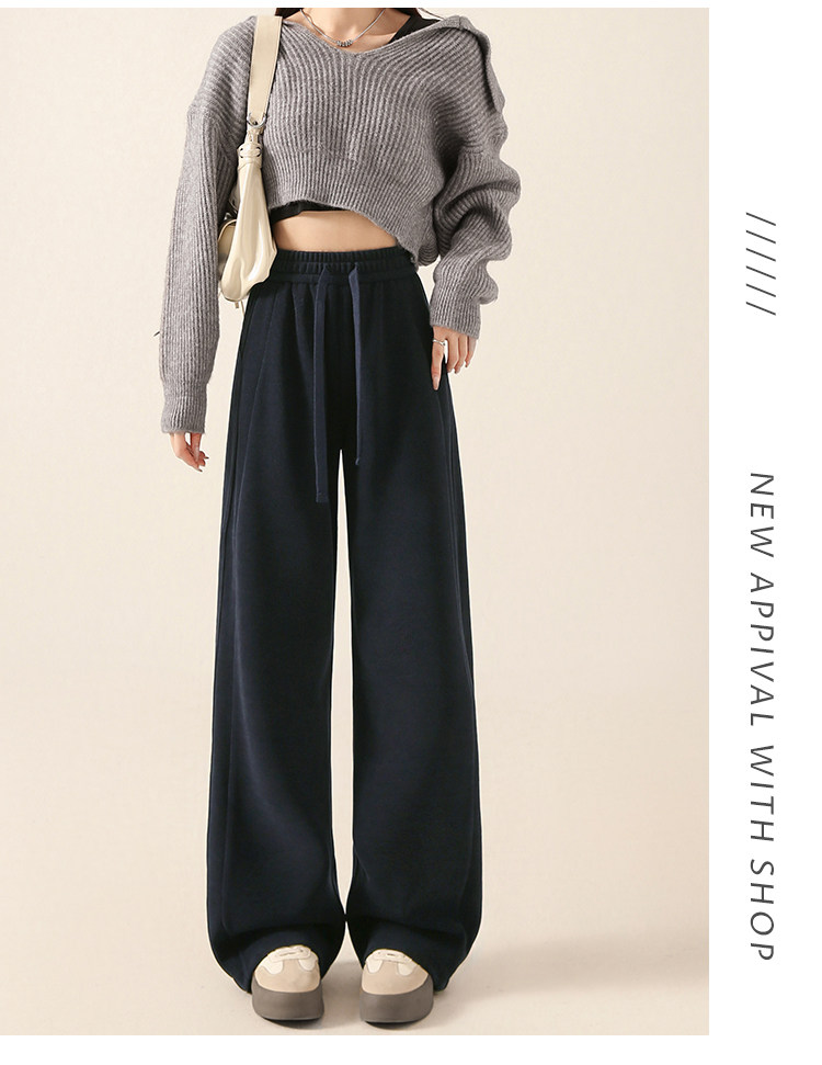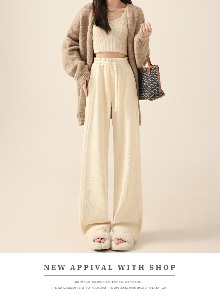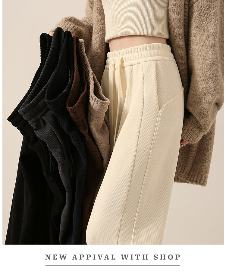 咖色雪尼爾濶腿褲女春秋冬季高腰直筒運動休閒美拉德窄版加絨褲子