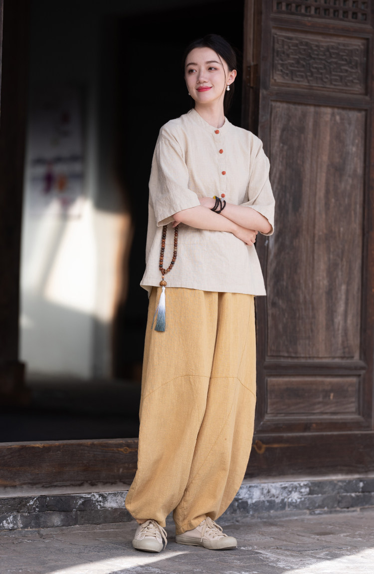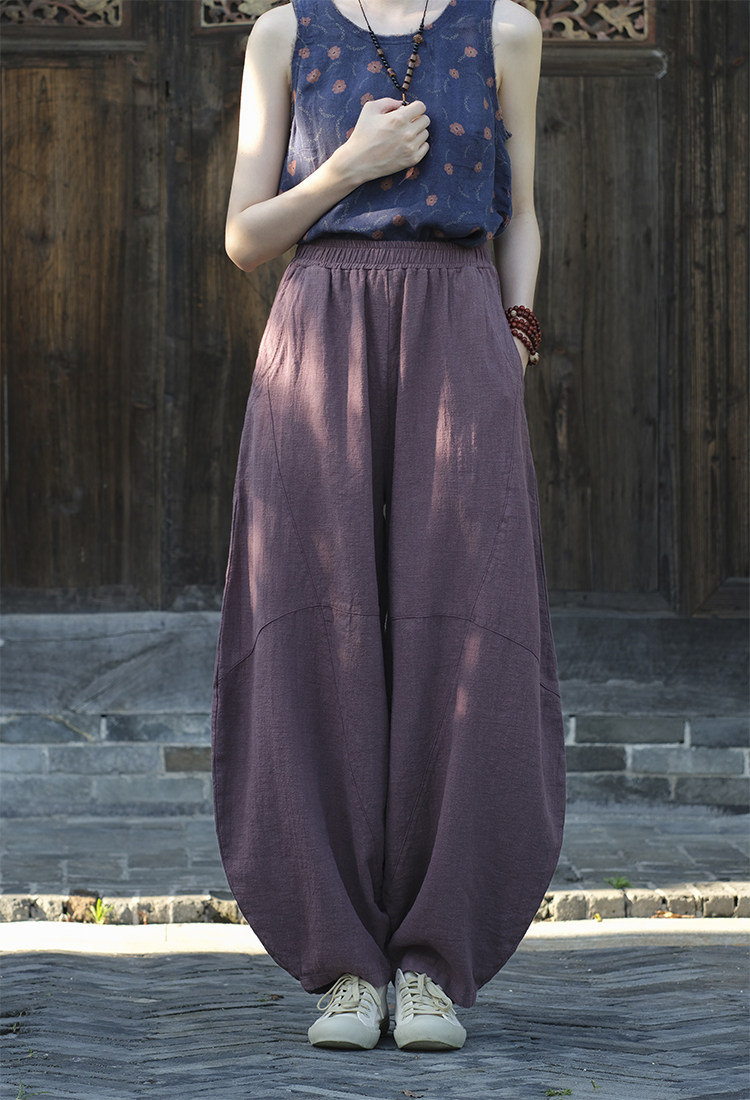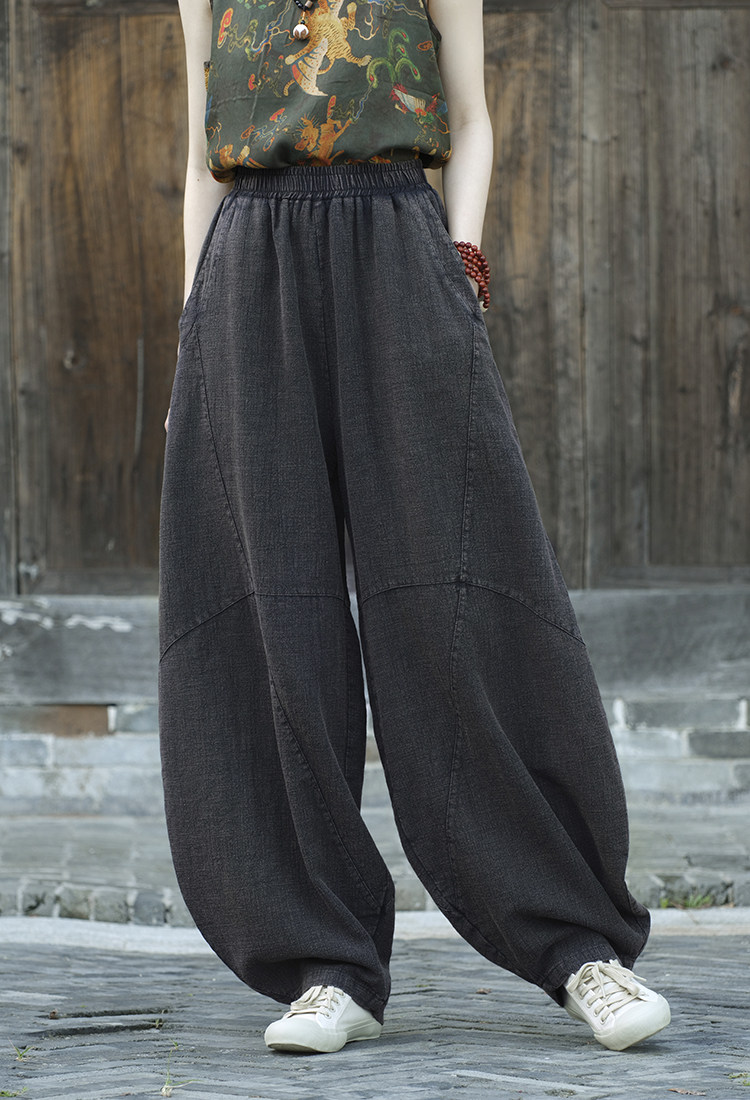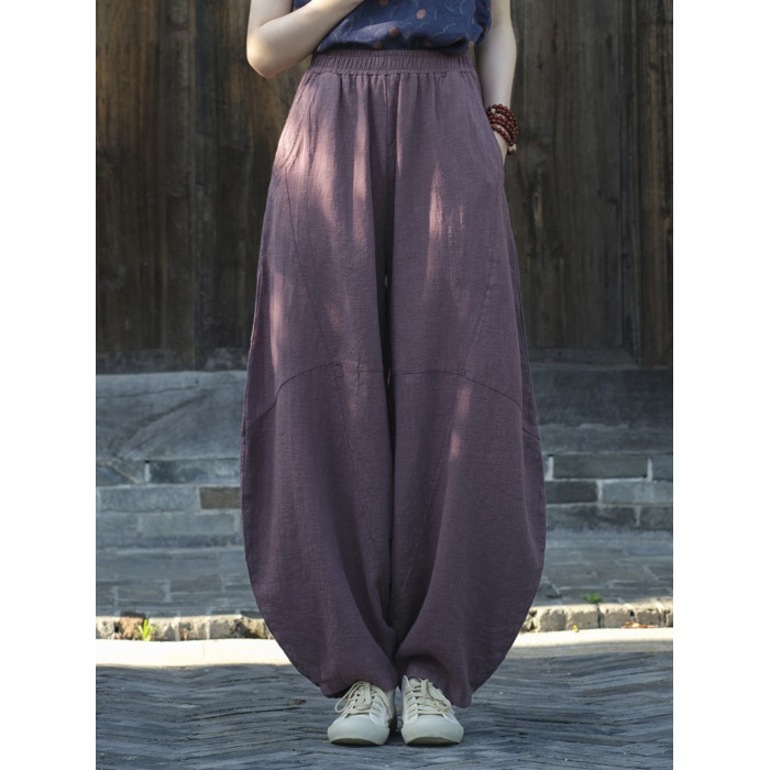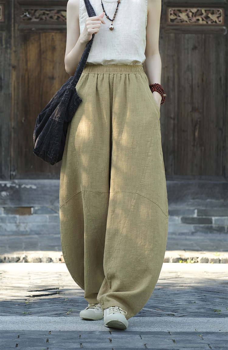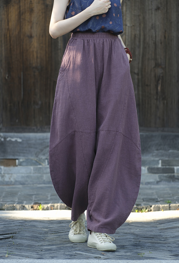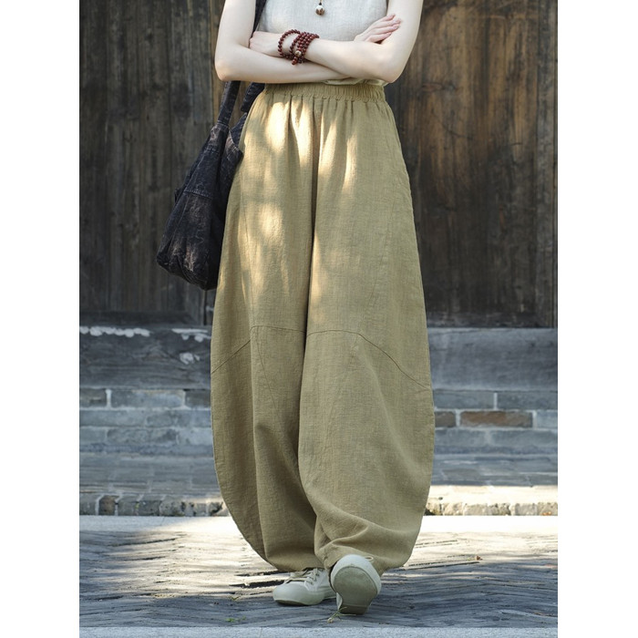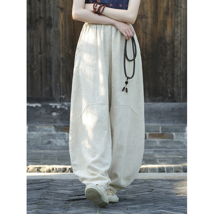 棉麻褲子春秋新款休閒寬鬆大碼長褲女式濶腿燈籠褲打坐禪修太極褲