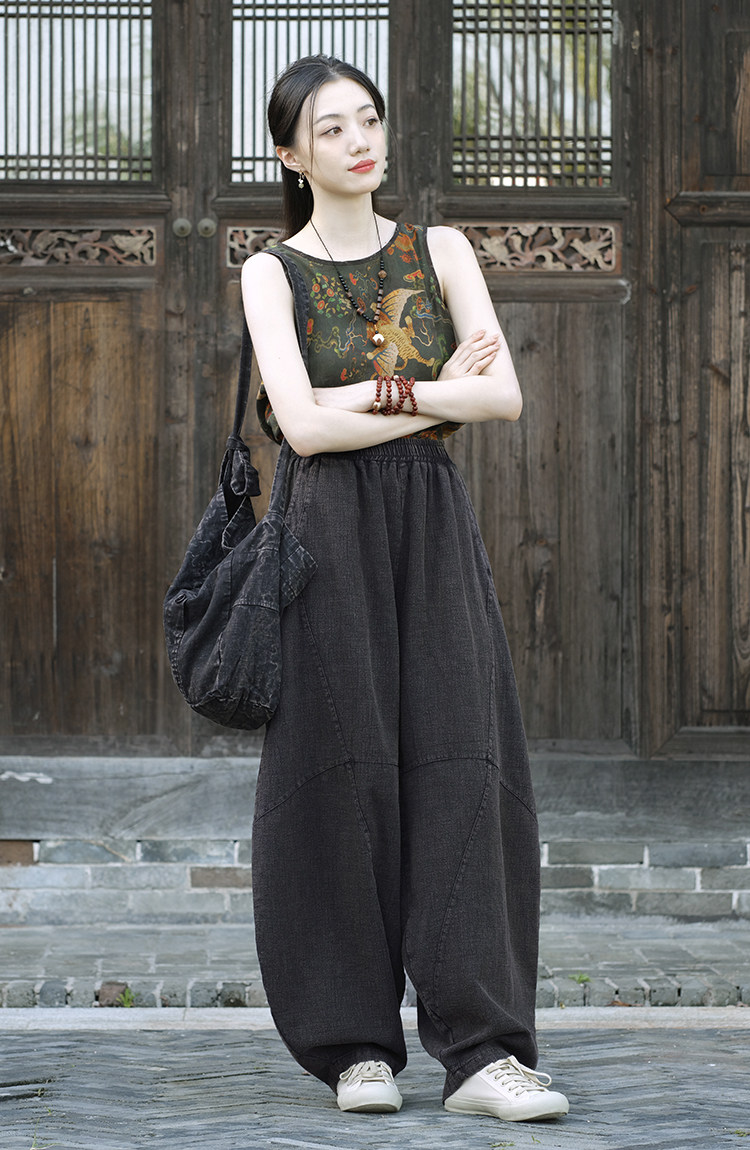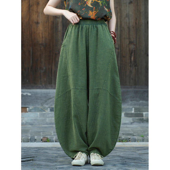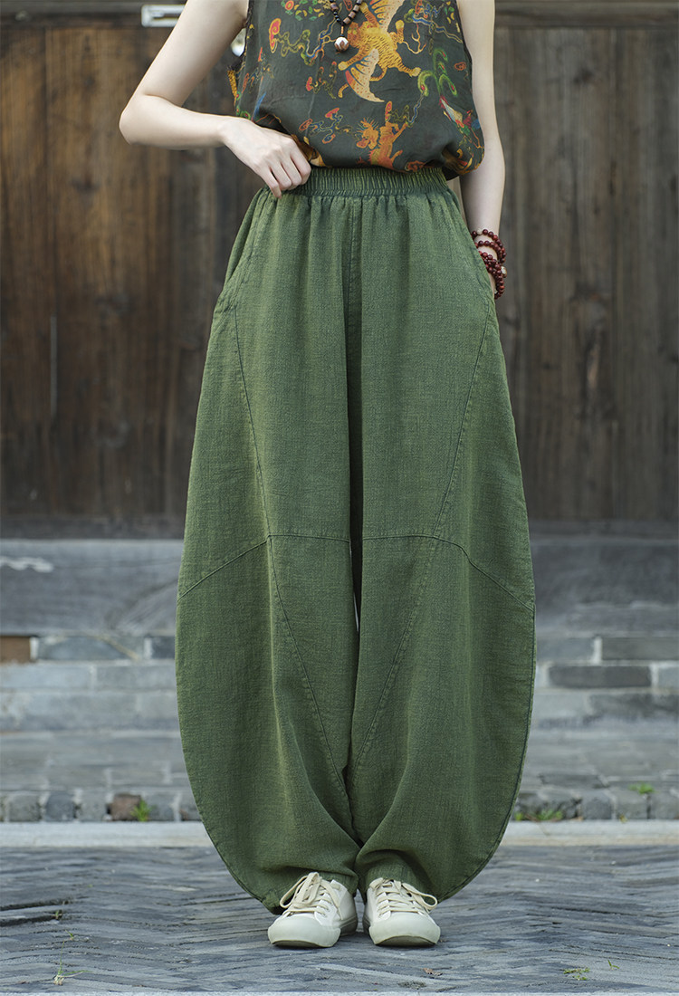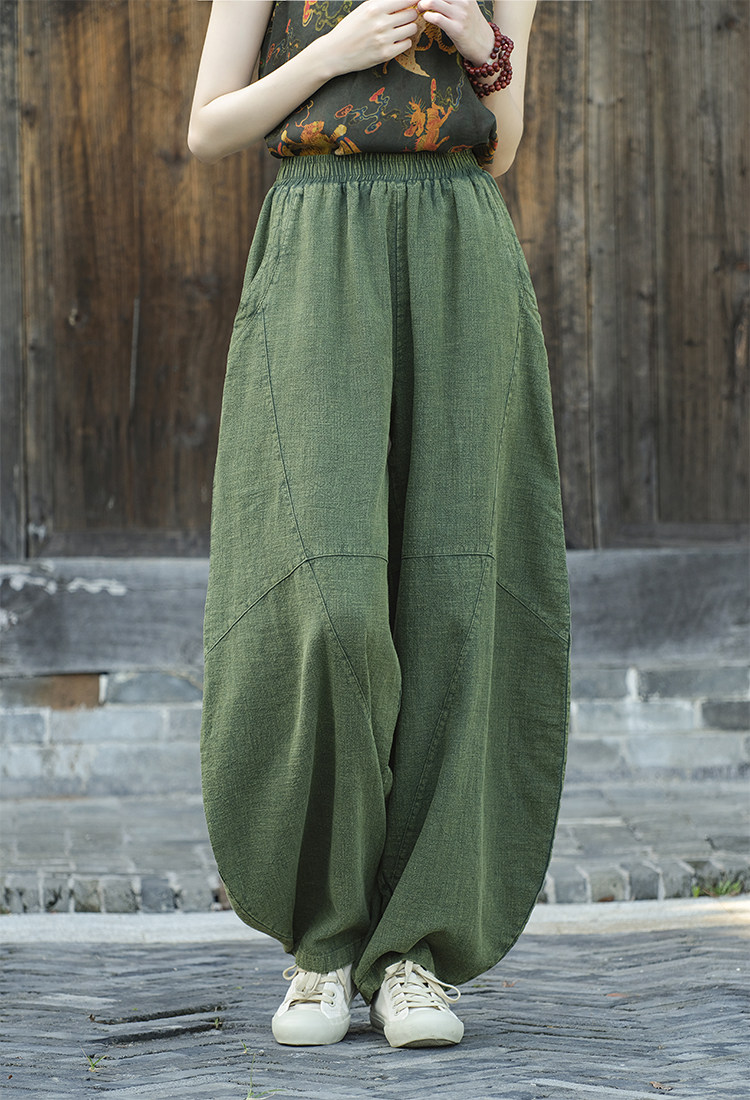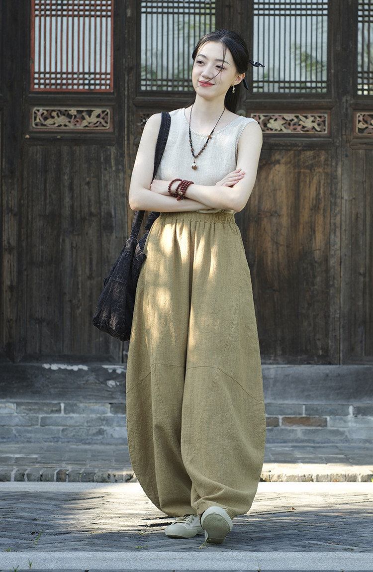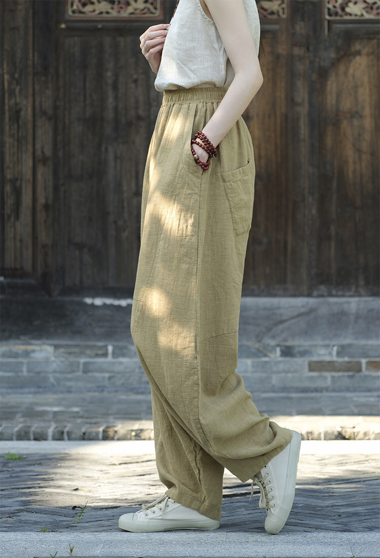 棉麻褲子春秋新款休閒寬鬆大碼長褲女式濶腿燈籠褲打坐禪修太極褲