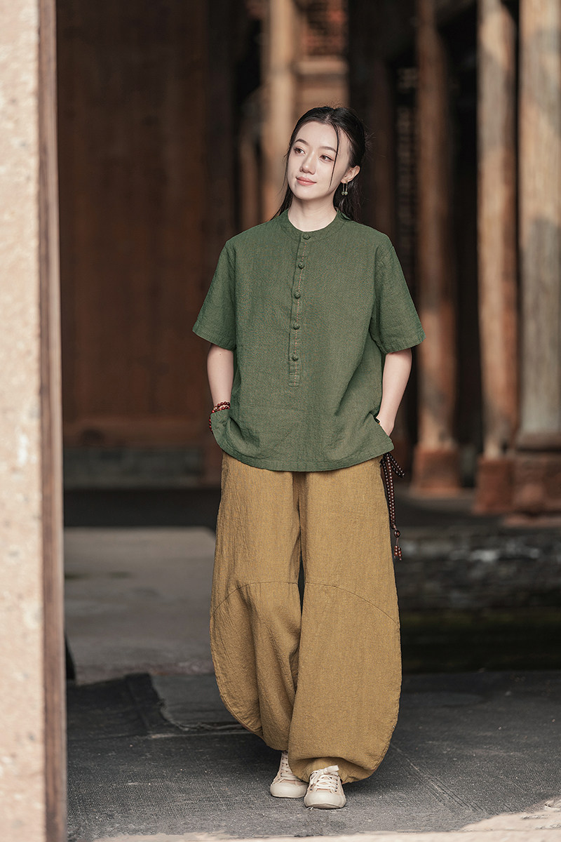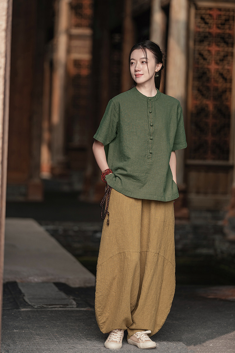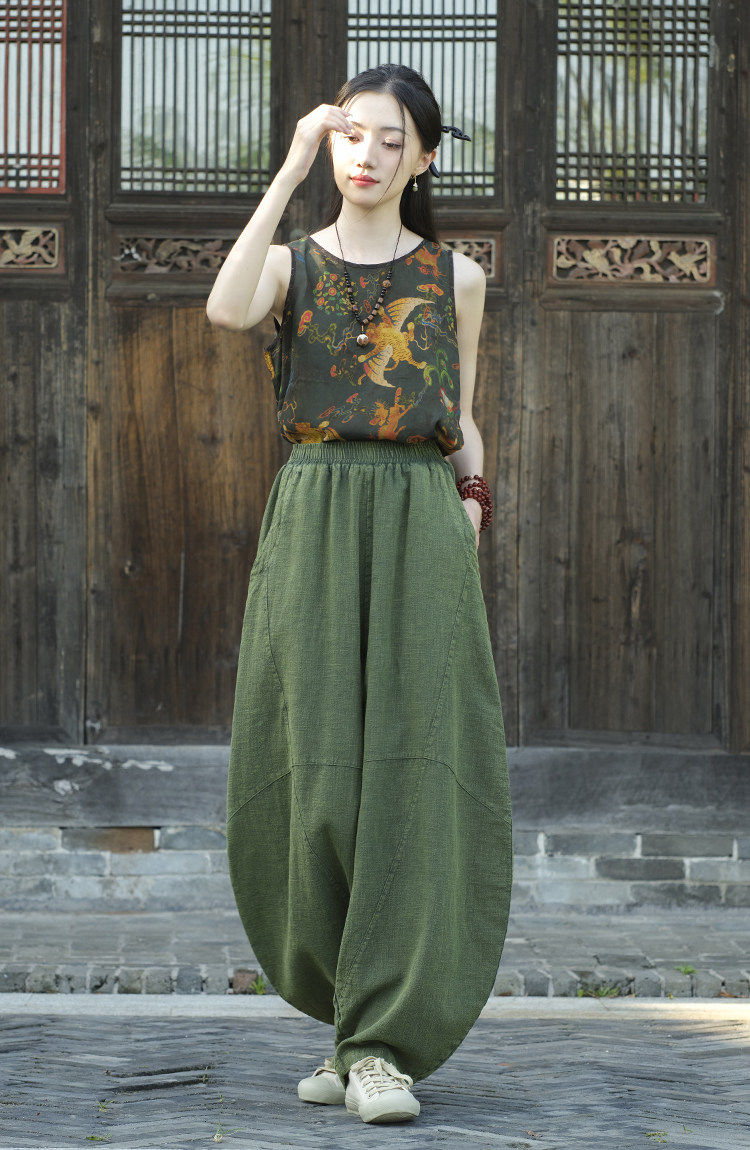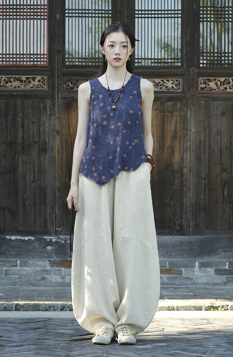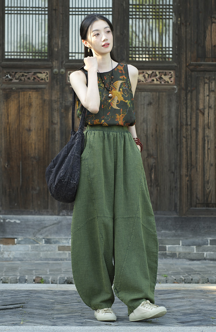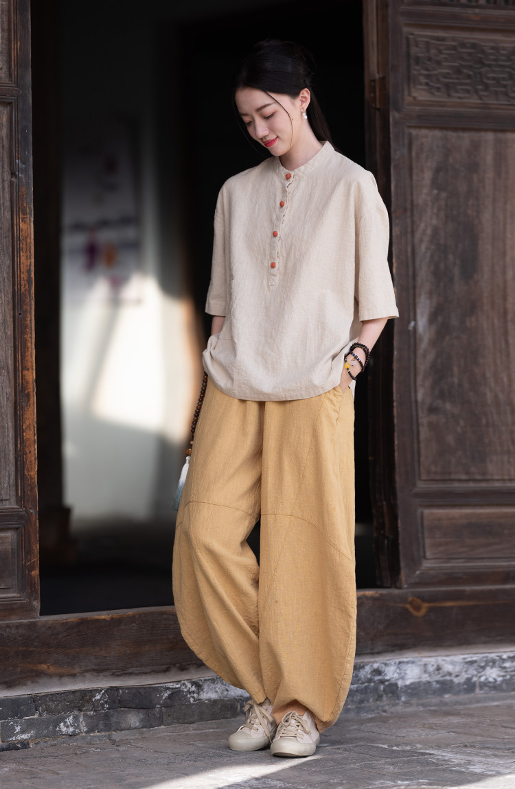 棉麻褲子春秋新款休閒寬鬆大碼長褲女式濶腿燈籠褲打坐禪修太極褲