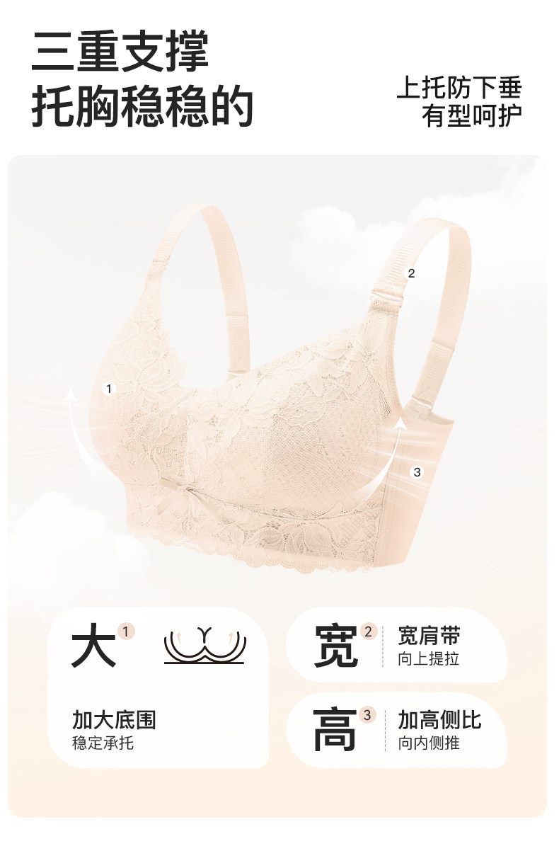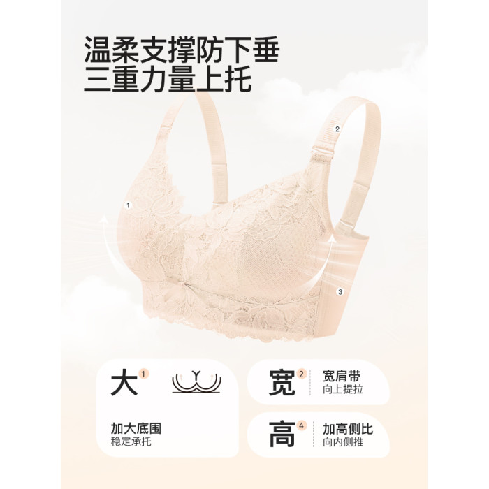 都市麗人內衣女大胸顯小收副乳防下垂薄款蕾絲舒適無鋼圈文胸罩