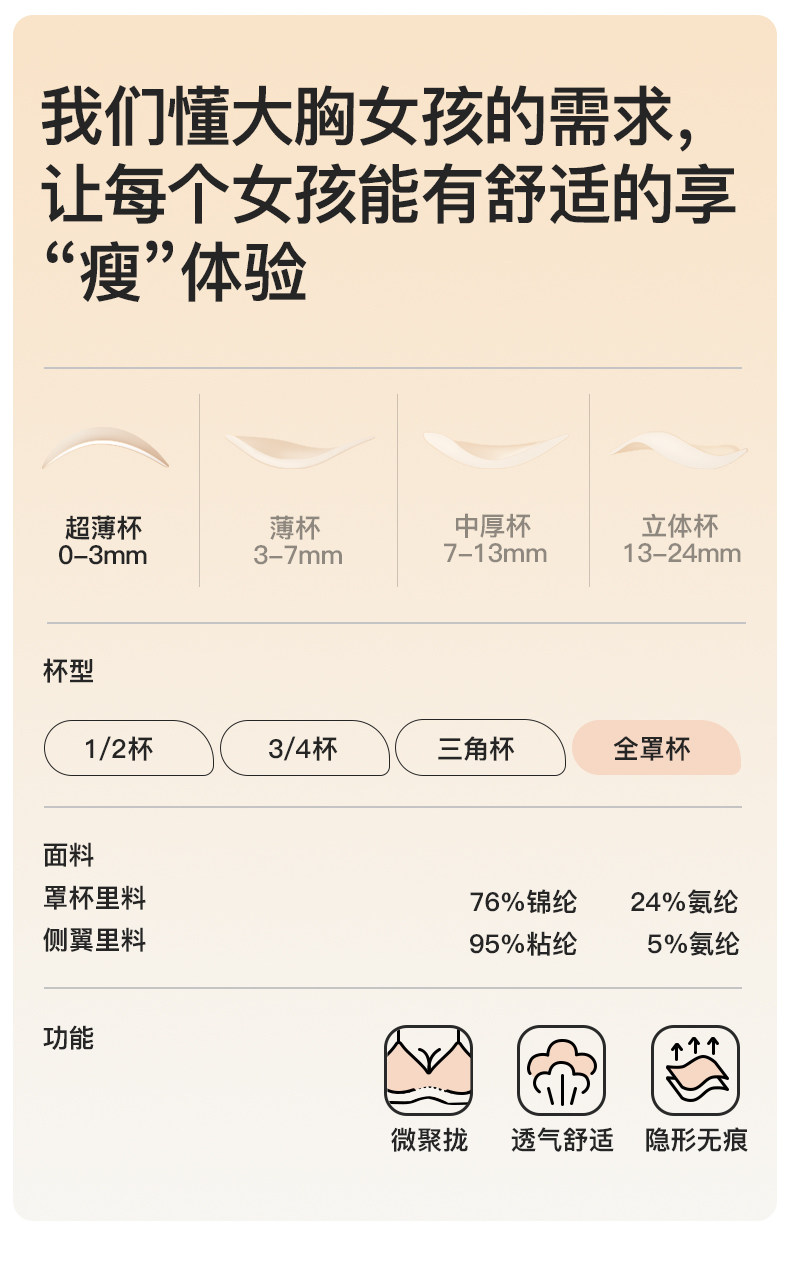 | 罩杯款式 | 全罩杯 |