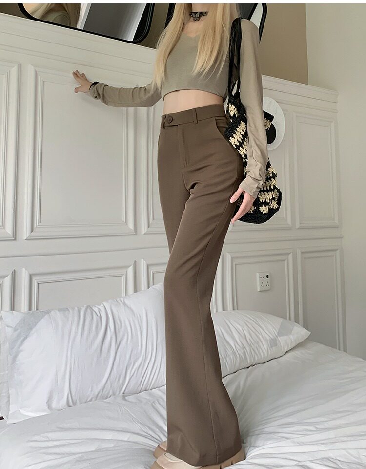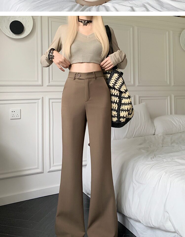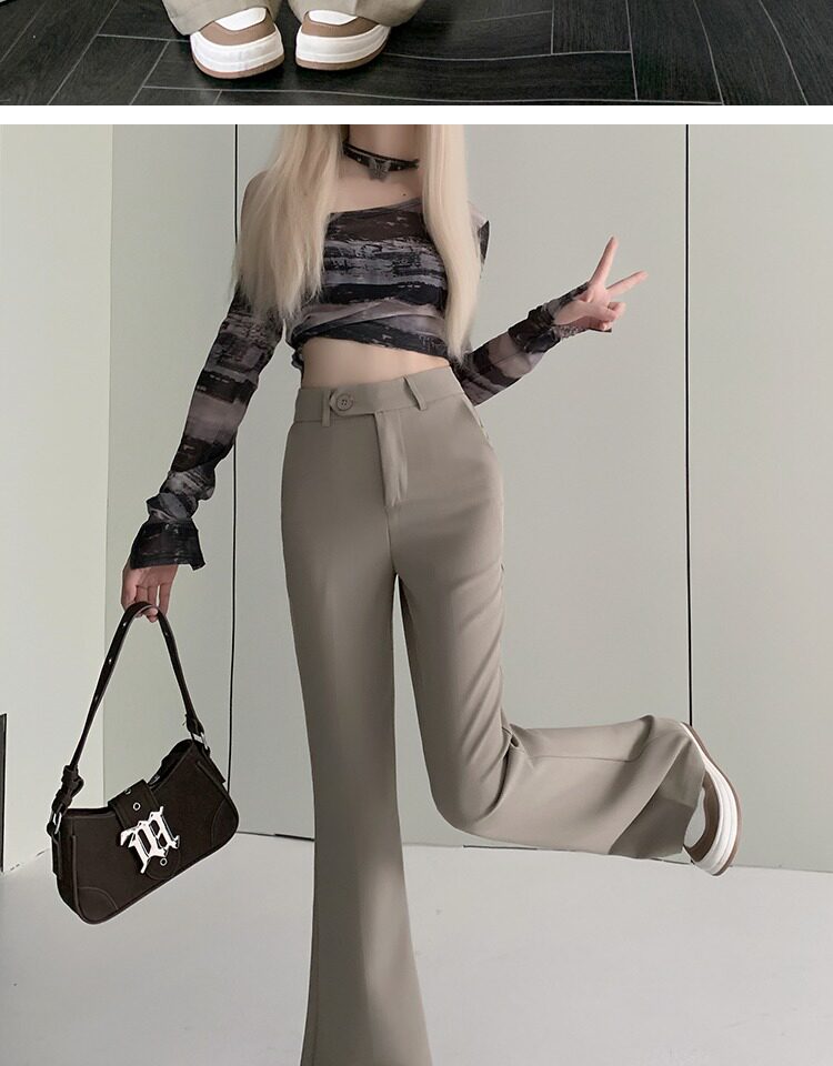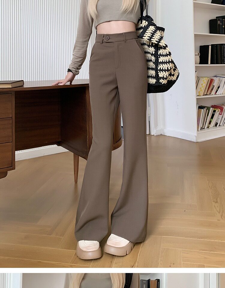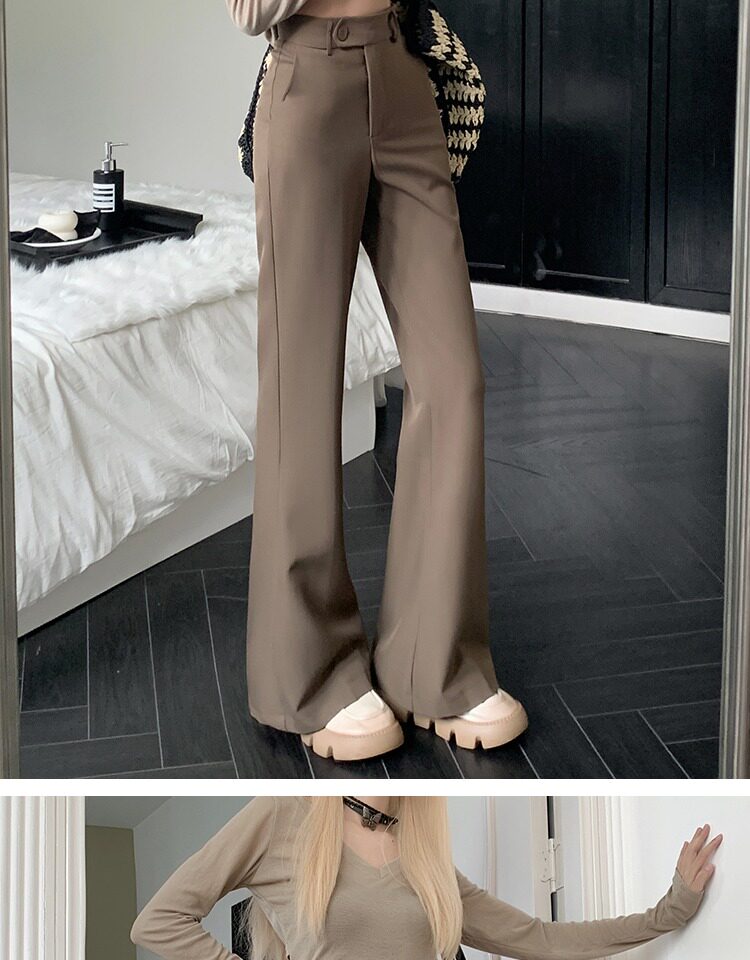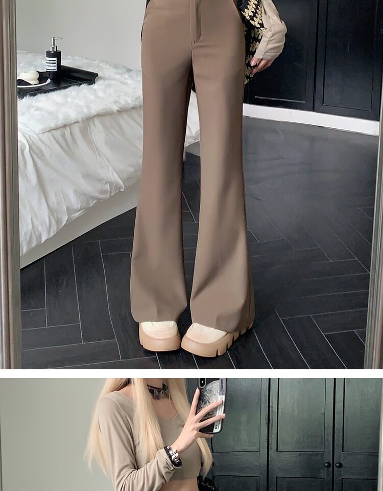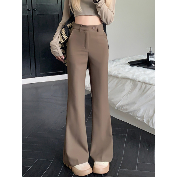 卡其色垂感西裝褲春季女褲子2025新款高腰直筒微喇叭褲小個子長褲
