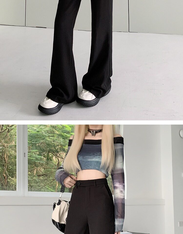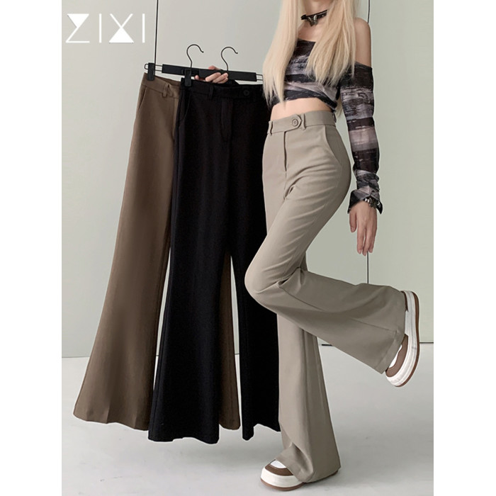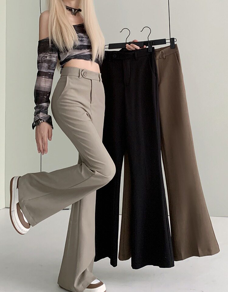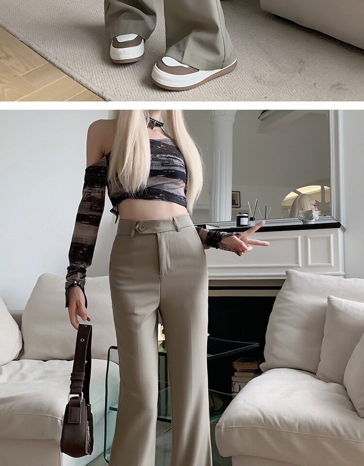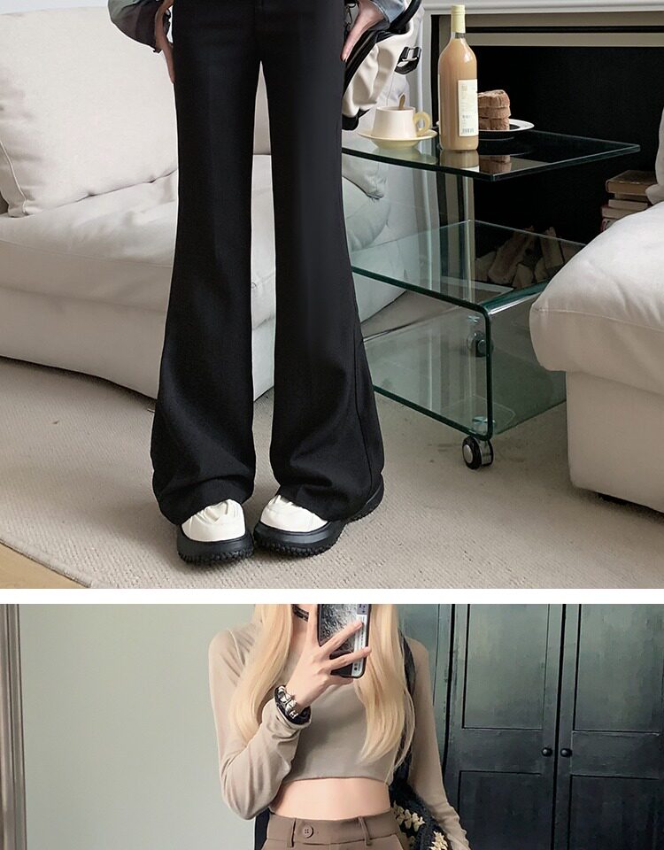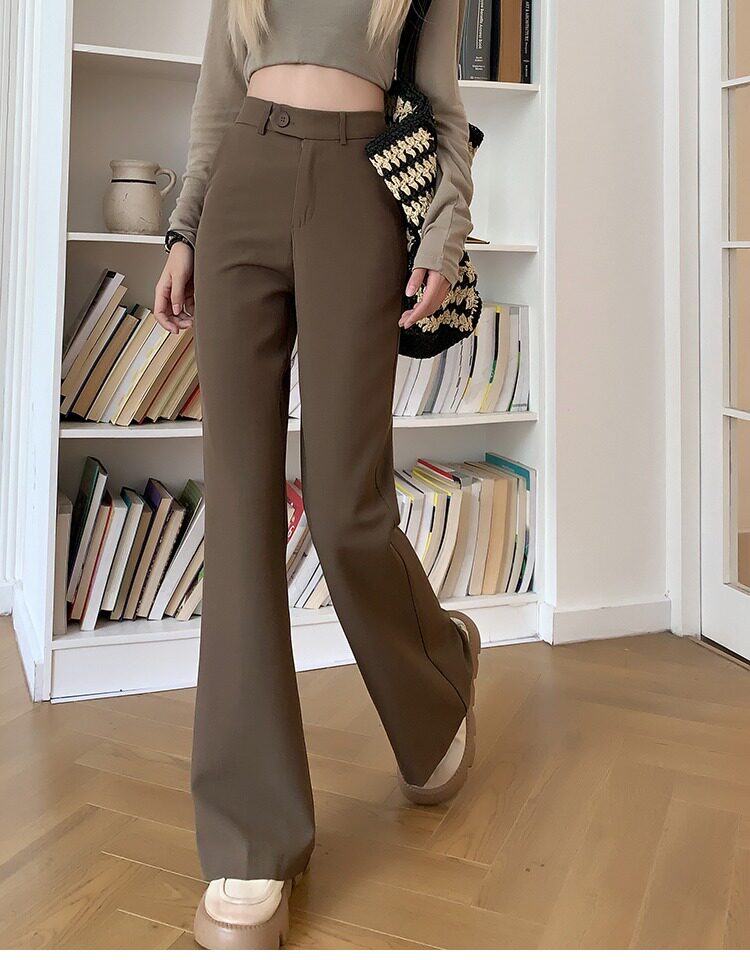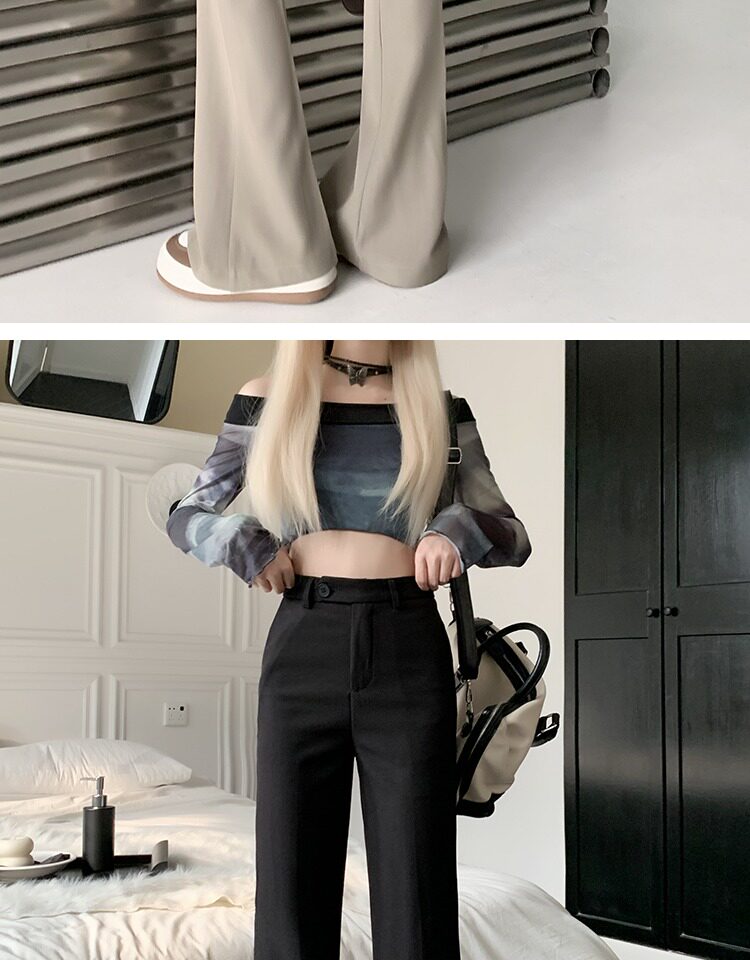 卡其色垂感西裝褲春季女褲子2025新款高腰直筒微喇叭褲小個子長褲