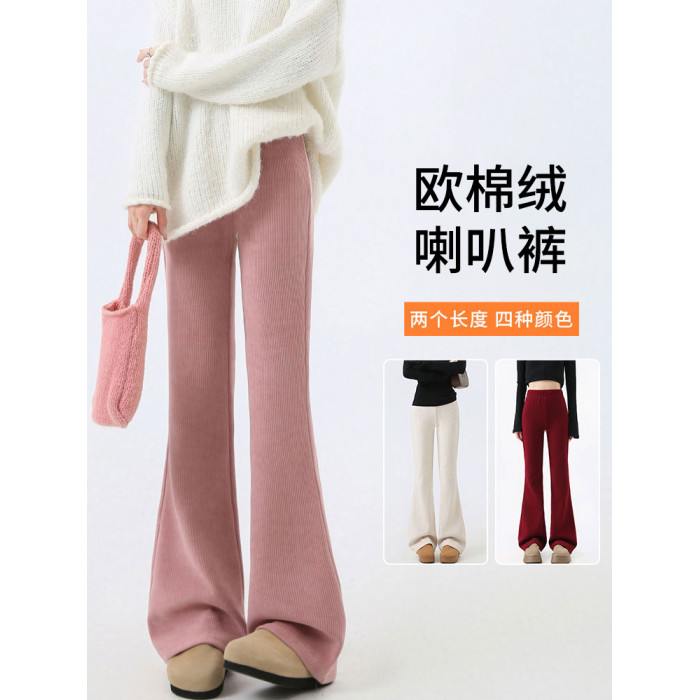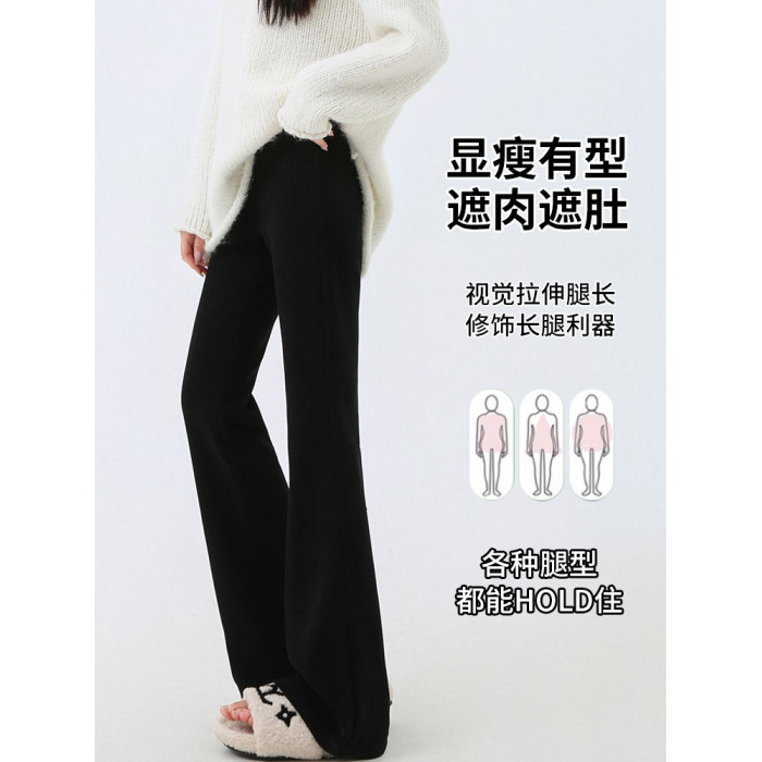 微喇褲女2026新款秋冬季加絨加厚小個子高腰垂感休閒濶腿喇叭褲子