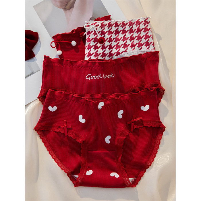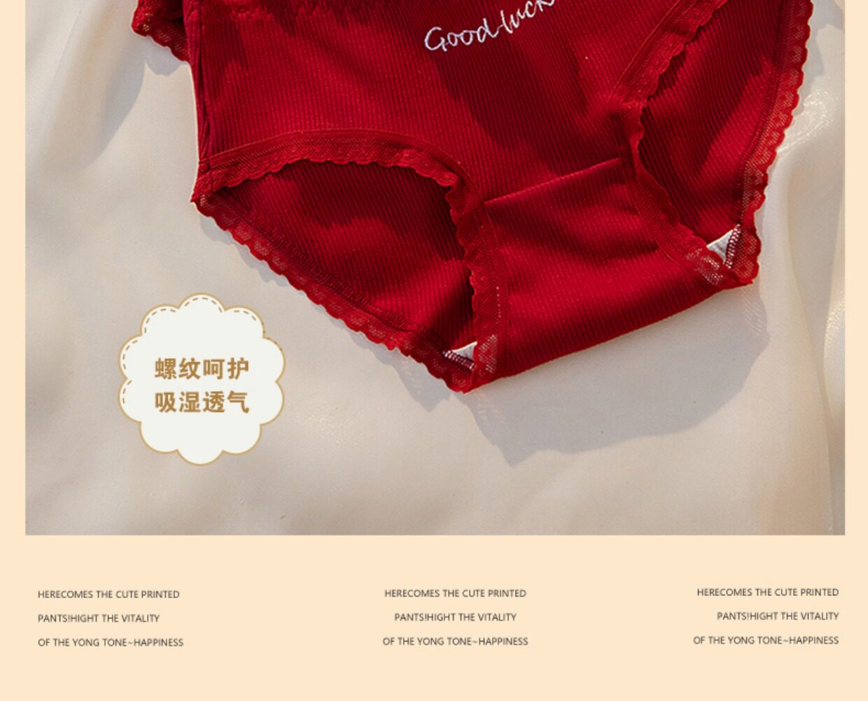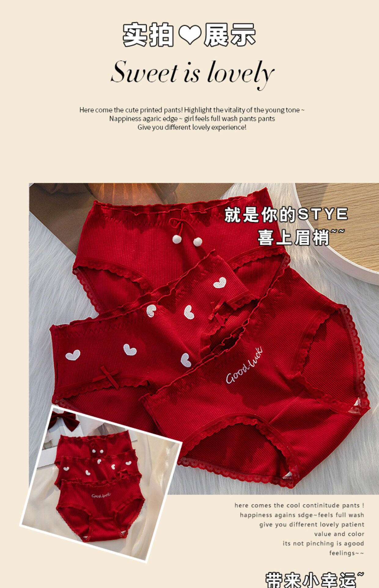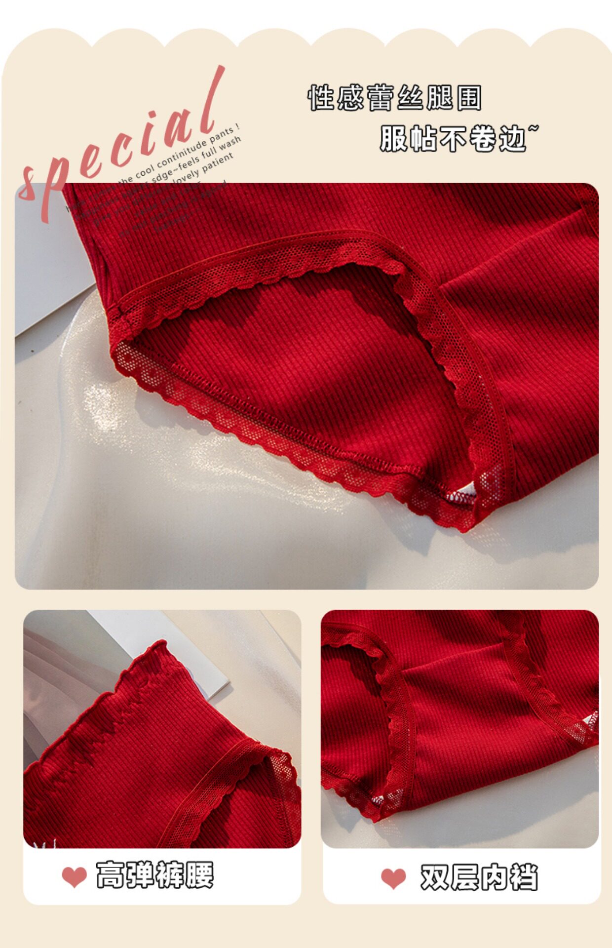 馬年紅色內褲女純棉抗菌全棉檔中腰愛心本命年結婚蕾絲邊三角短褲