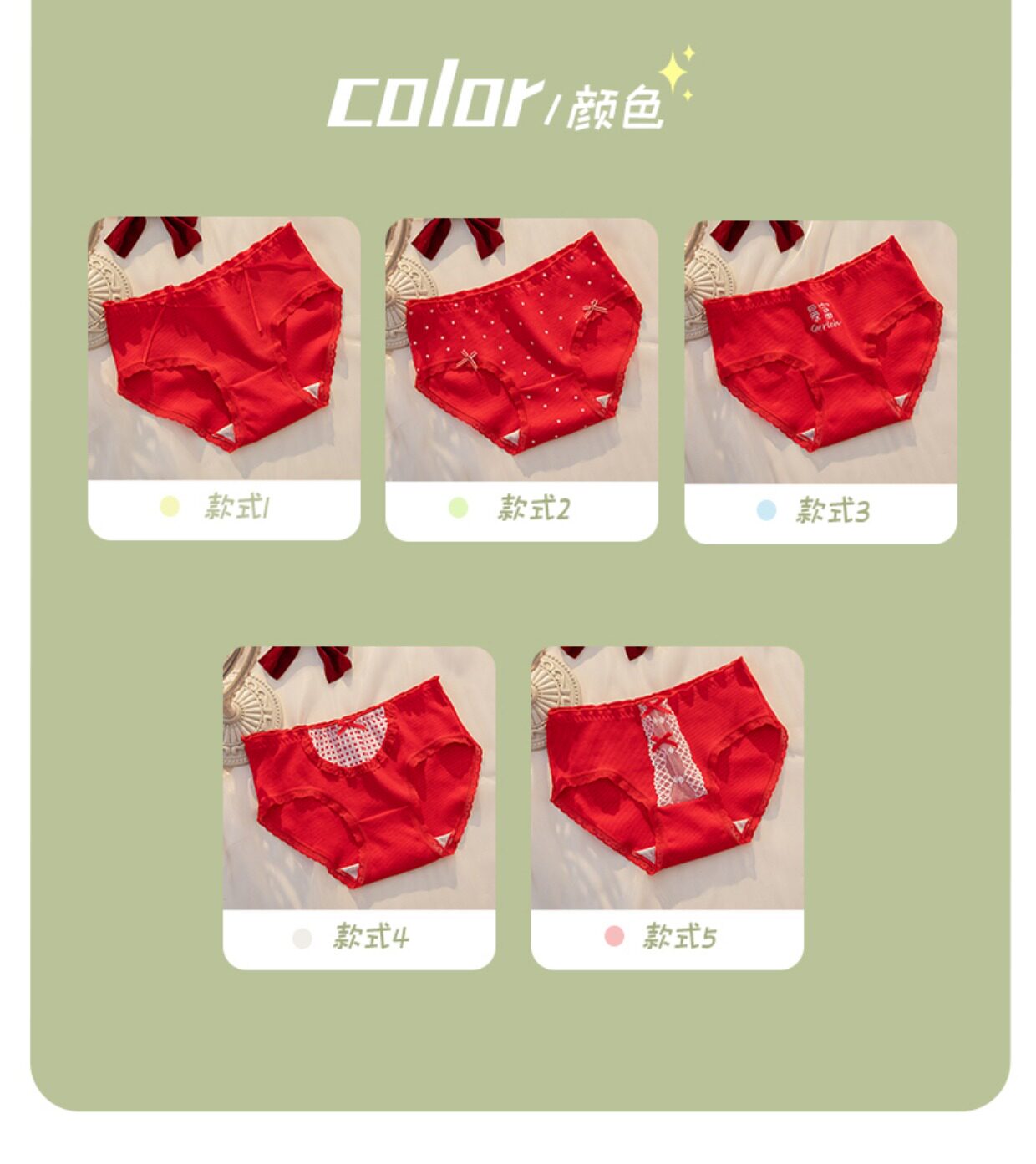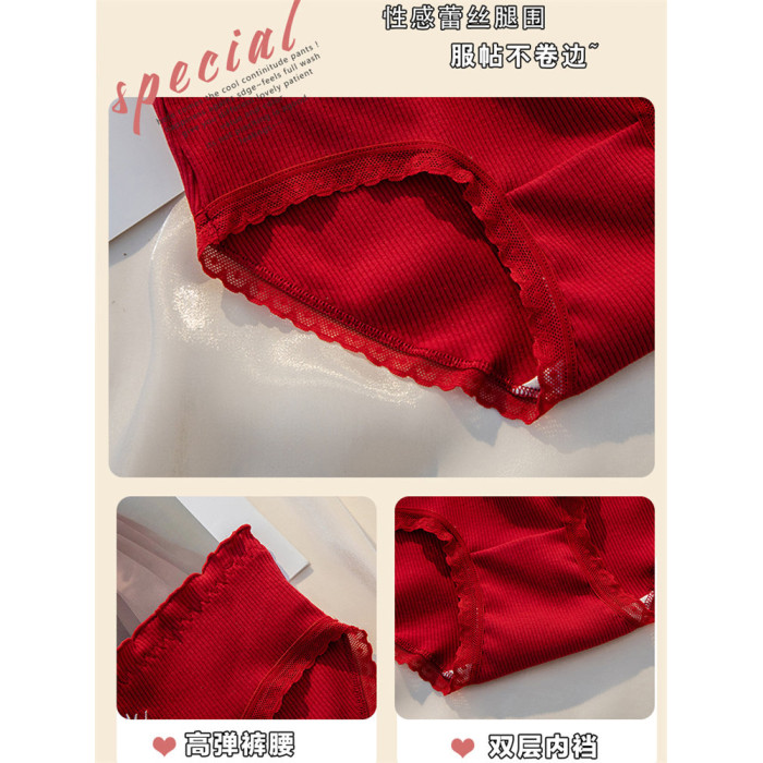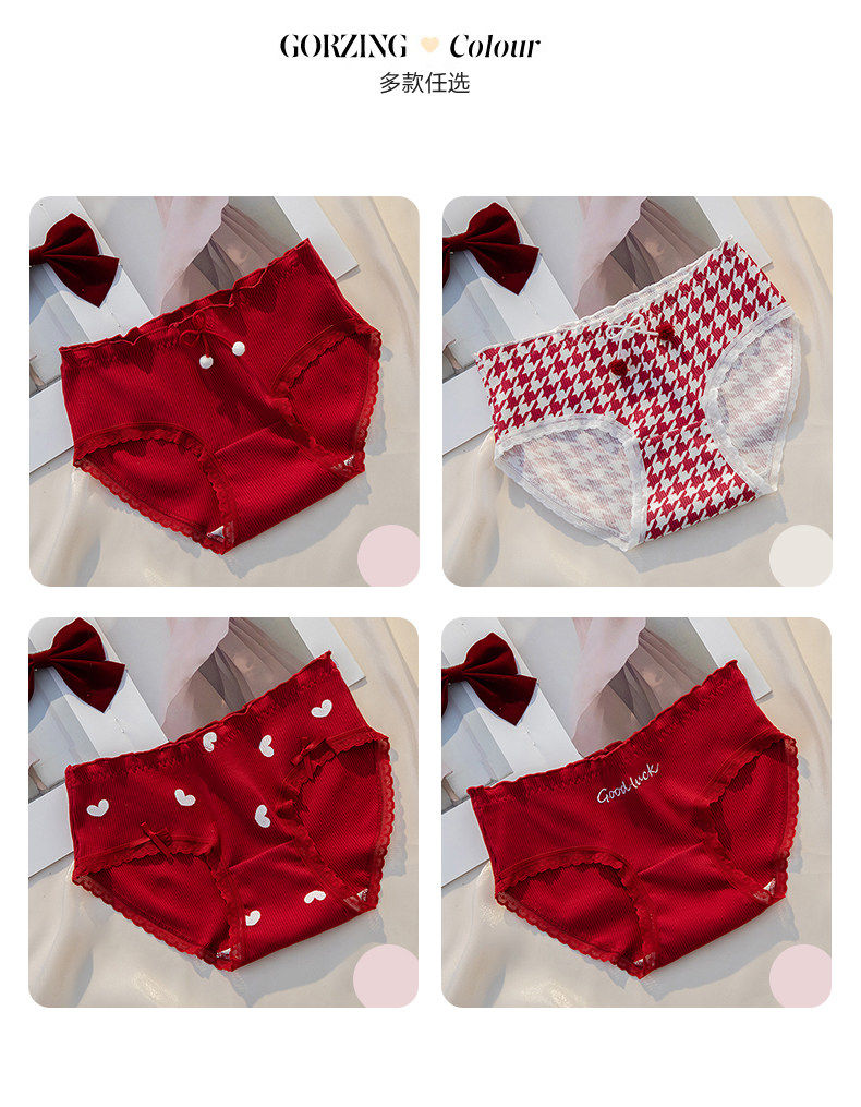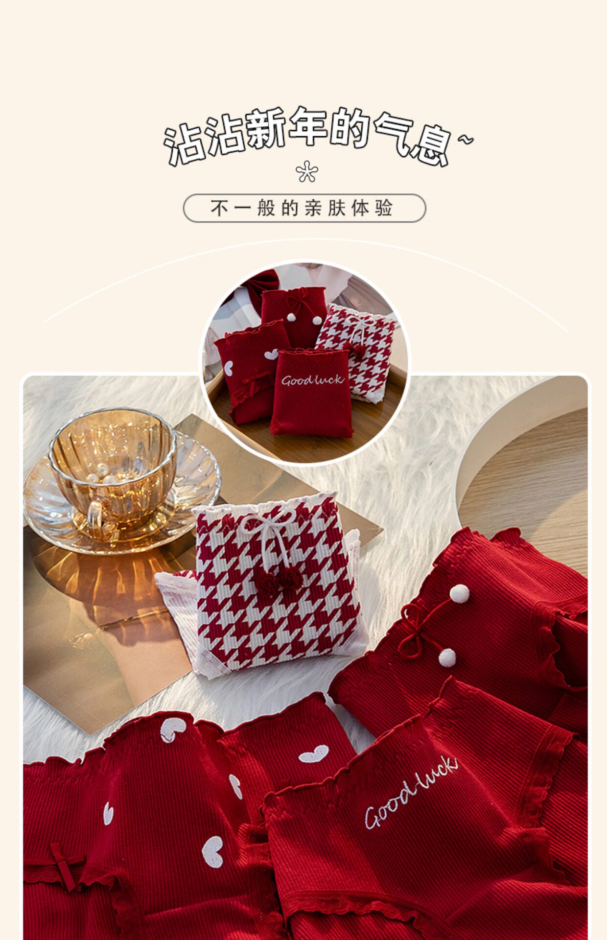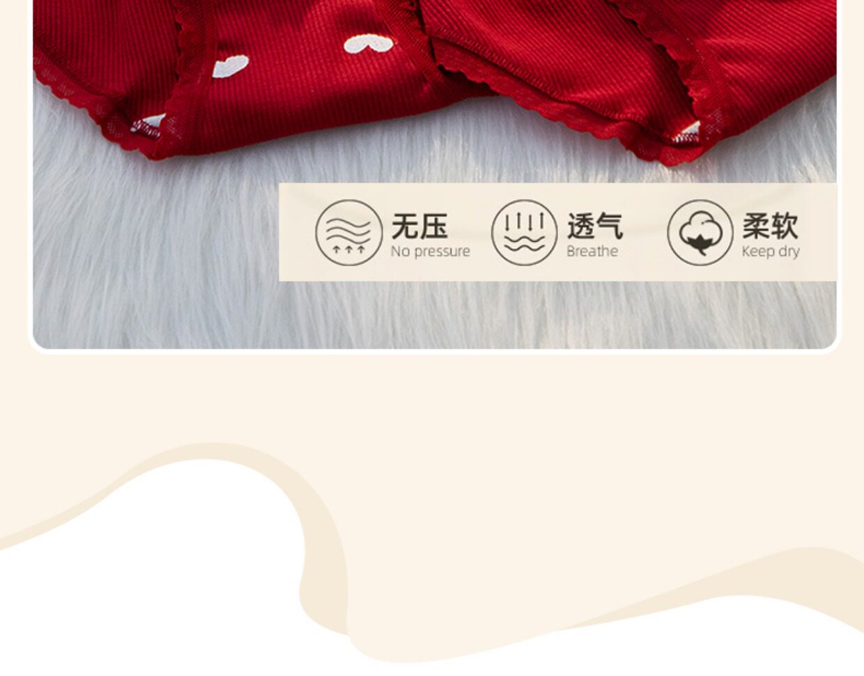 馬年紅色內褲女純棉抗菌全棉檔中腰愛心本命年結婚蕾絲邊三角短褲