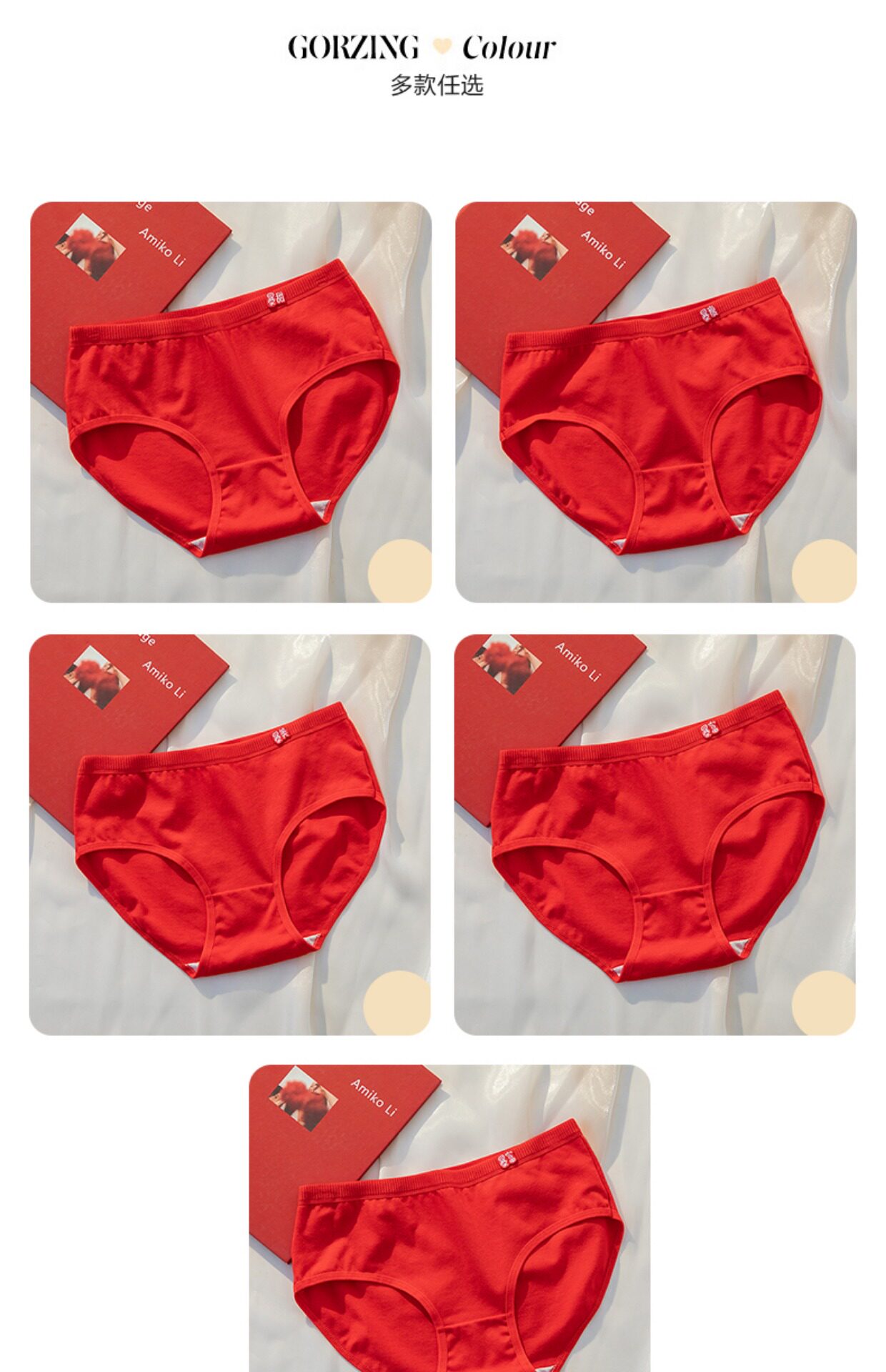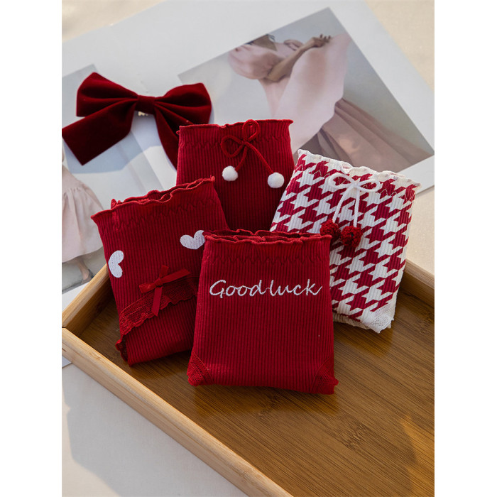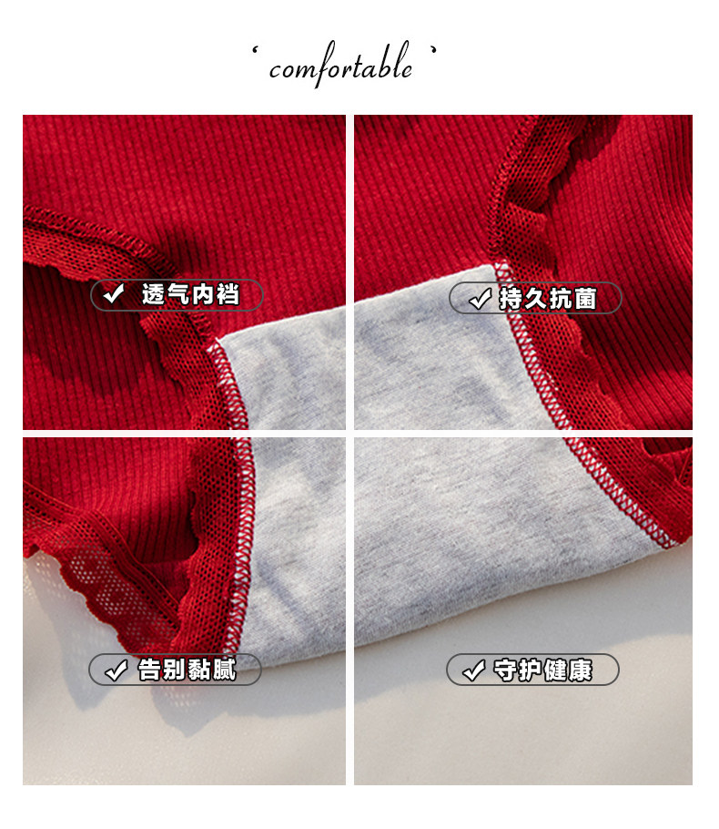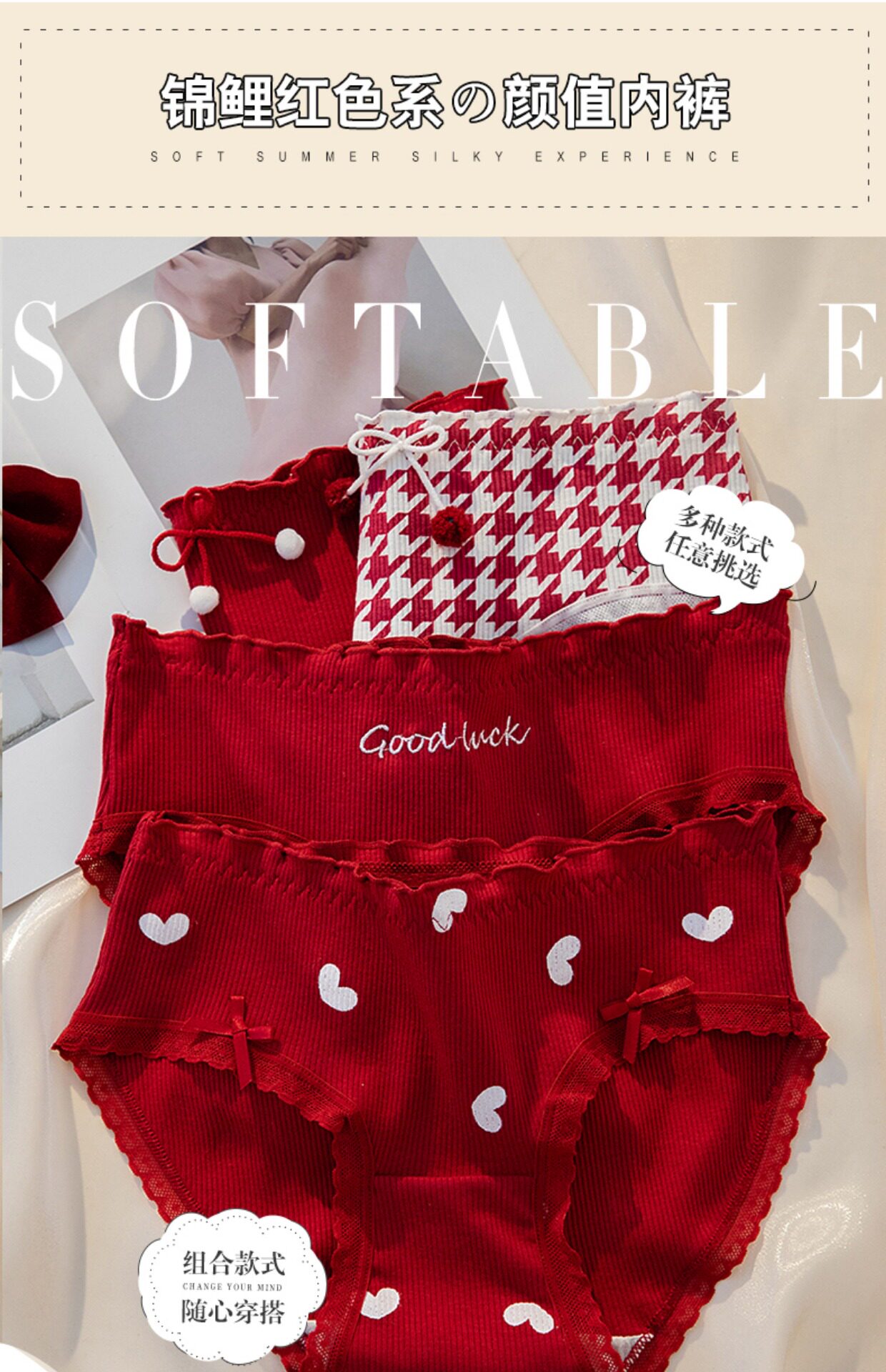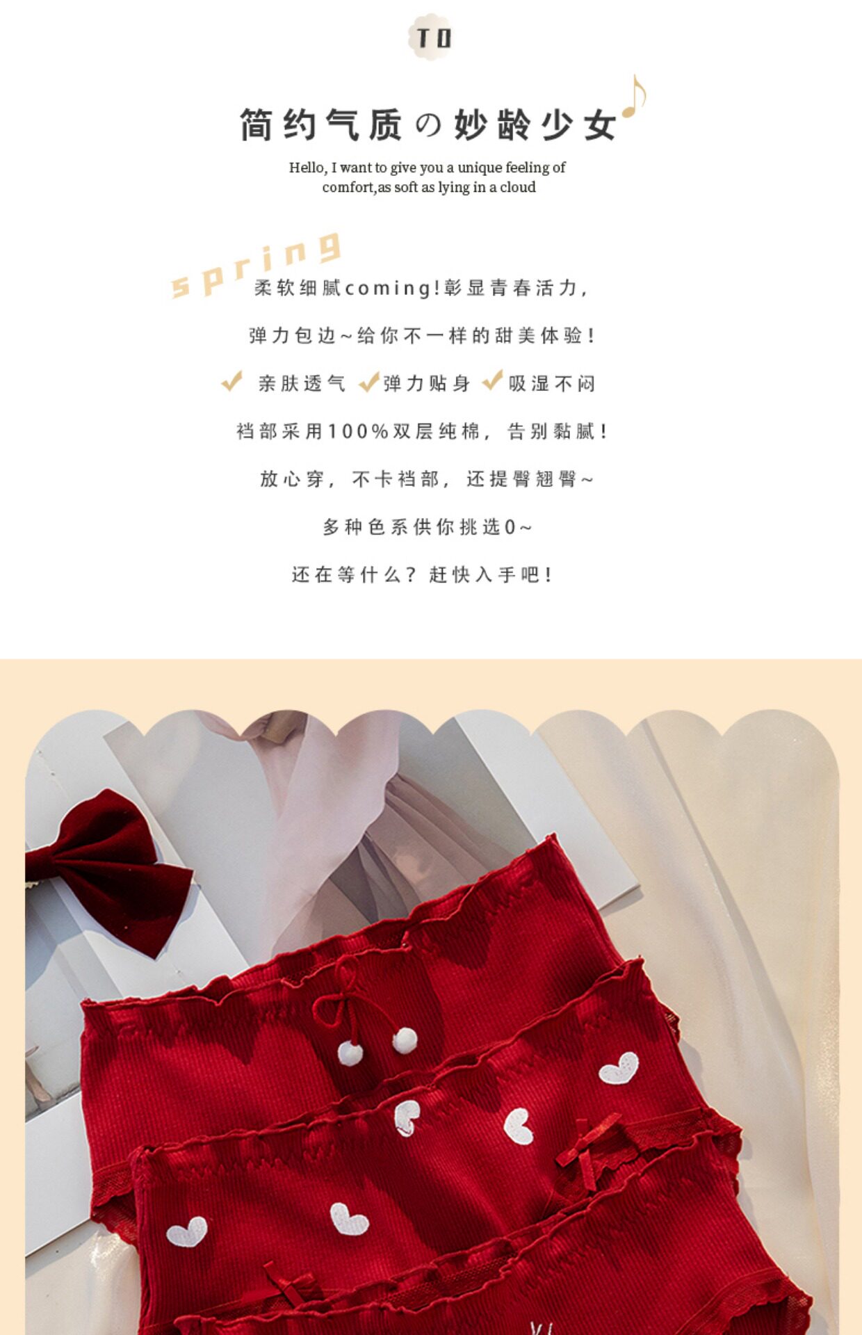 馬年紅色內褲女純棉抗菌全棉檔中腰愛心本命年結婚蕾絲邊三角短褲