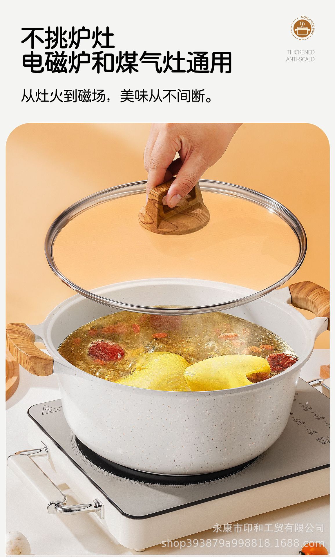 麥飯石湯鍋不沾鍋煲湯電磁爐專用火鍋燜炒乾鍋瓦斯鍋鍋具易清帶蓋