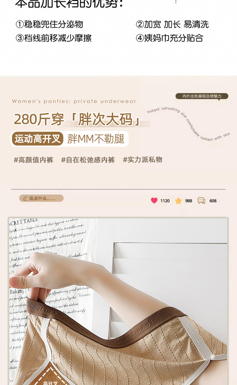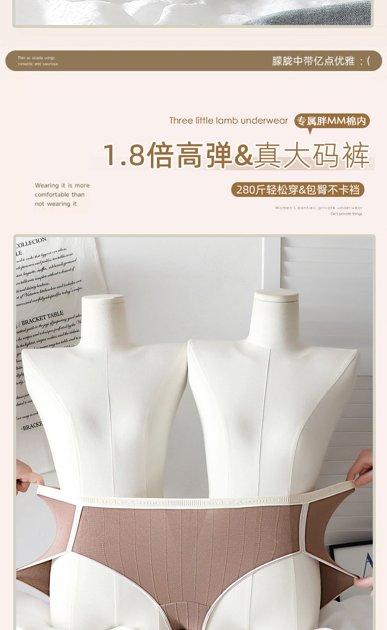 大碼高開叉內褲女300斤不勒腿胖mm包臀大屁股純棉抗菌加長襠200斤