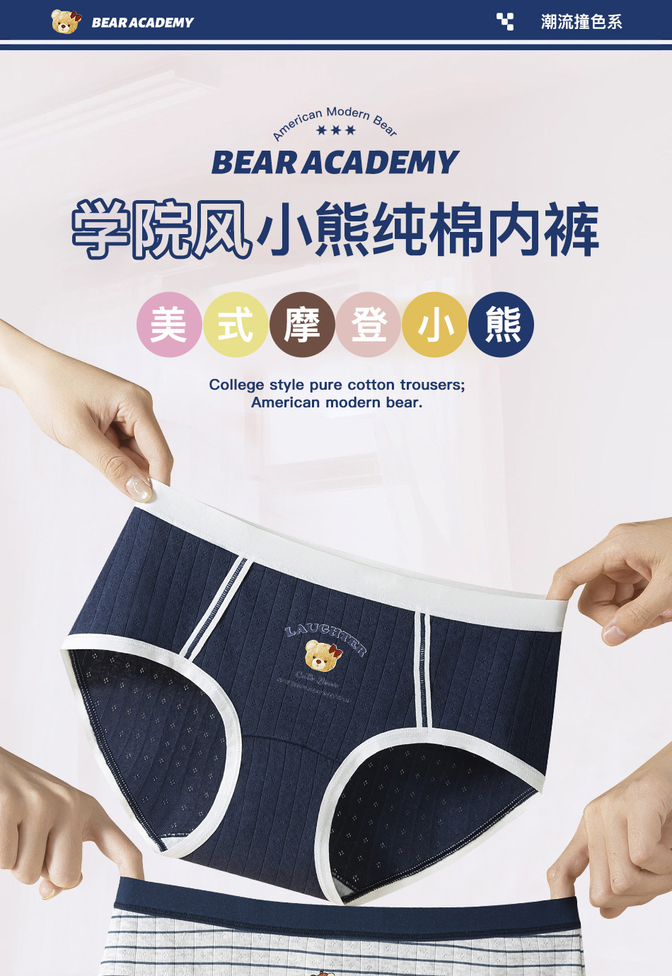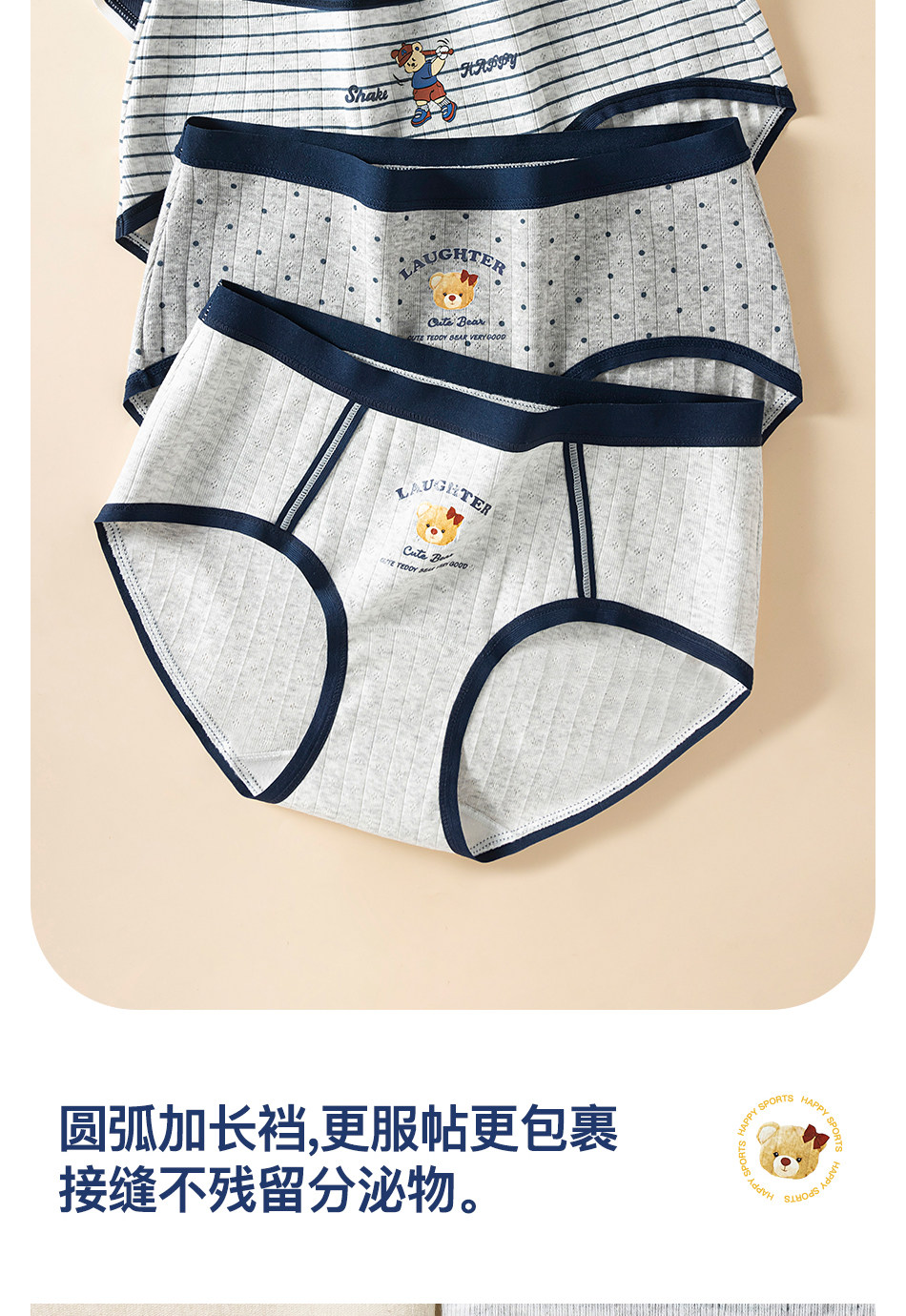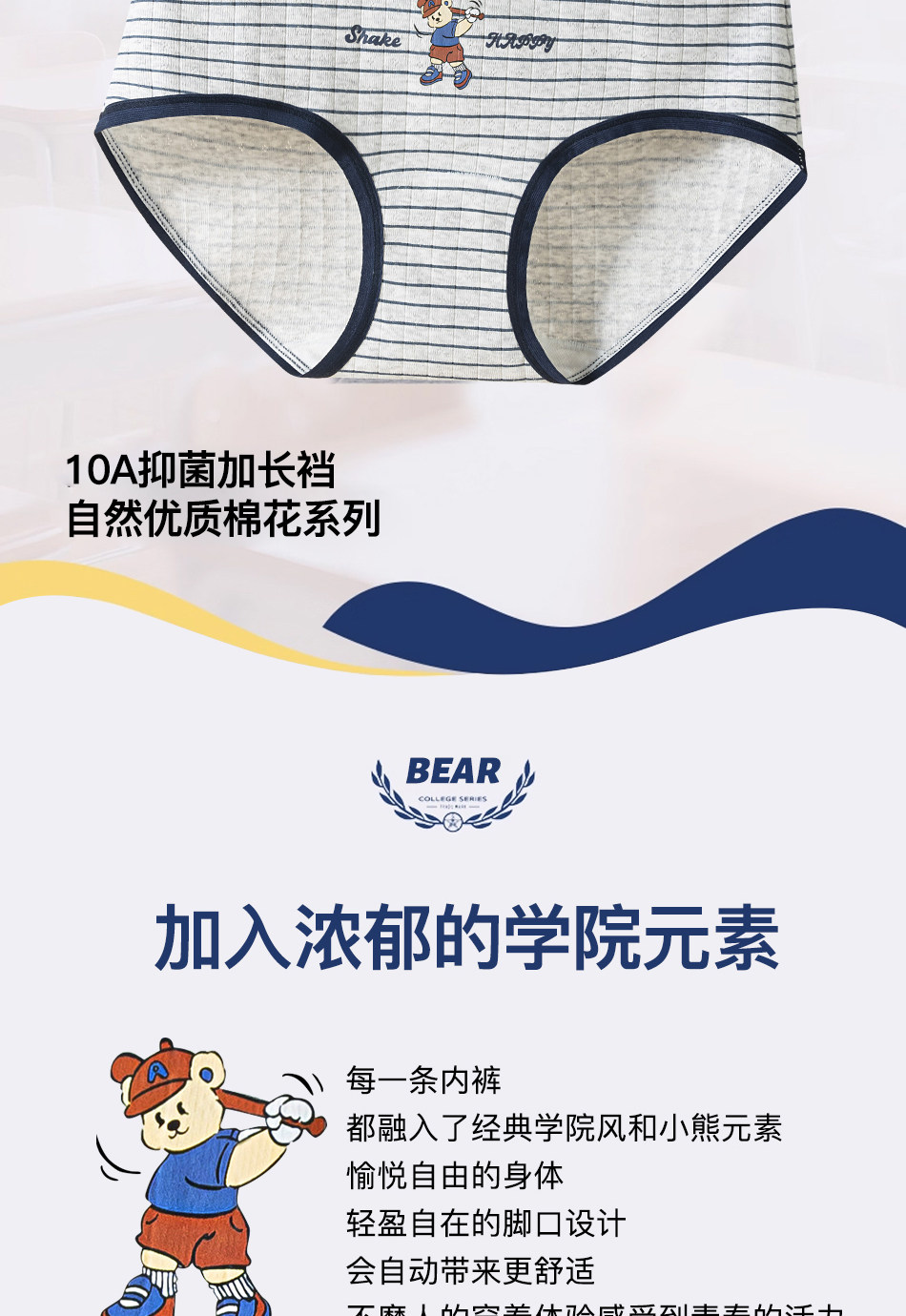 帕蘭朵純棉內褲女10A抑菌全棉加長襠復古學院風A類小熊學生三角褲