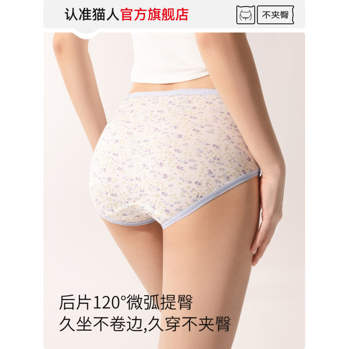 貓人莫代爾內褲女士中腰無痕透氣純棉10a級抗菌襠女生三角褲新款