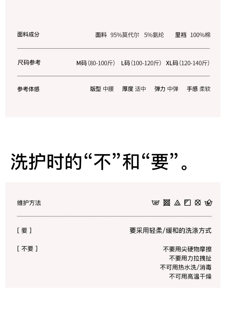 | 材質成分 | 莫代爾纖維(莫代爾)95% 聚氨酯彈性纖維(氨綸)5% |