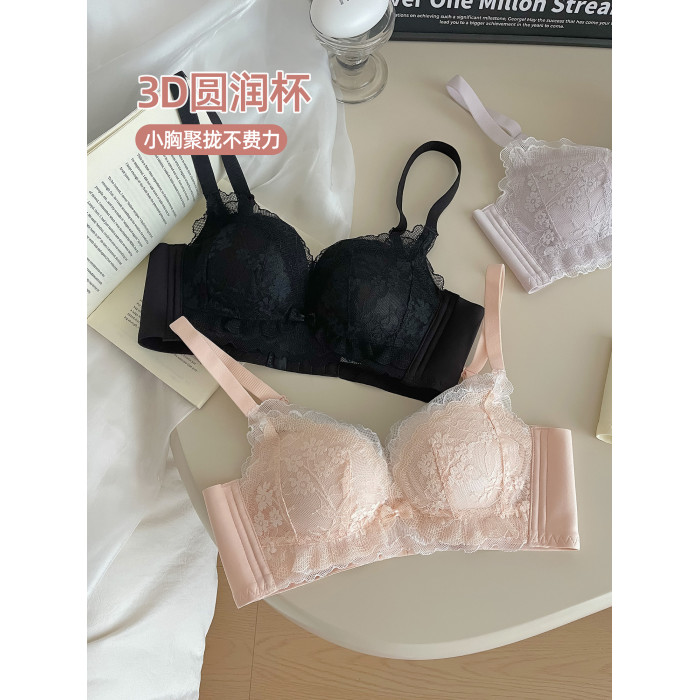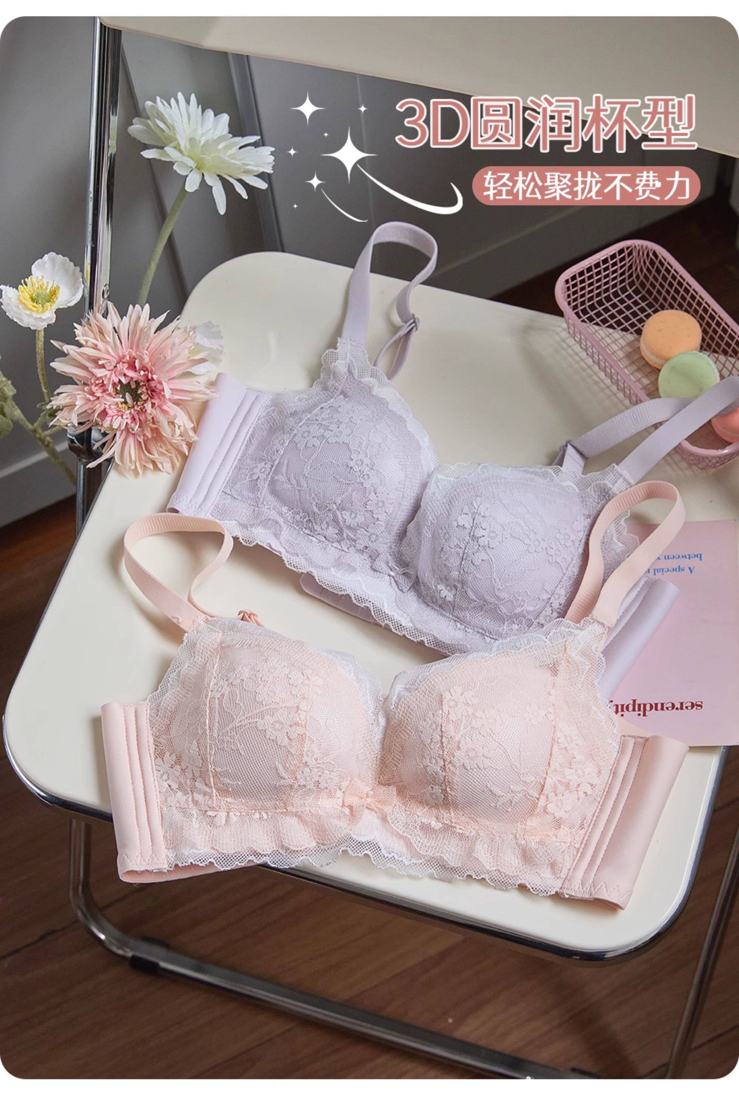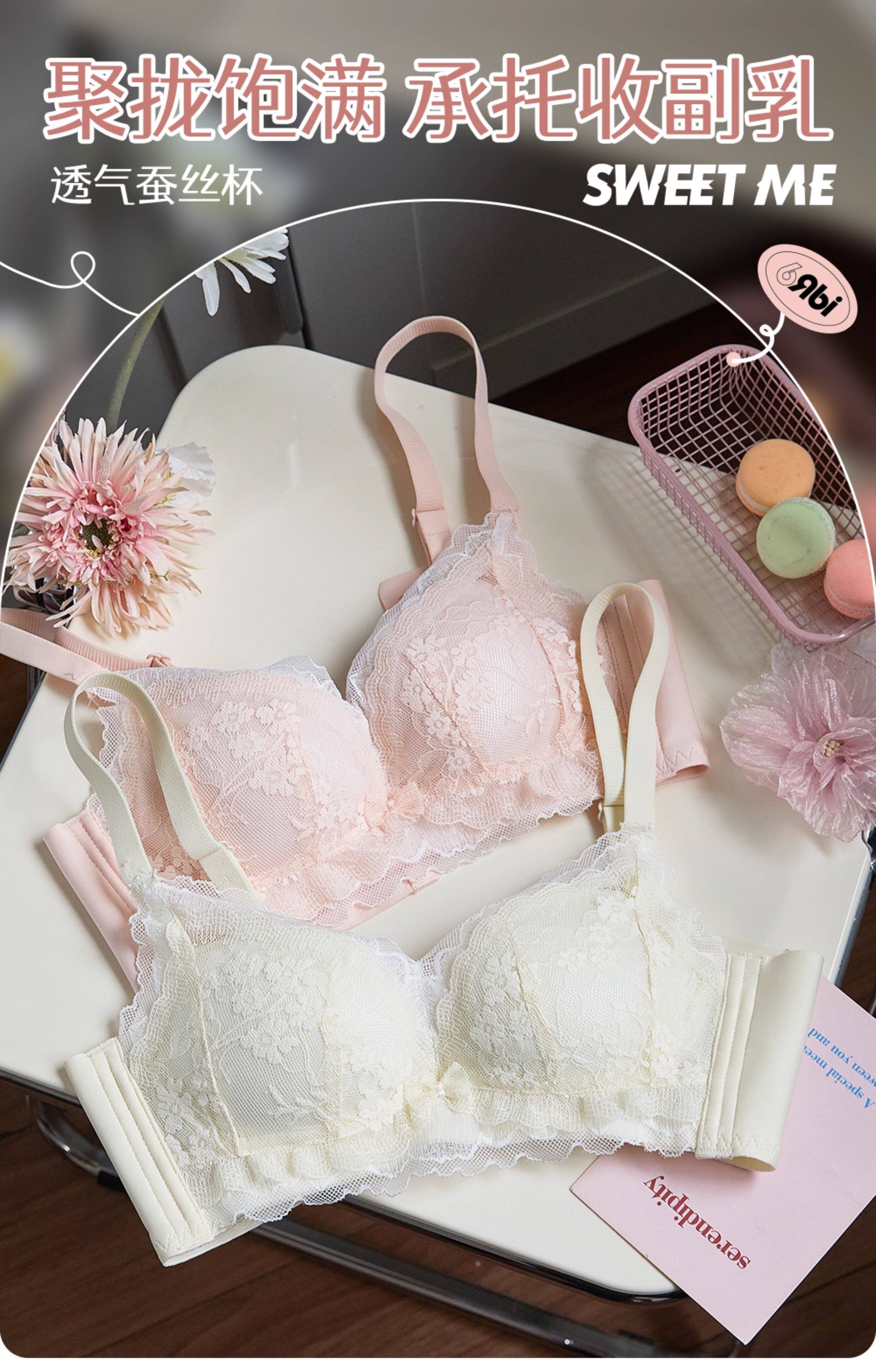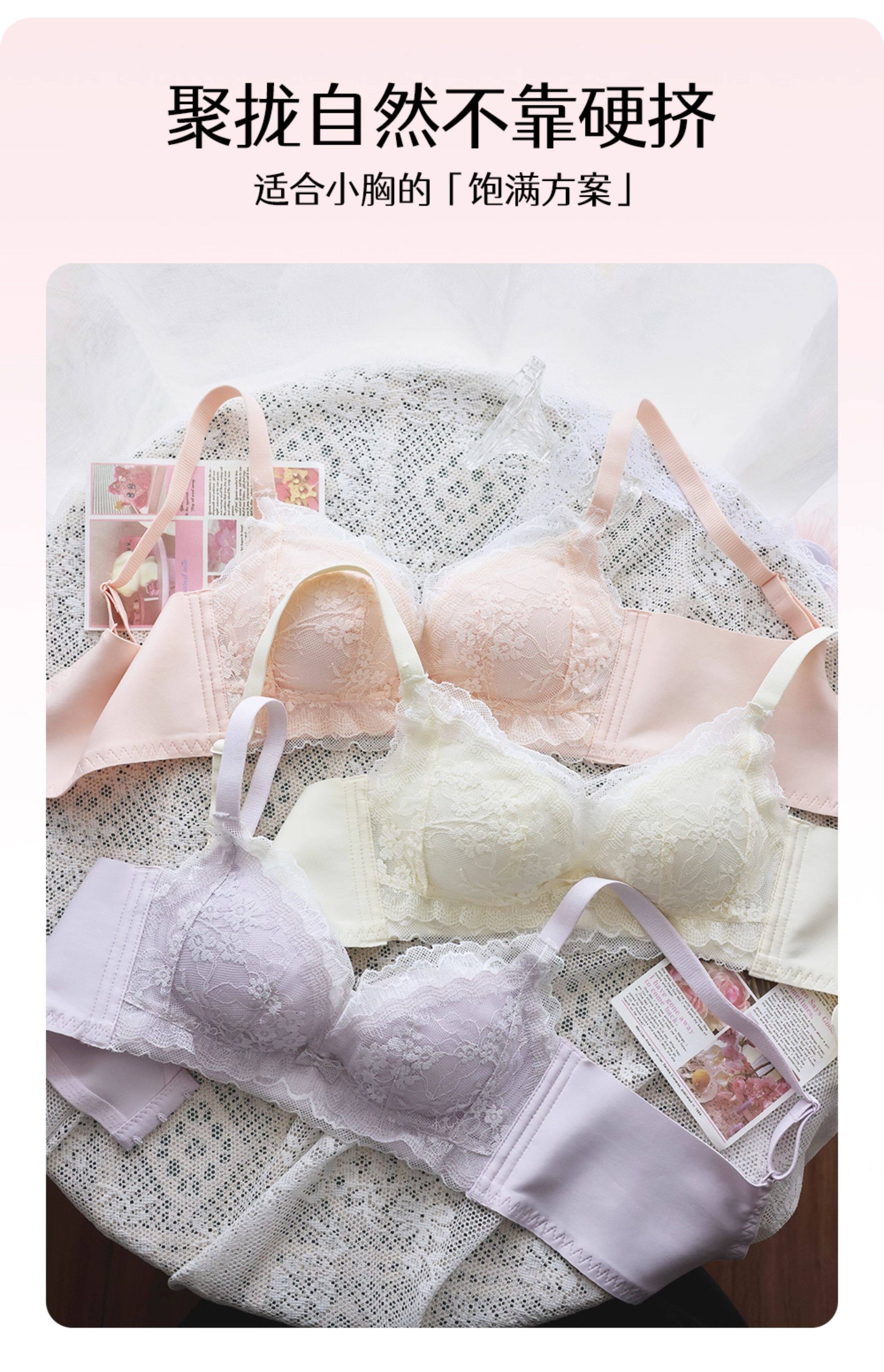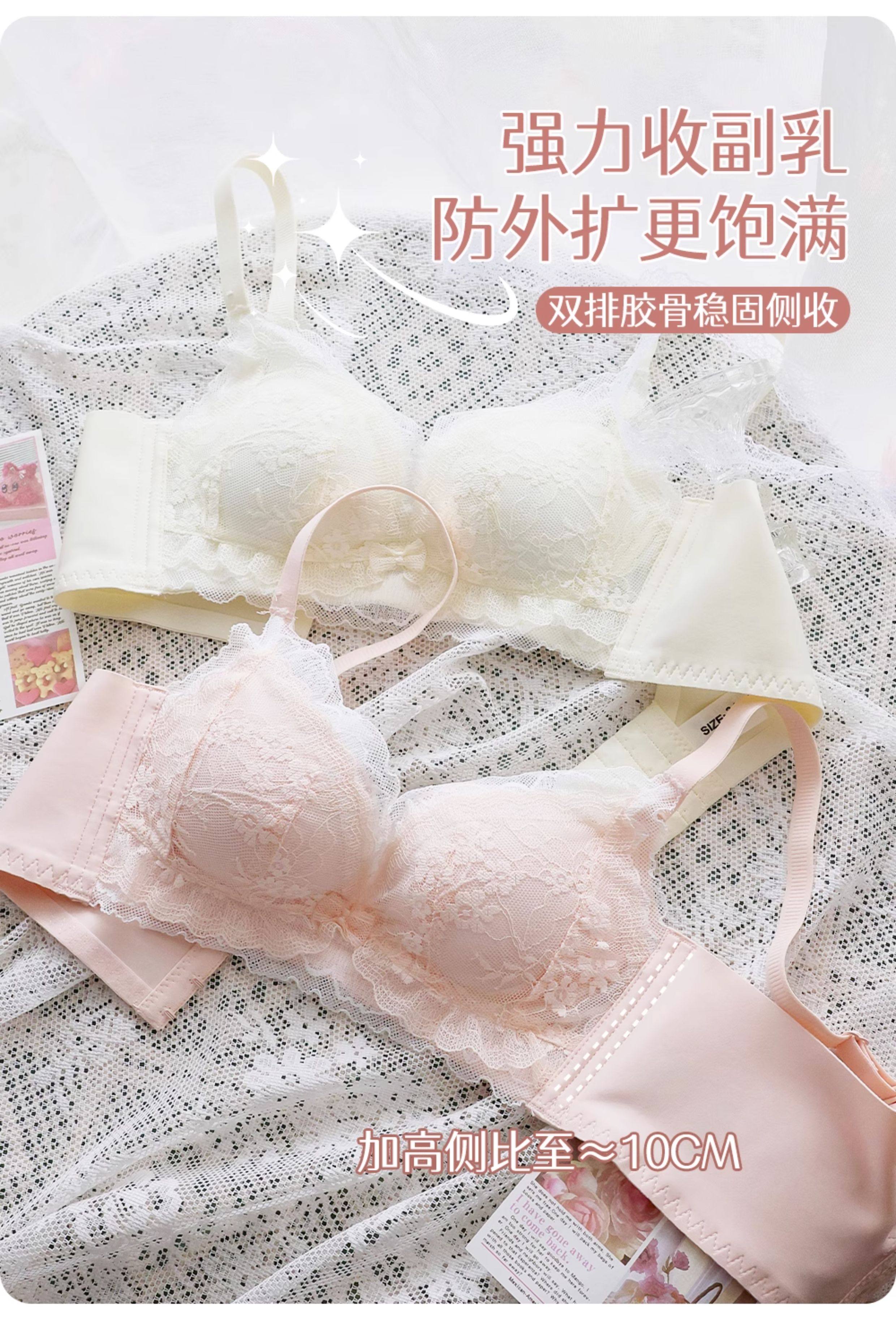 六隻兔子內衣女小胸聚攏顯大圓圓胸防外擴收副乳無鋼圈蕾絲文胸