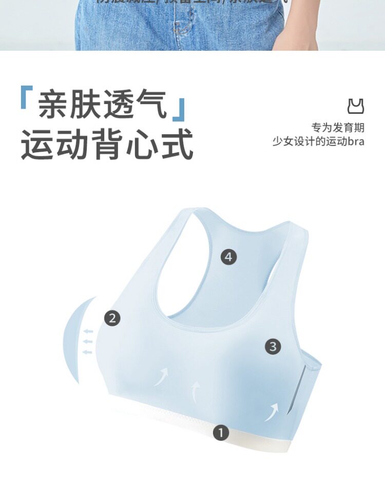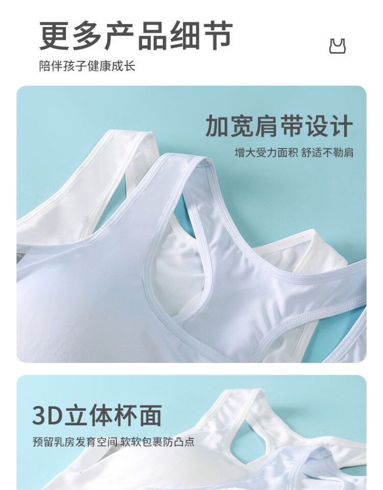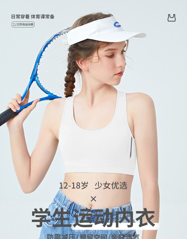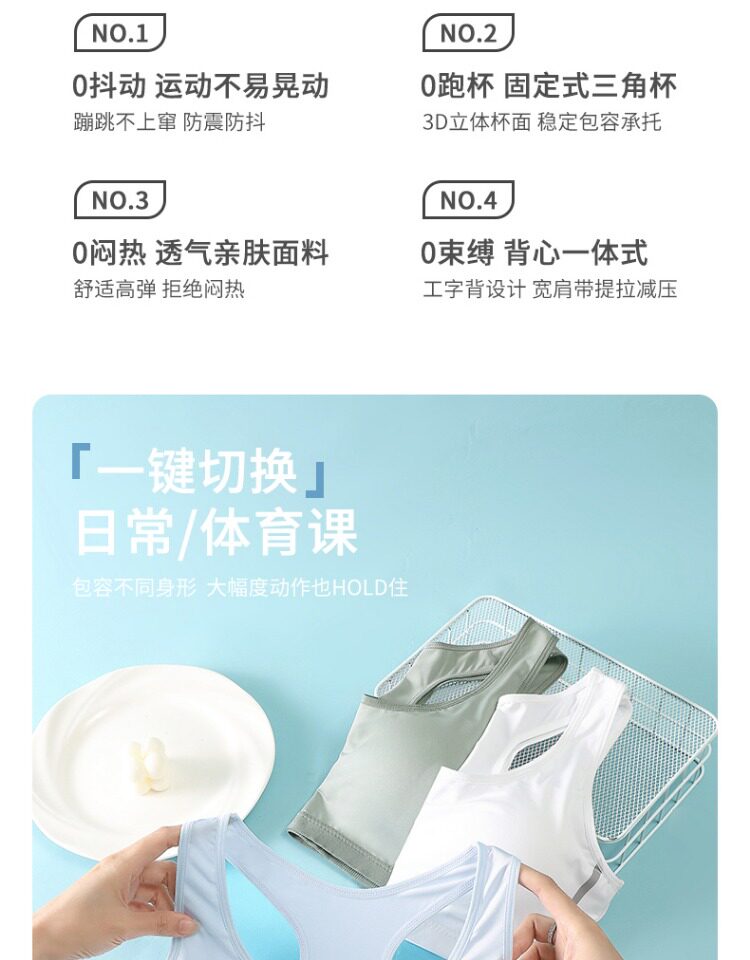 芬騰純棉內衣女發育期少女固定杯初中高中學生青春期運動防震文胸