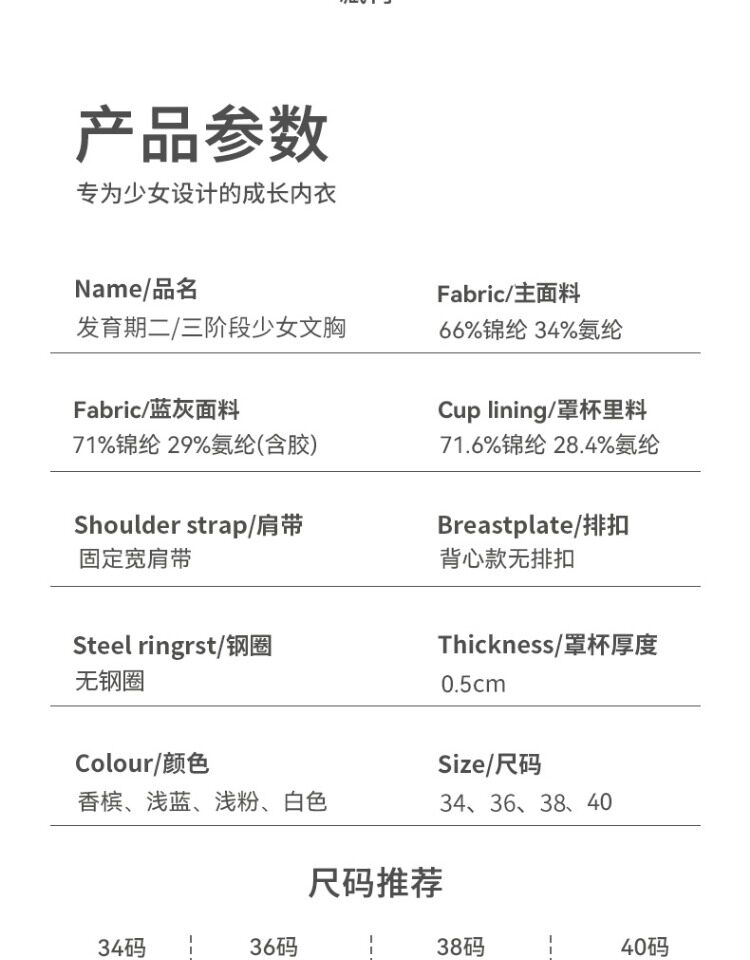 | 文胸風格 | 少女 |