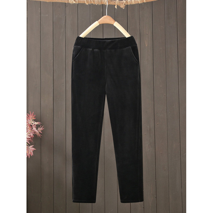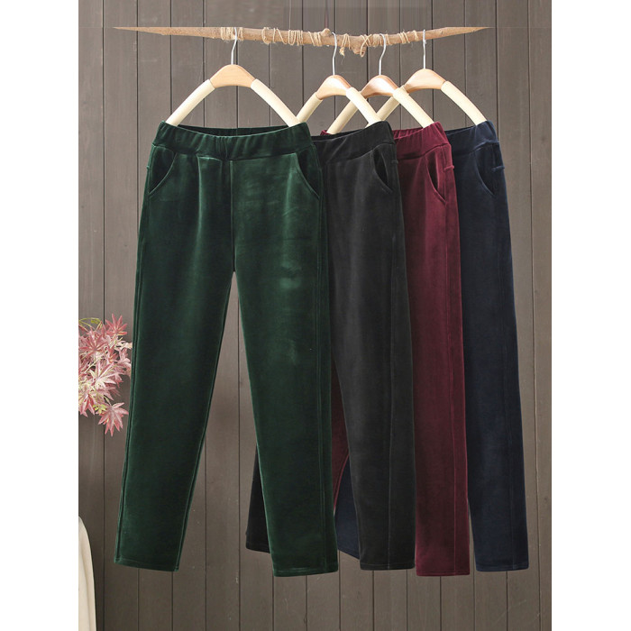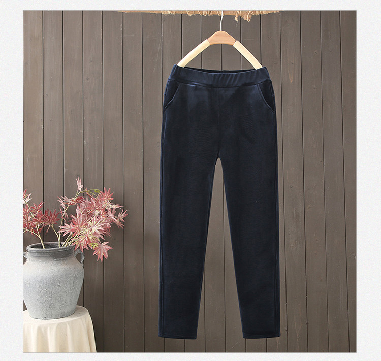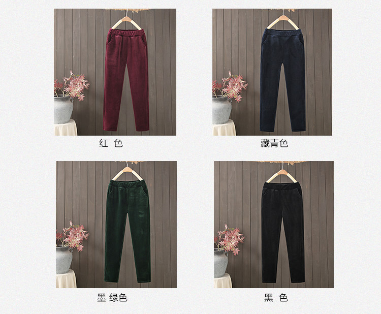 金絲絨媽媽褲子女秋冬加絨加厚休閒小腳褲高腰彈力外穿中老年女褲