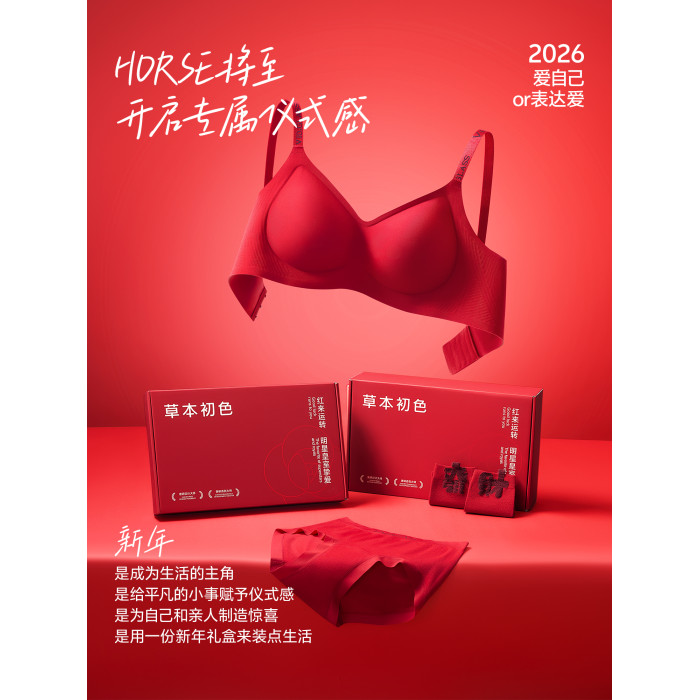 草本初色內衣套裝本命年女紅色結婚馬年小胸聚攏無鋼圈收副乳文胸