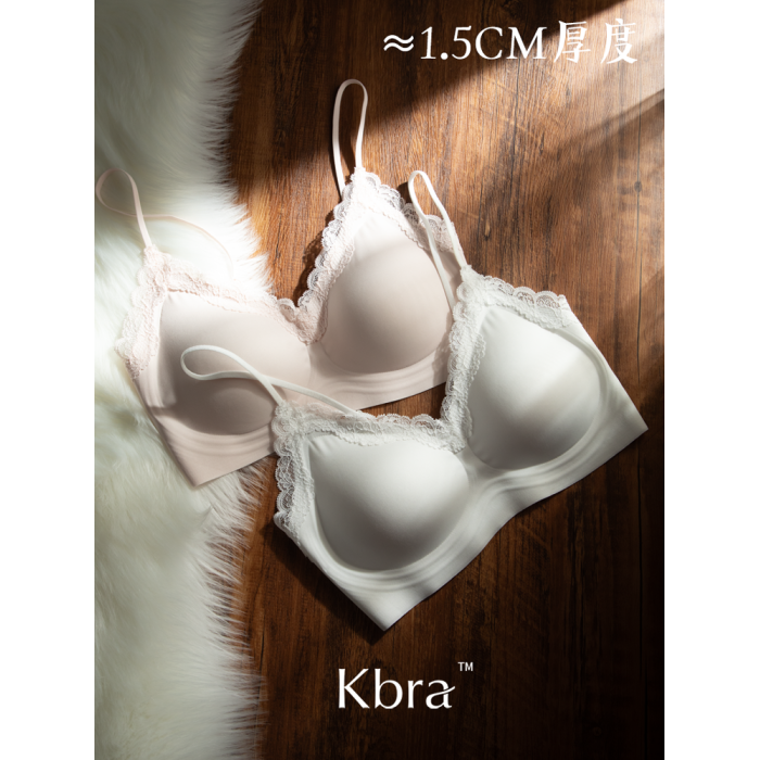 Kbra細肩帶小胸聚攏內衣女法式V領蕾絲邊女士胸罩無痕收副乳文胸