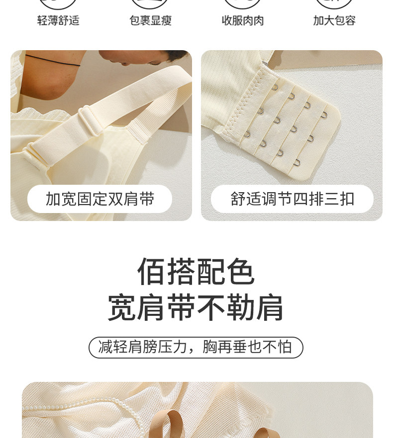 無痕內衣女士小胸聚攏收副乳防下垂大胸顯小外擴調整型提拉文胸罩