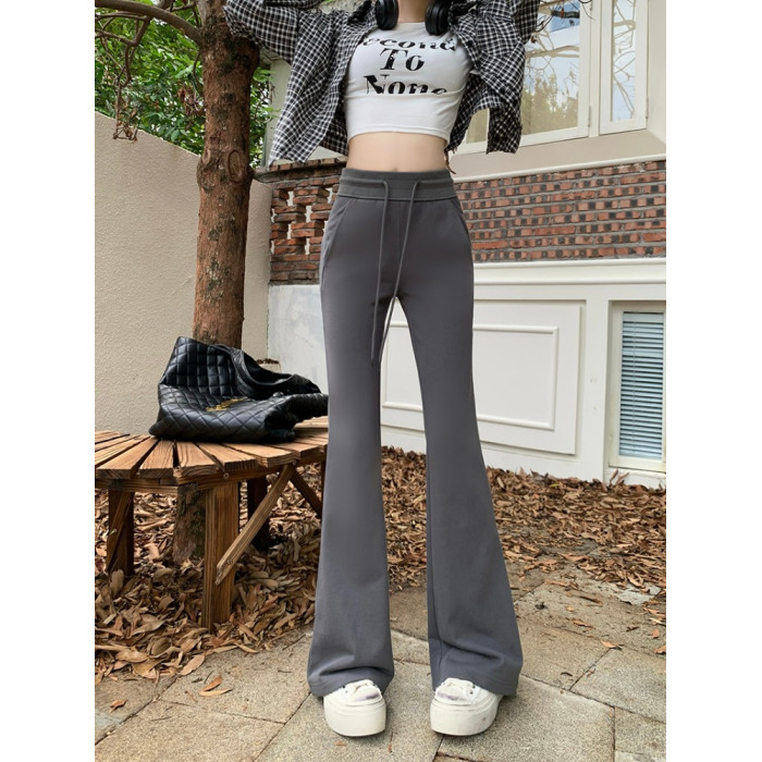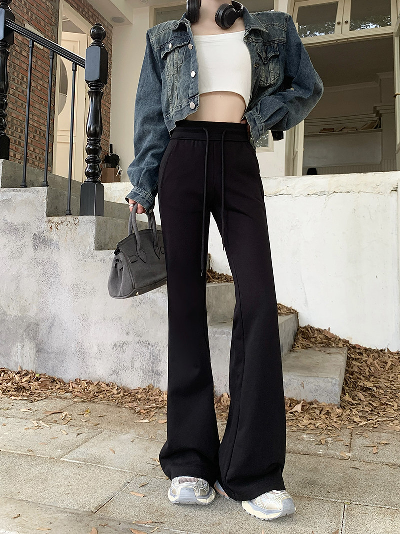 小個子145cm百搭美式辣妹運動休閒喇叭褲女150顯瘦直筒微喇叭褲子