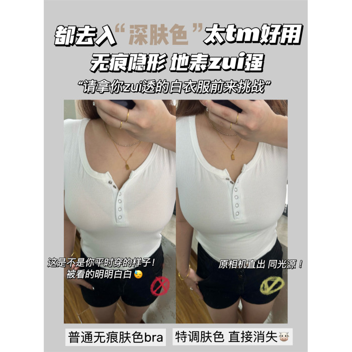 隱形王者 深膚無尺碼無痕內衣女無鋼圈果凍條小胸聚攏薄款背心式