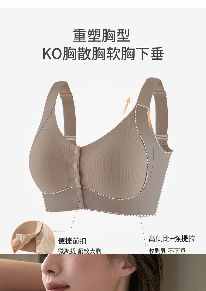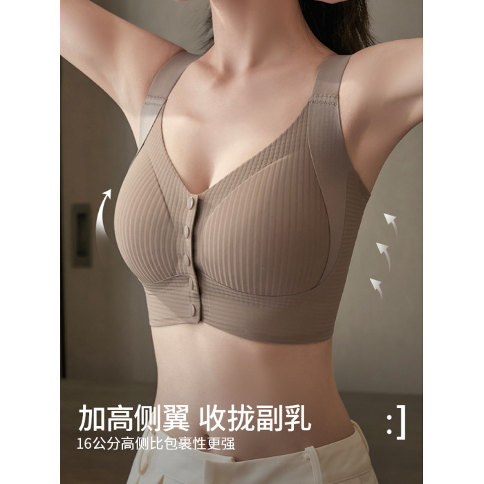 安娜蜜語大胸顯小全罩杯內衣女大碼前釦文胸無痕透氣無鋼圈防下垂