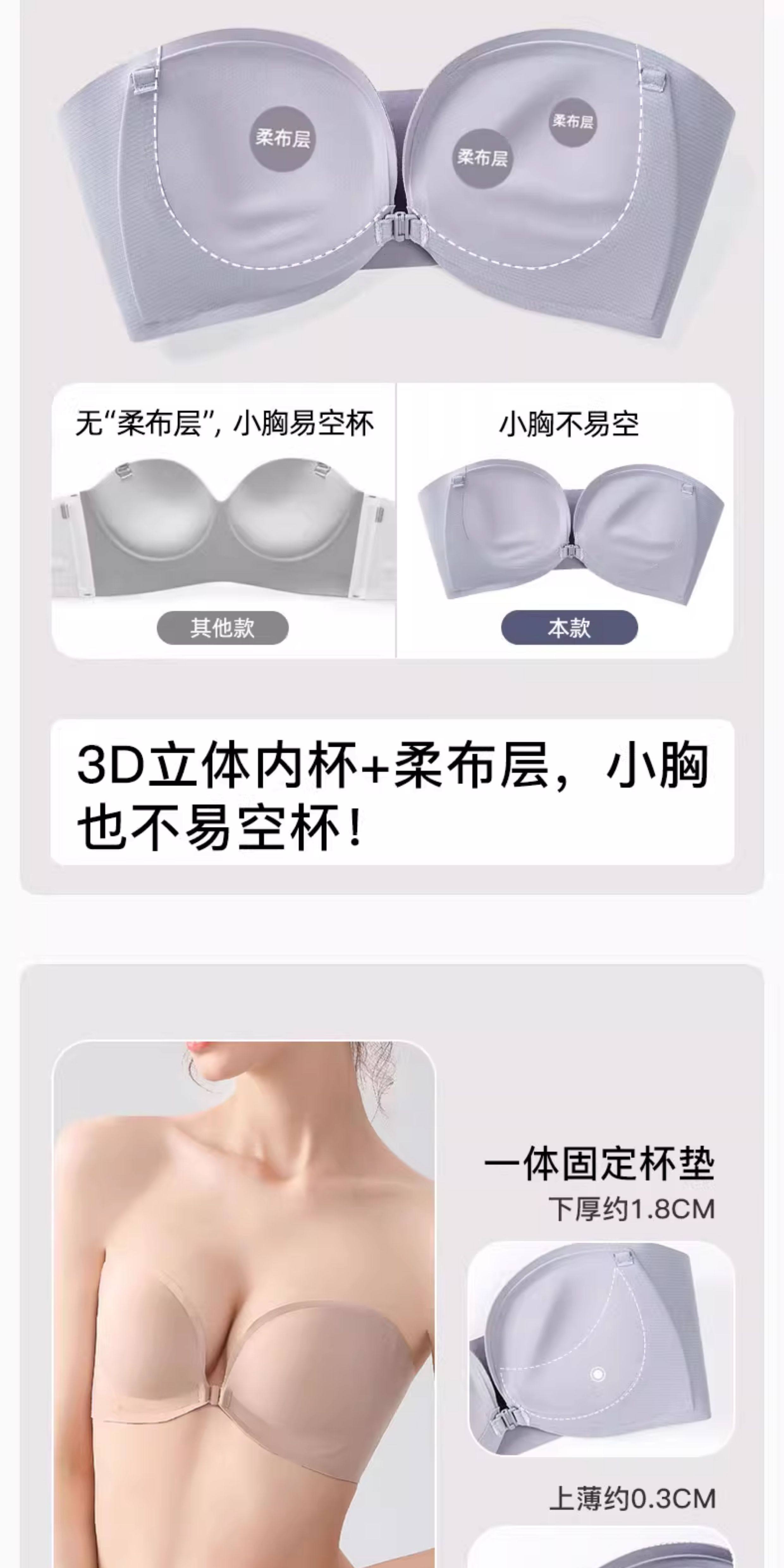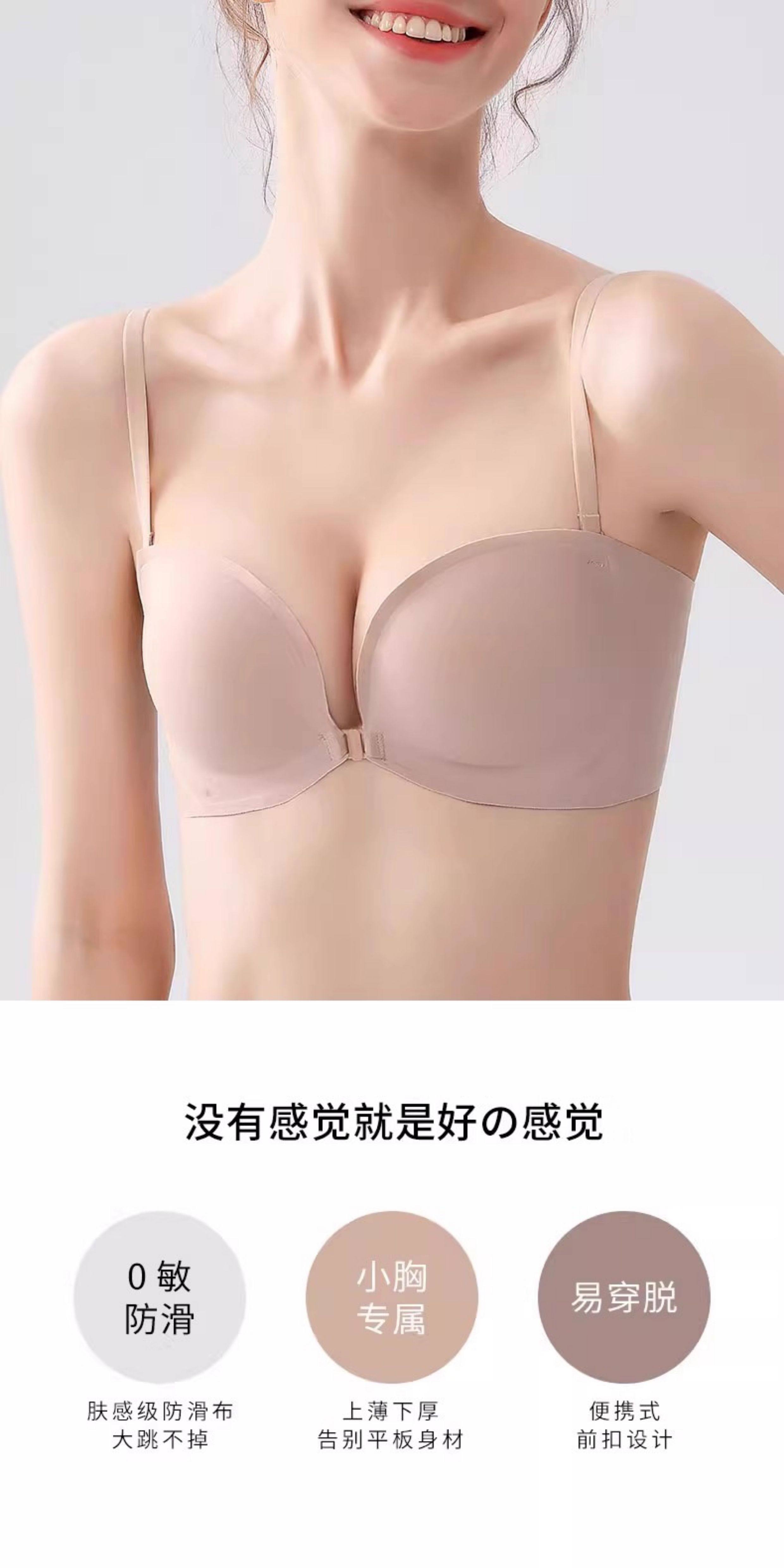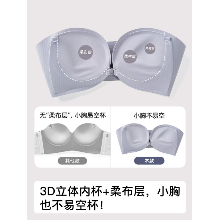 日本TENO無痕內衣女無肩帶防滑隱形小胸聚攏顯大前釦抹胸文胸罩