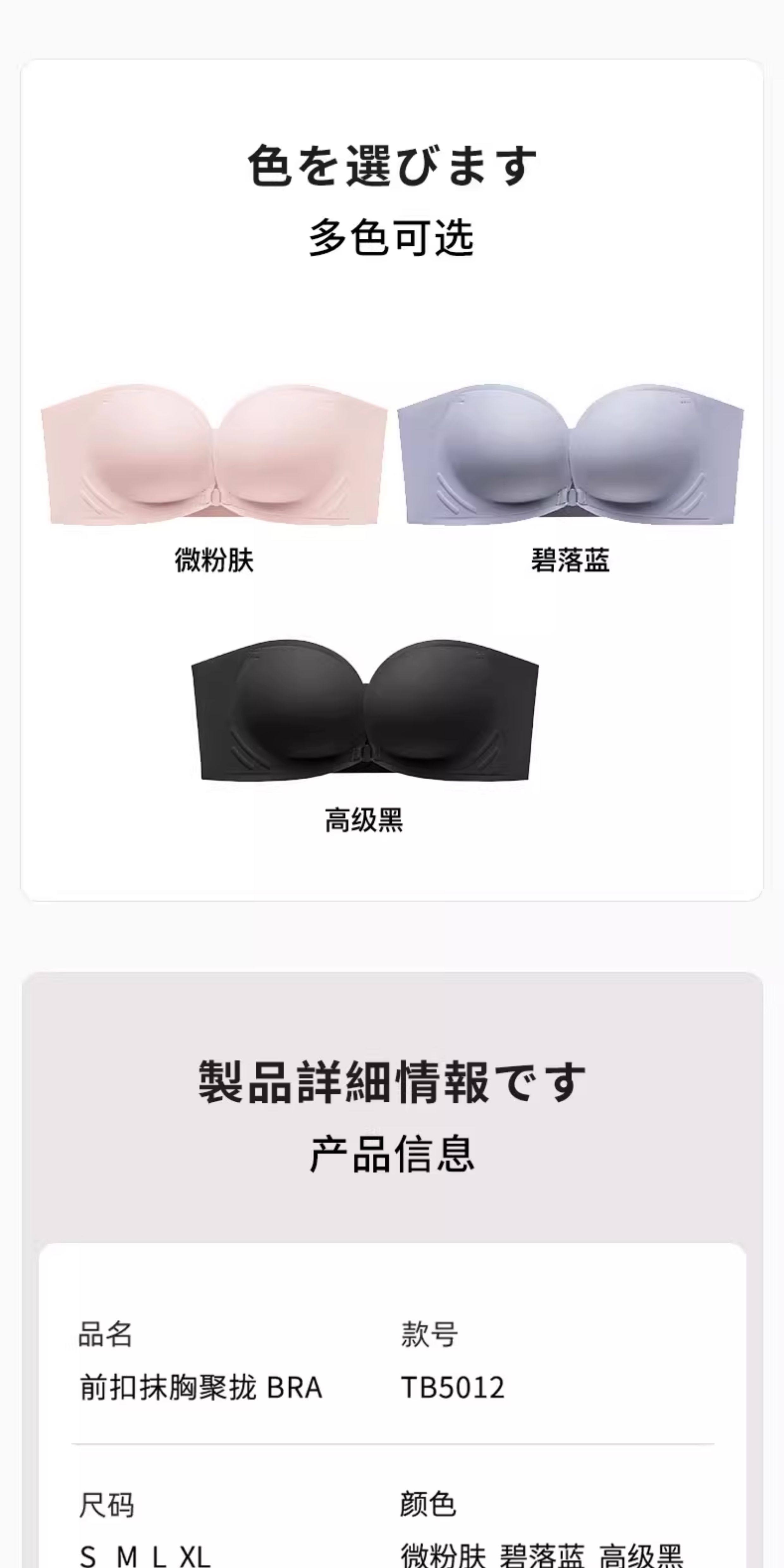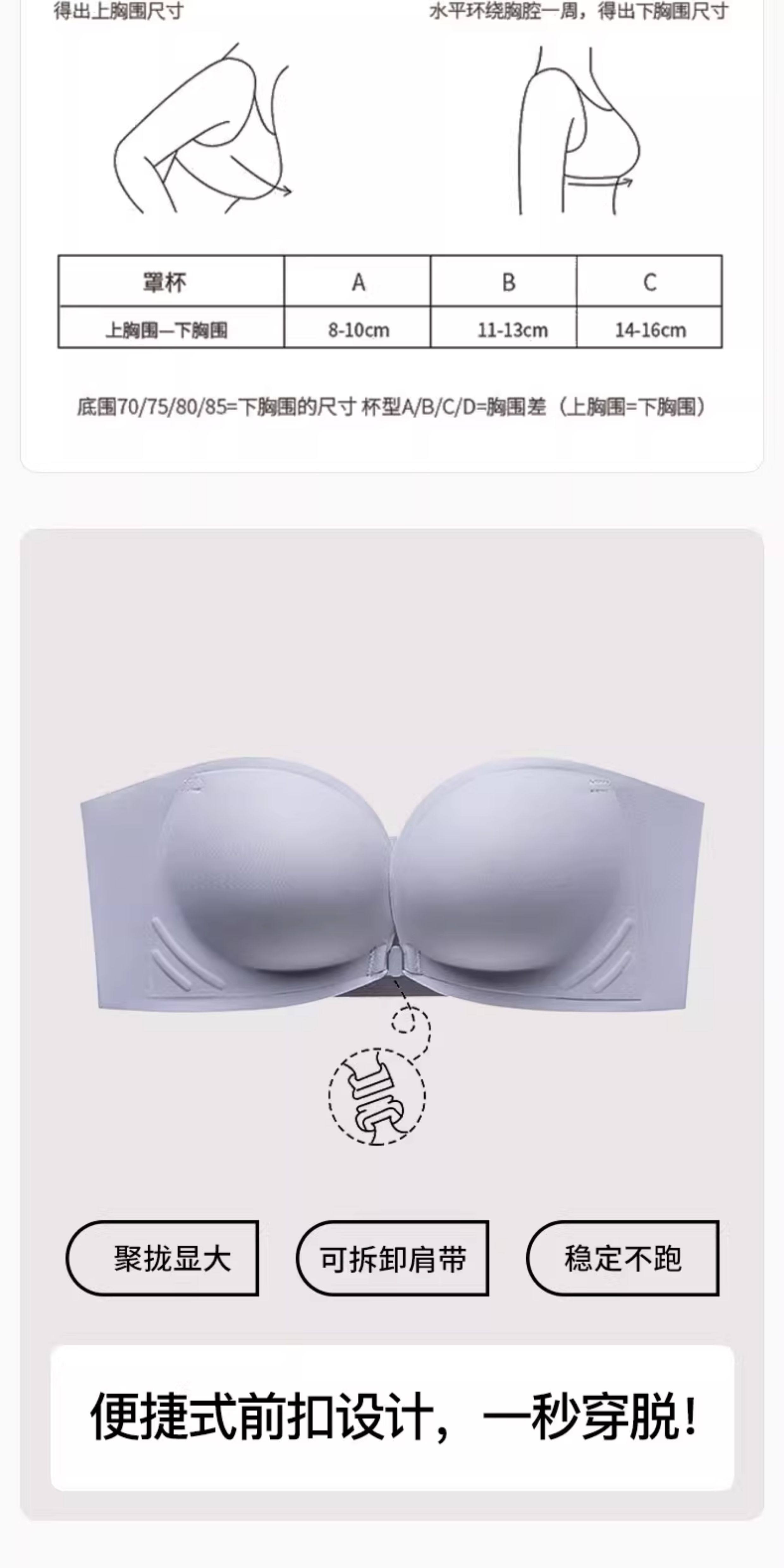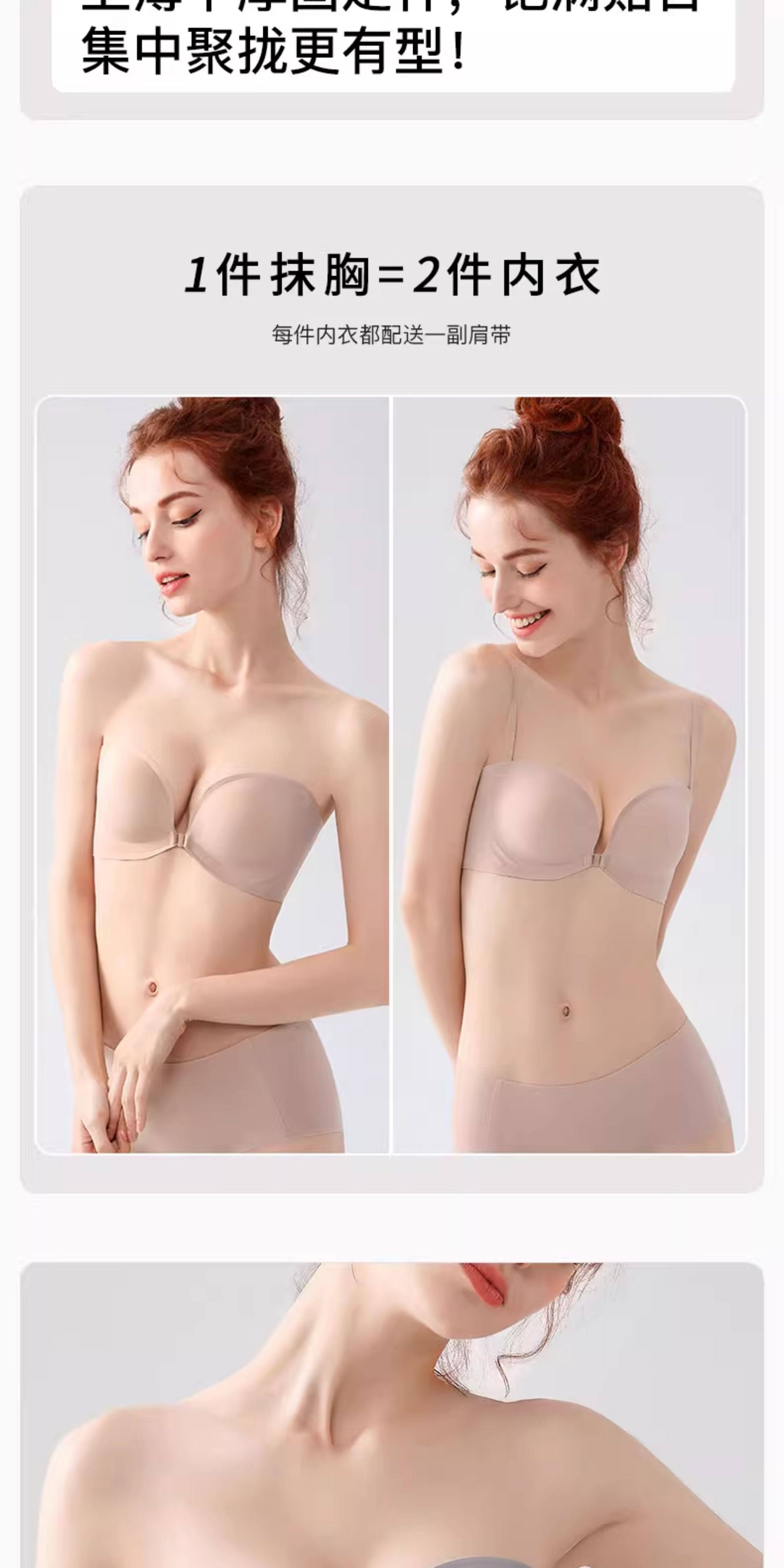 日本TENO無痕內衣女無肩帶防滑隱形小胸聚攏顯大前釦抹胸文胸罩