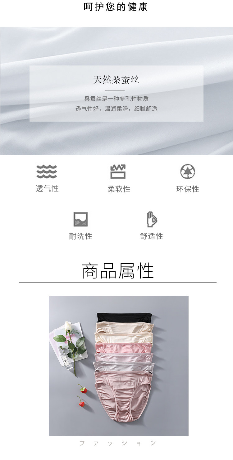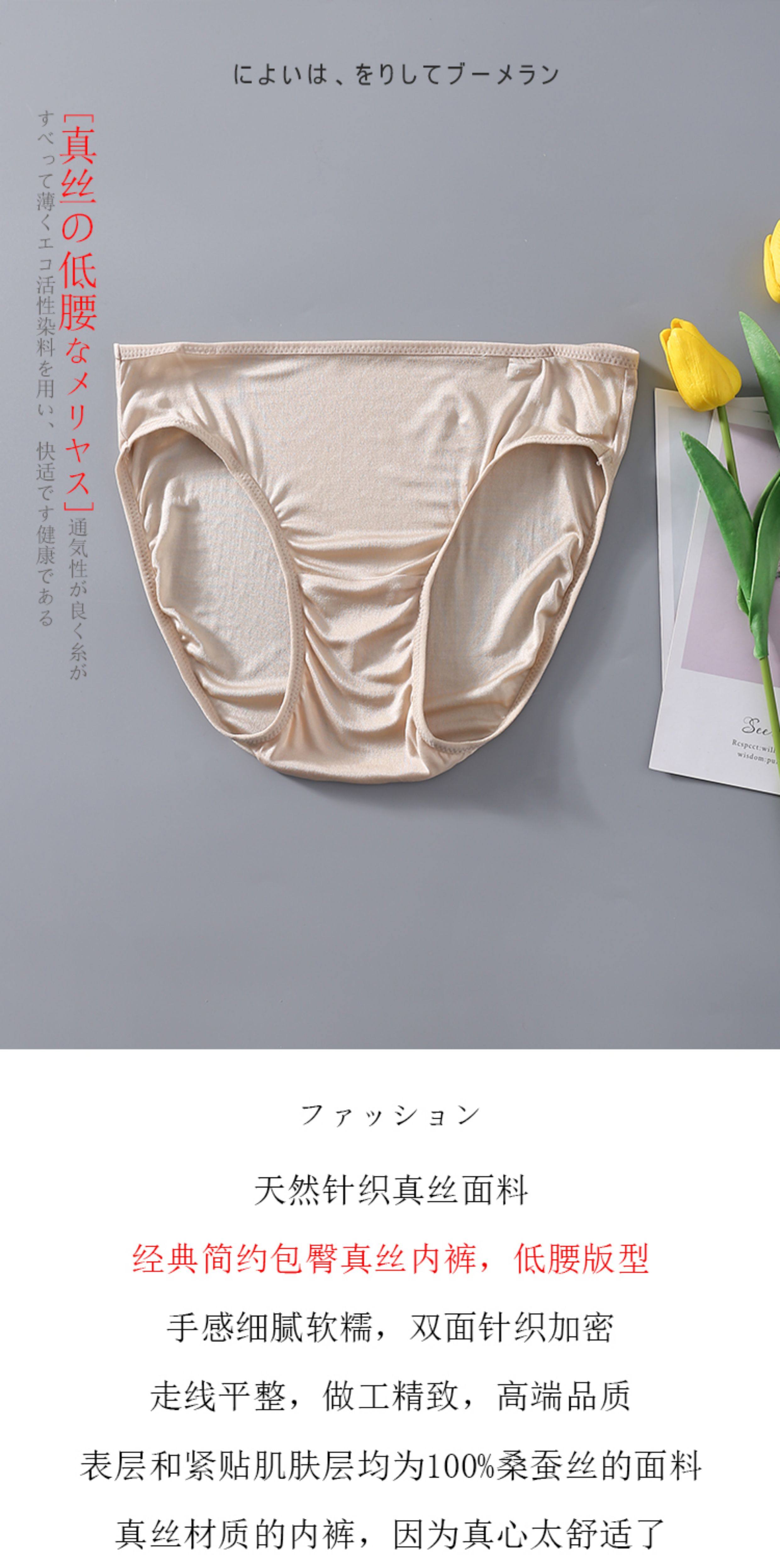 高檔100%桑蠶絲真絲針織雙面女士內褲 中低腰簡約基本款三角褲