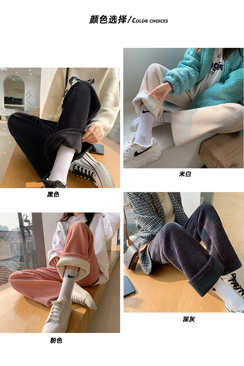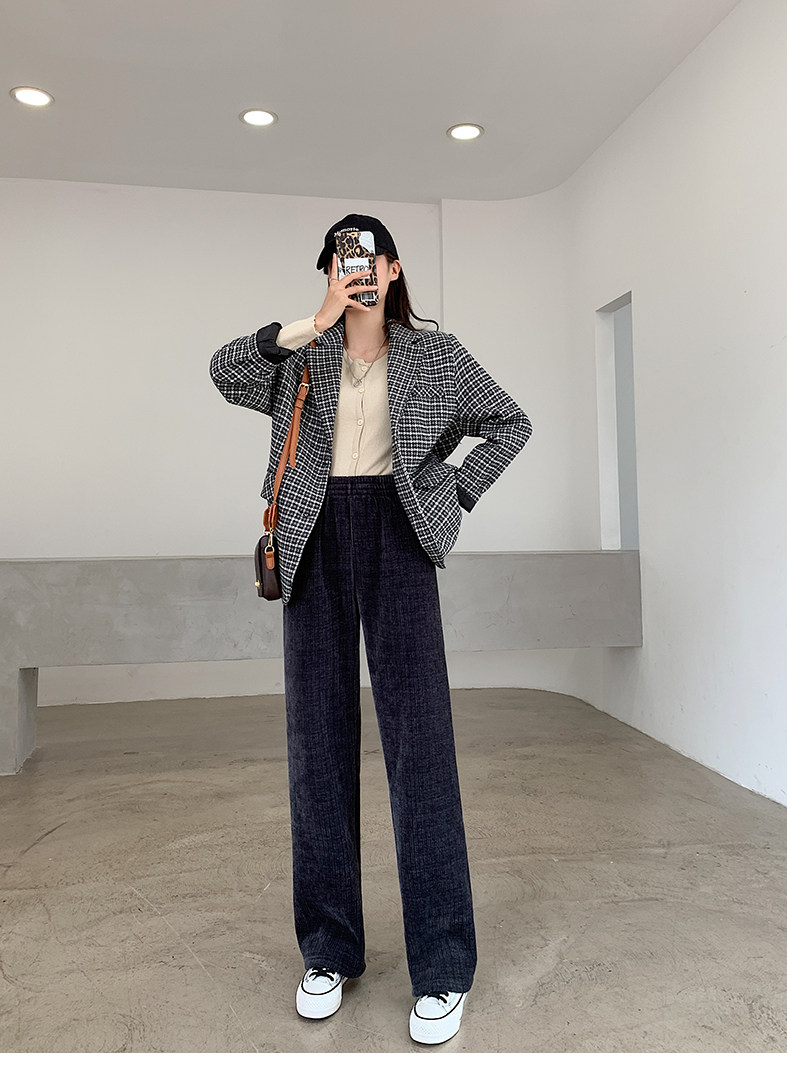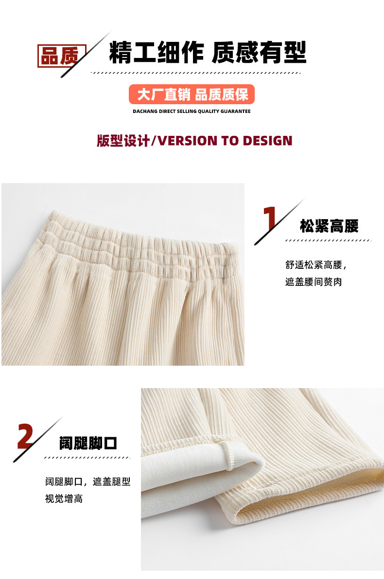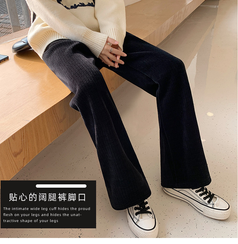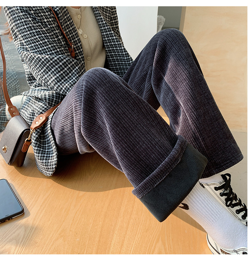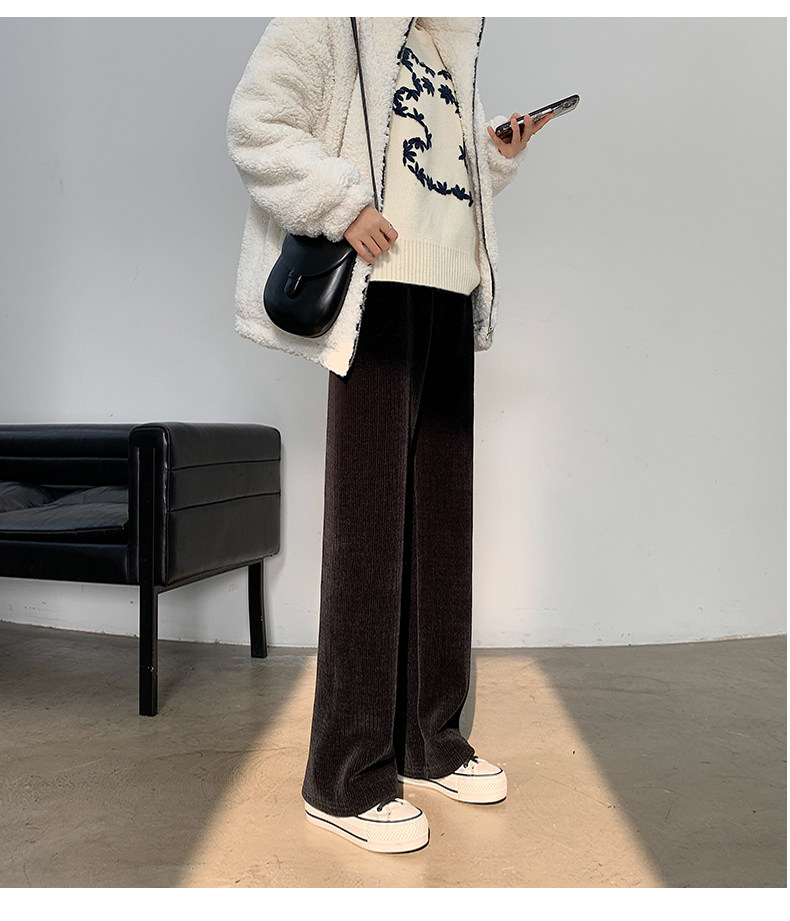 加絨雪尼爾濶腿褲女2025新款秋冬季高腰寬鬆直筒休閒褲燈芯絨褲子
