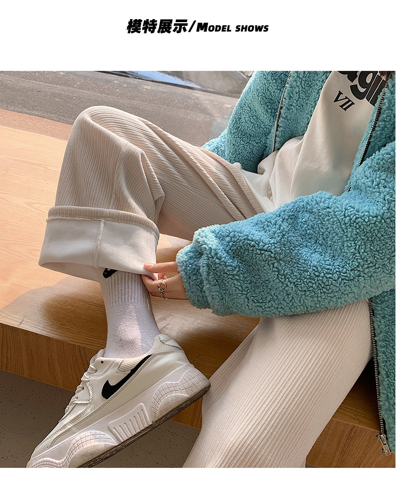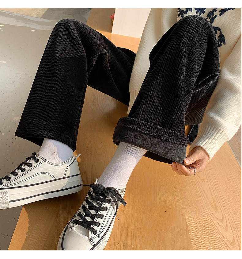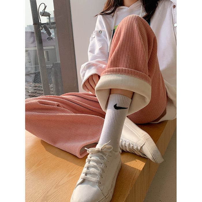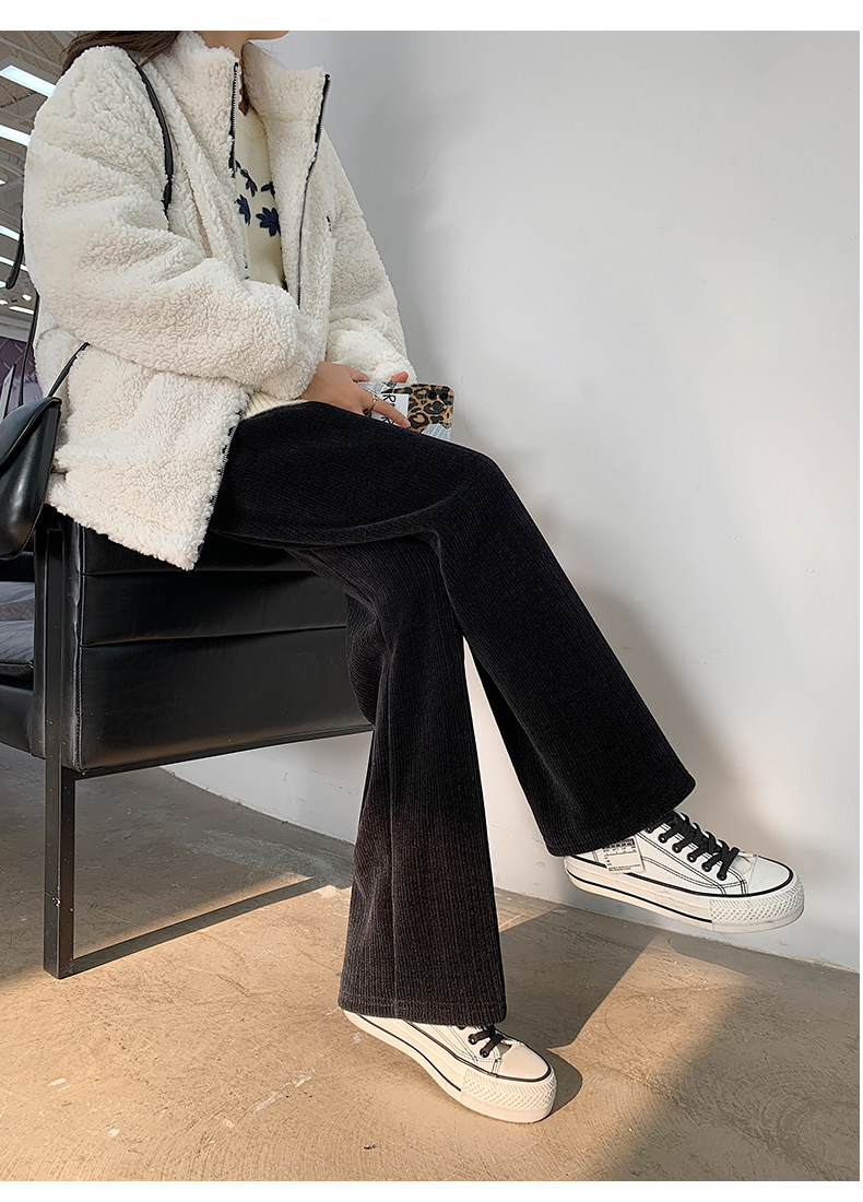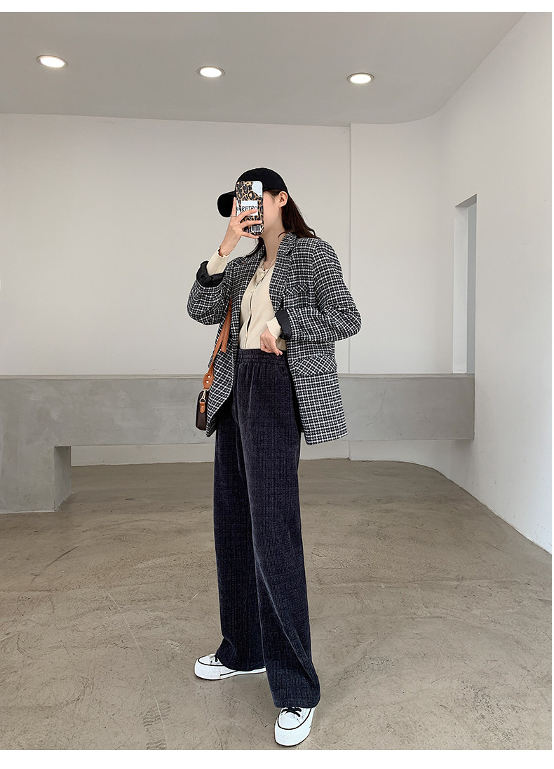 加絨雪尼爾濶腿褲女2025新款秋冬季高腰寬鬆直筒休閒褲燈芯絨褲子