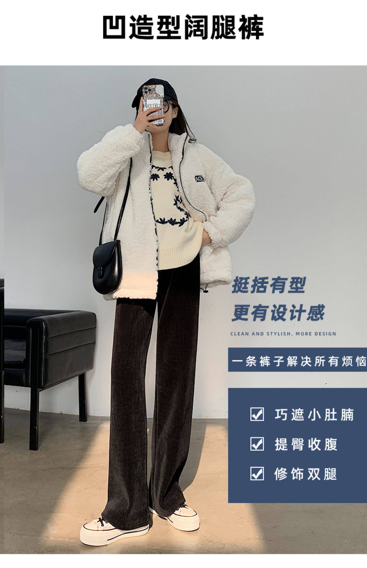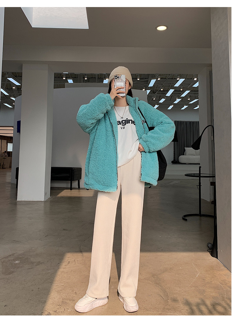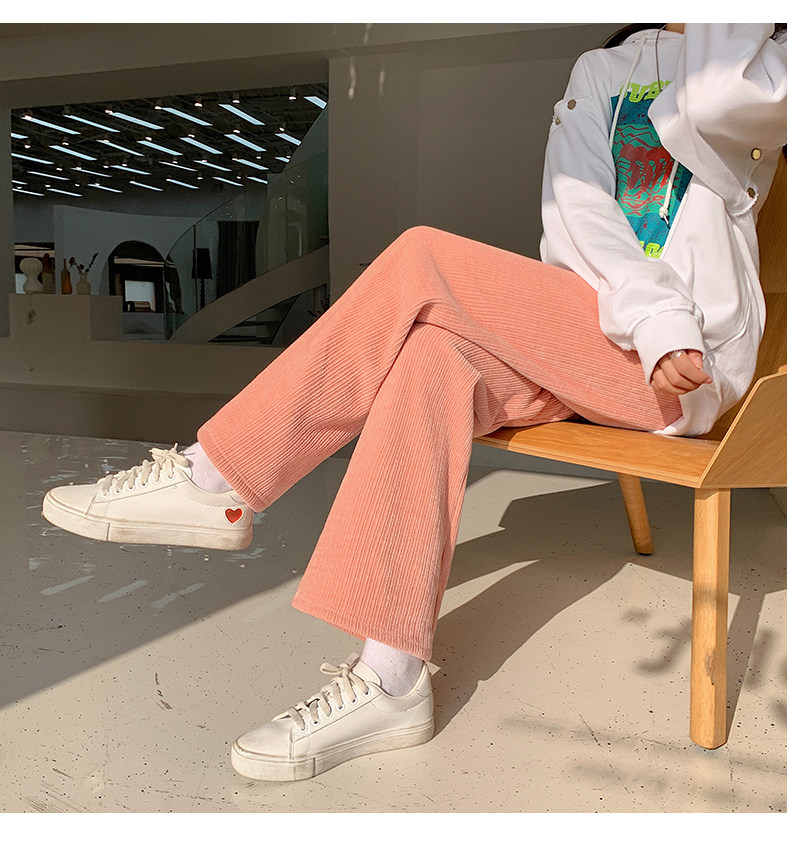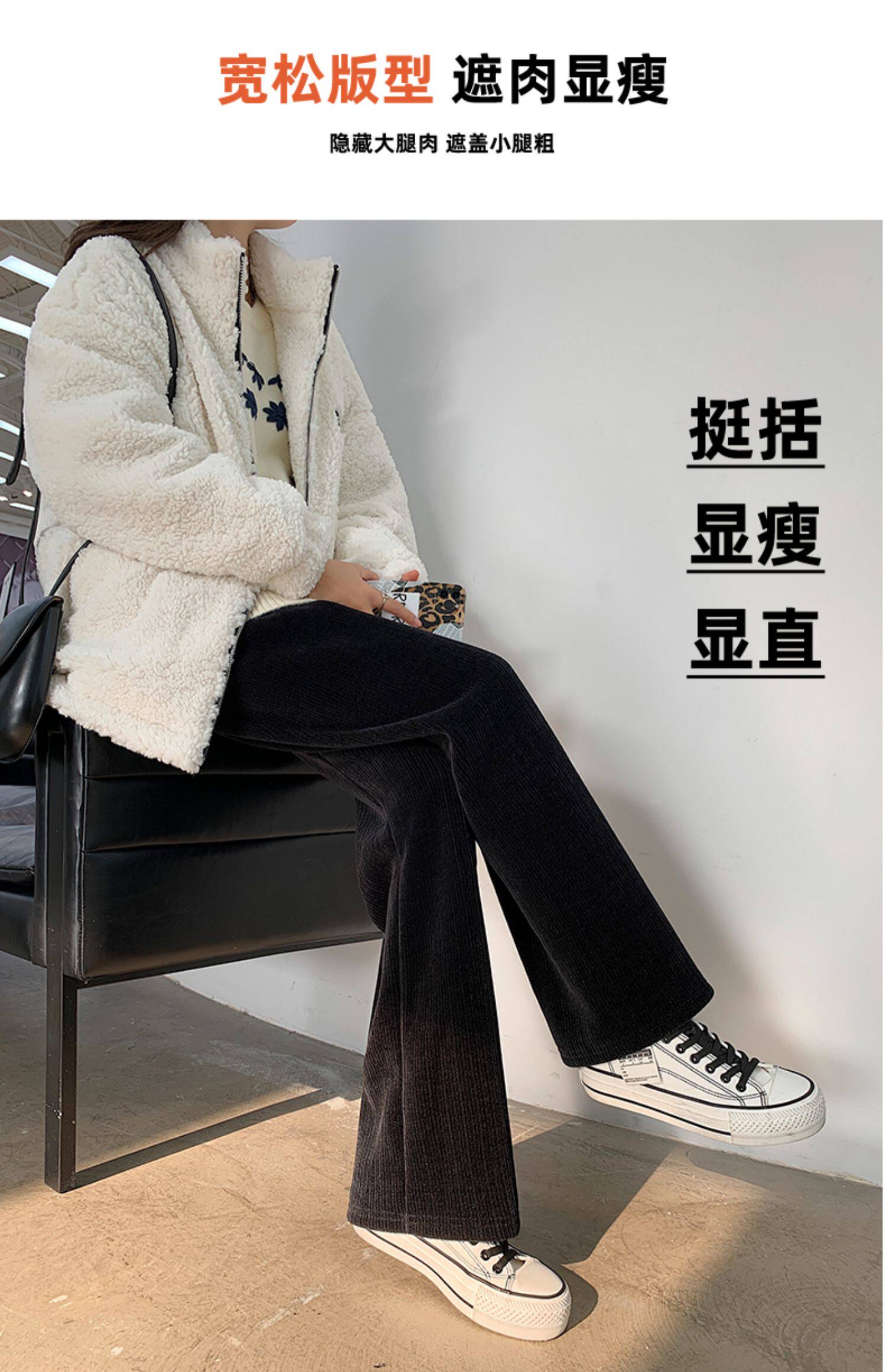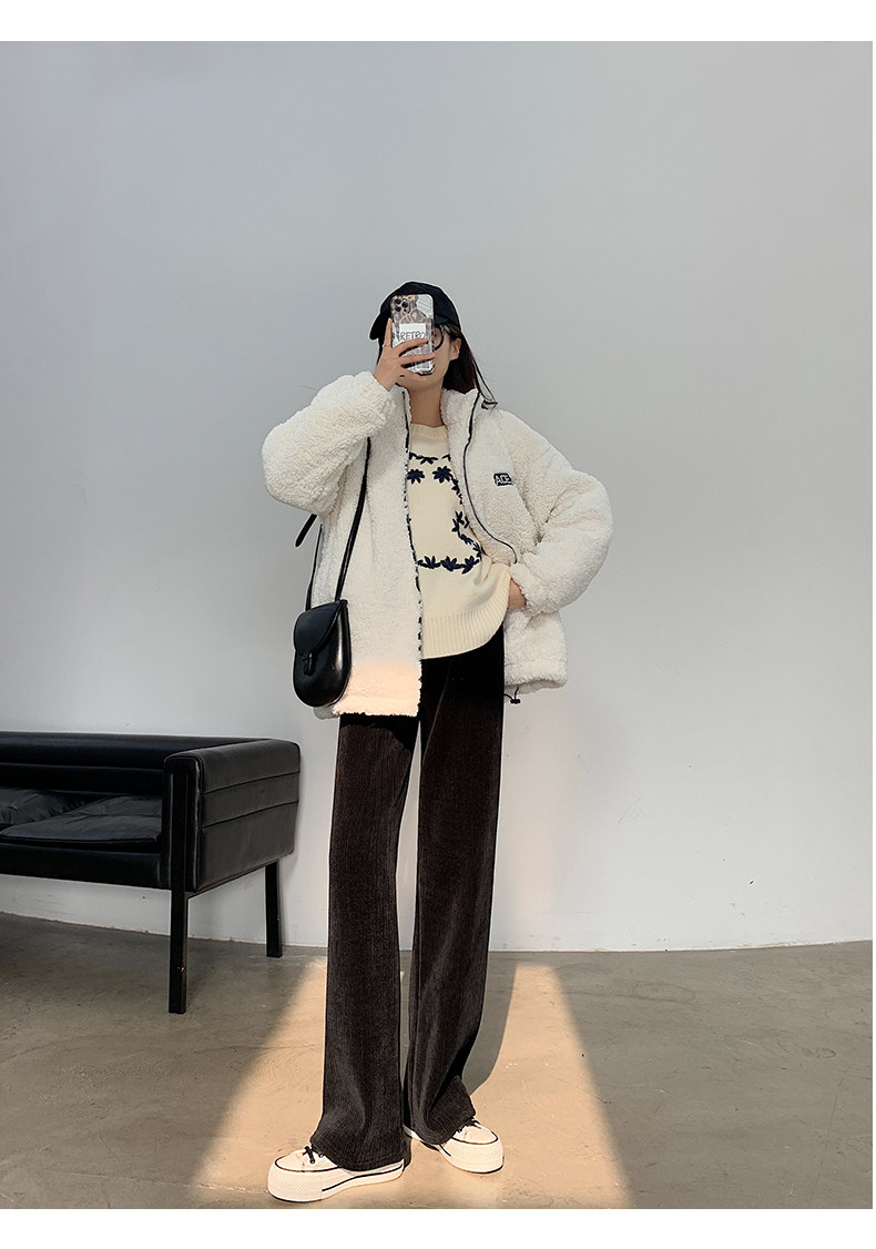 加絨雪尼爾濶腿褲女2025新款秋冬季高腰寬鬆直筒休閒褲燈芯絨褲子
