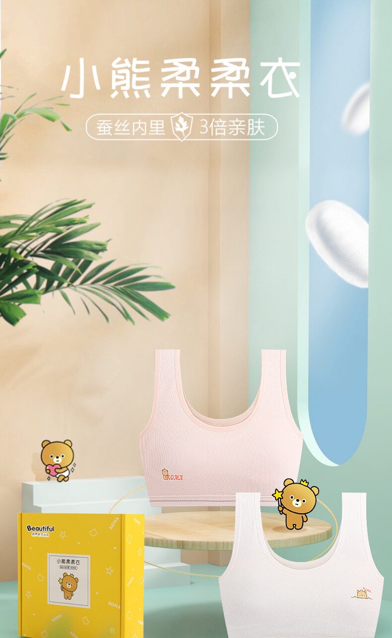 小熊柔柔衣一二階初中生內衣女文胸發育期少女內褲兒童運動防凸點