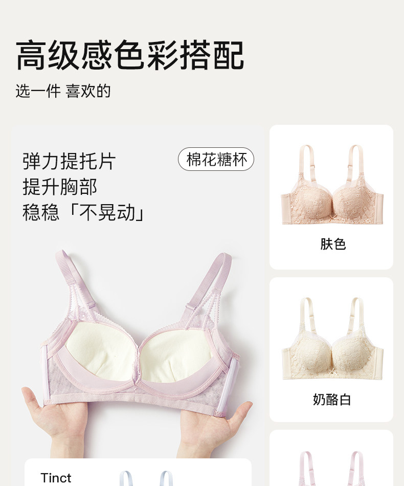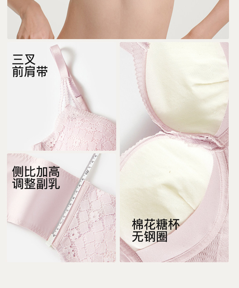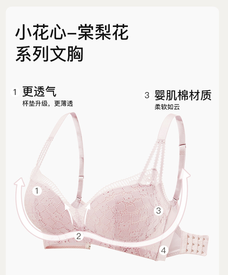 都市麗人小花心棠梨花內衣女小胸聚攏防下垂蕾絲透氣文胸無鋼圈