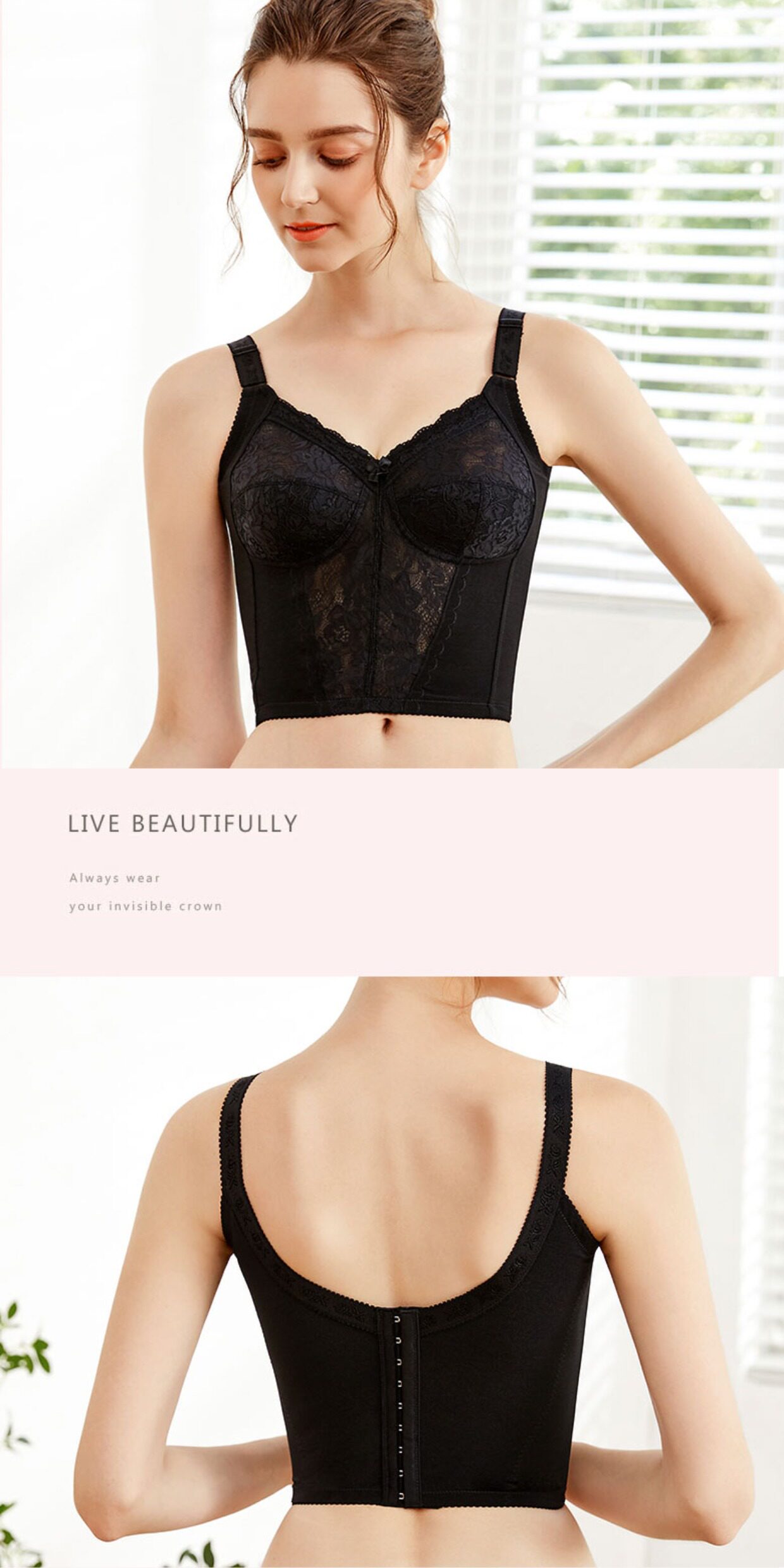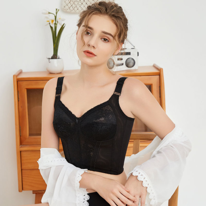 美容院無鋼圈調整型收副乳收胃大胸顯小全罩杯長文胸美背薄款內衣