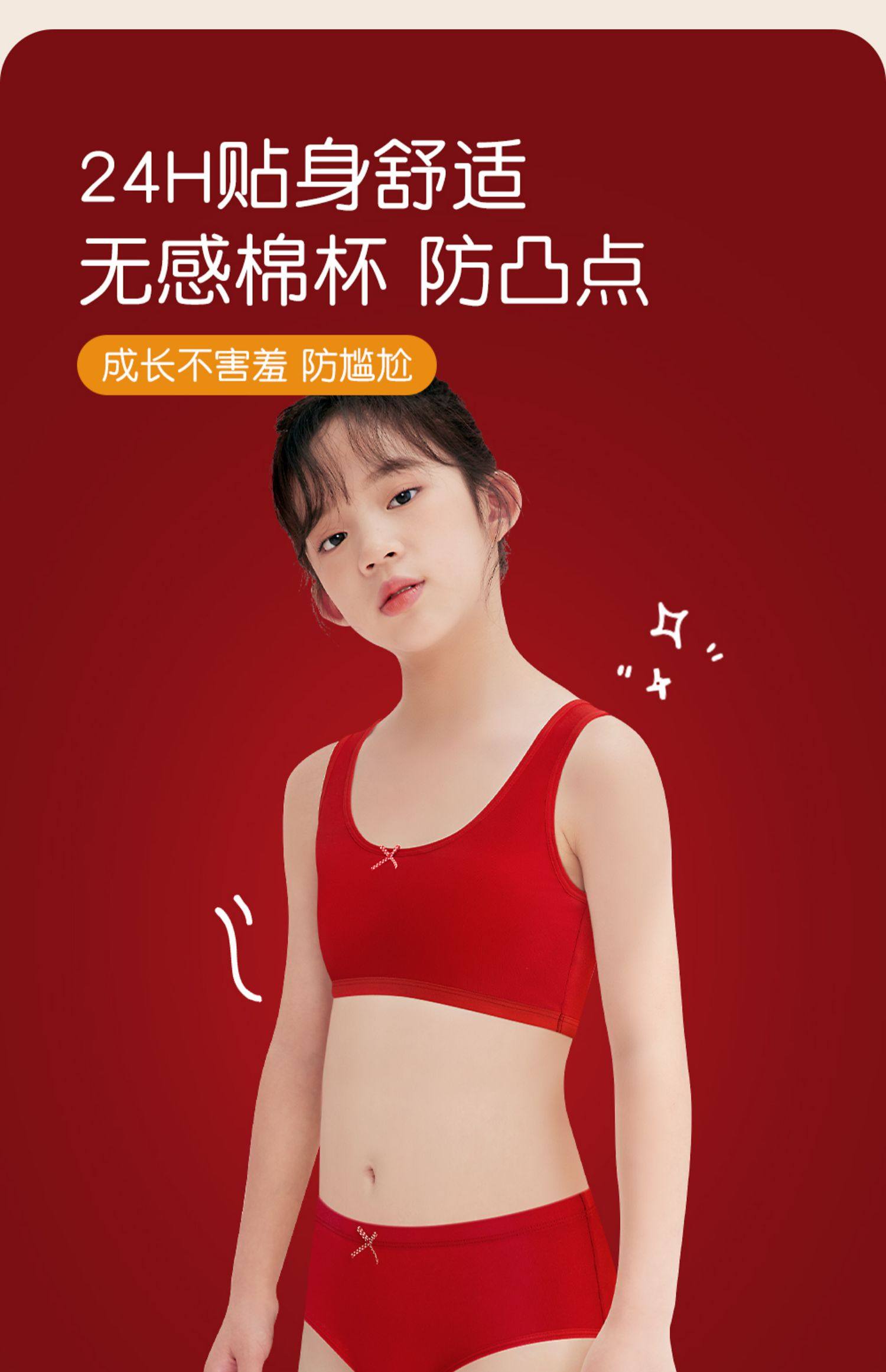 12嵗女孩本命年內衣內褲套裝女童紅色純棉背心學生發育期文胸馬年