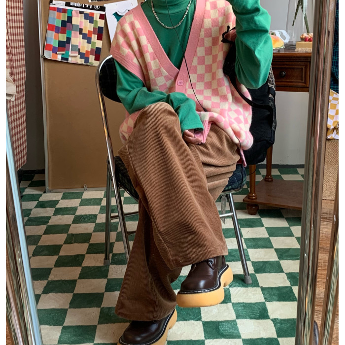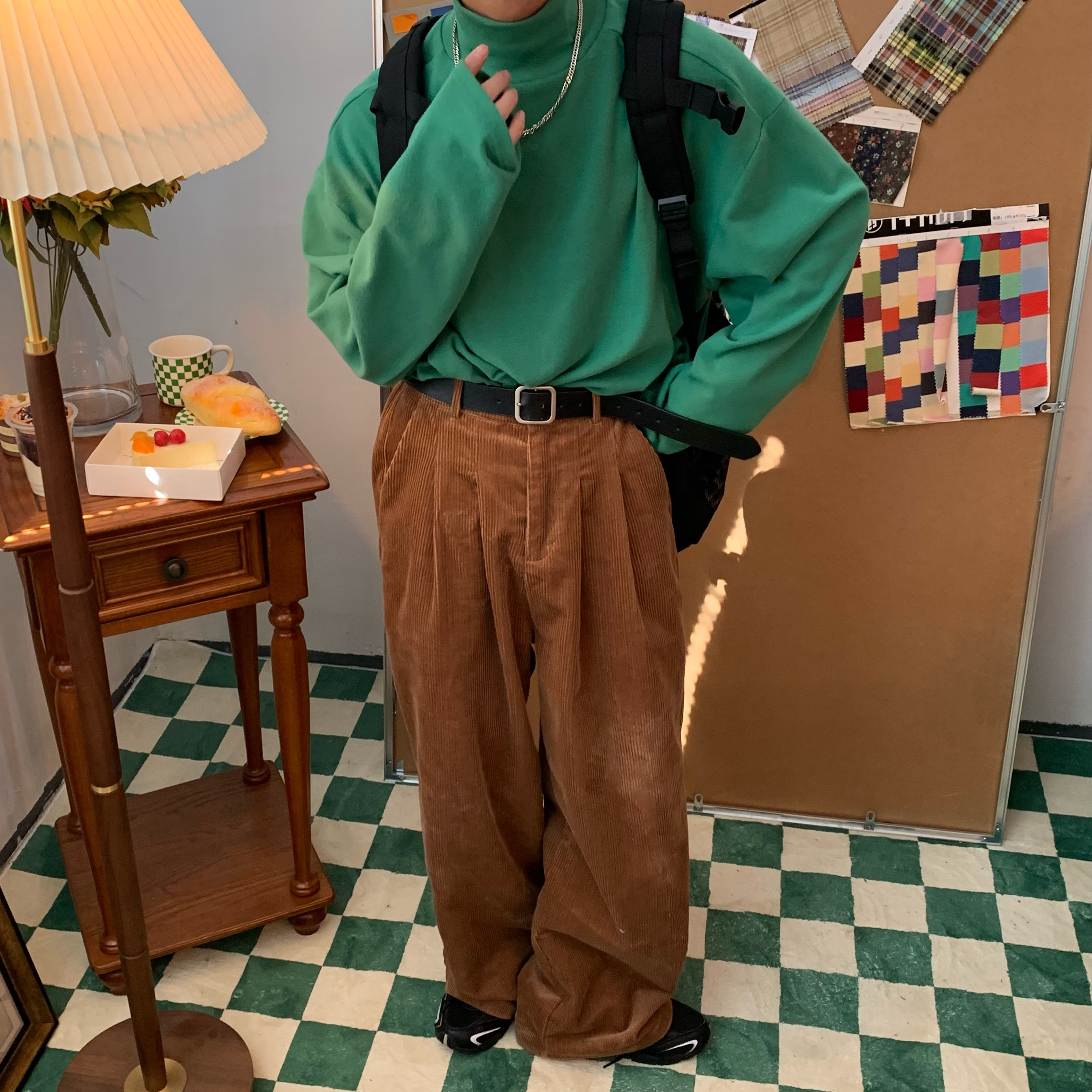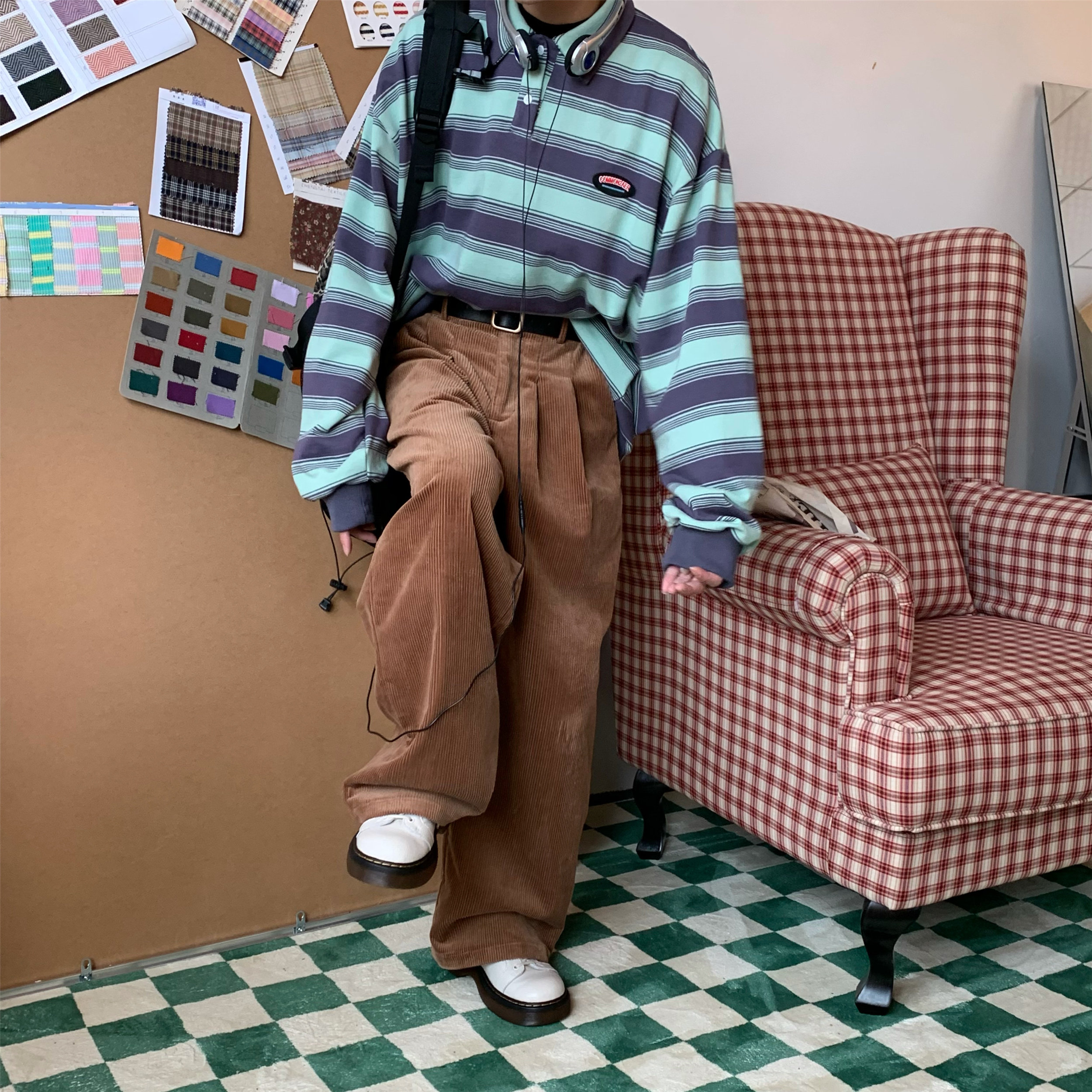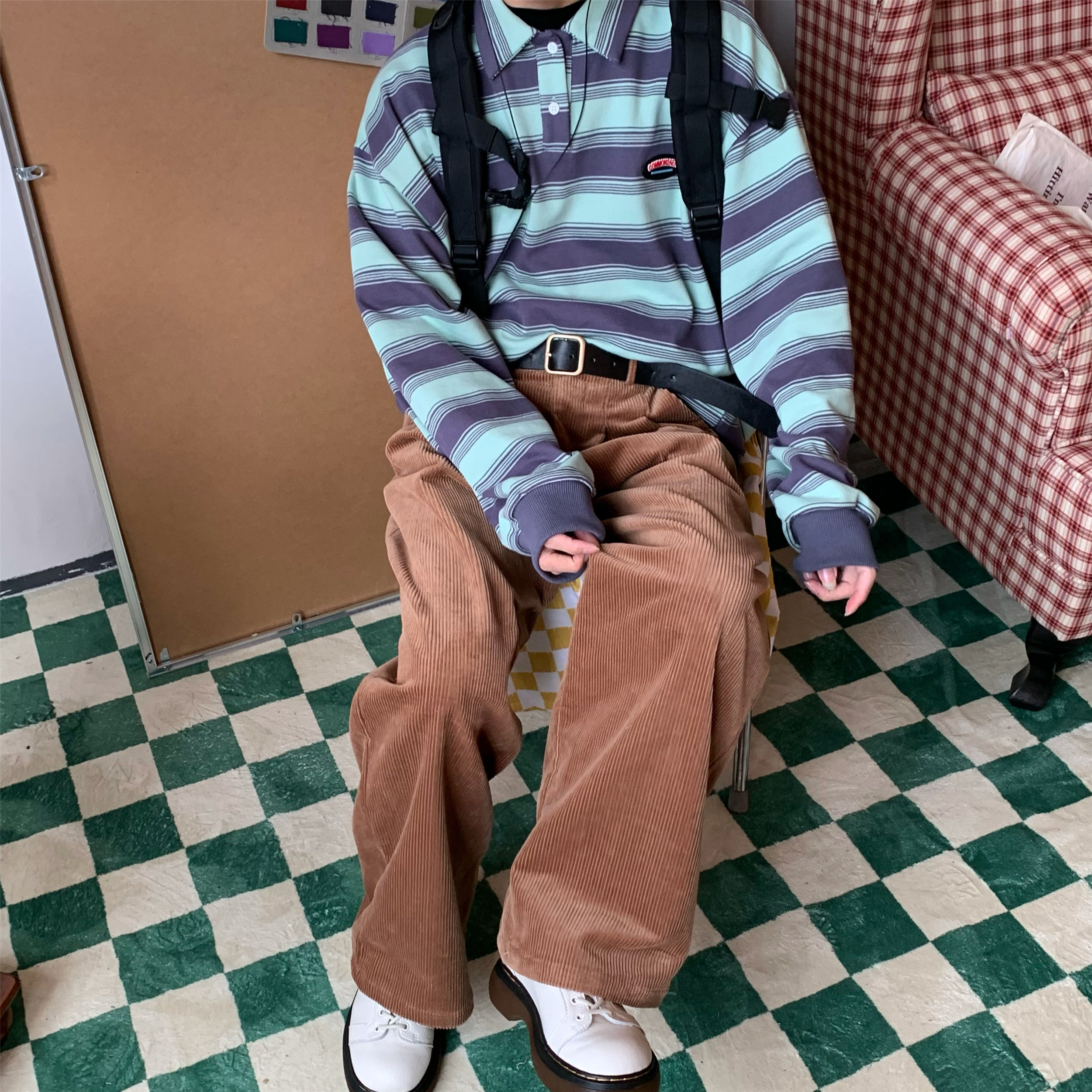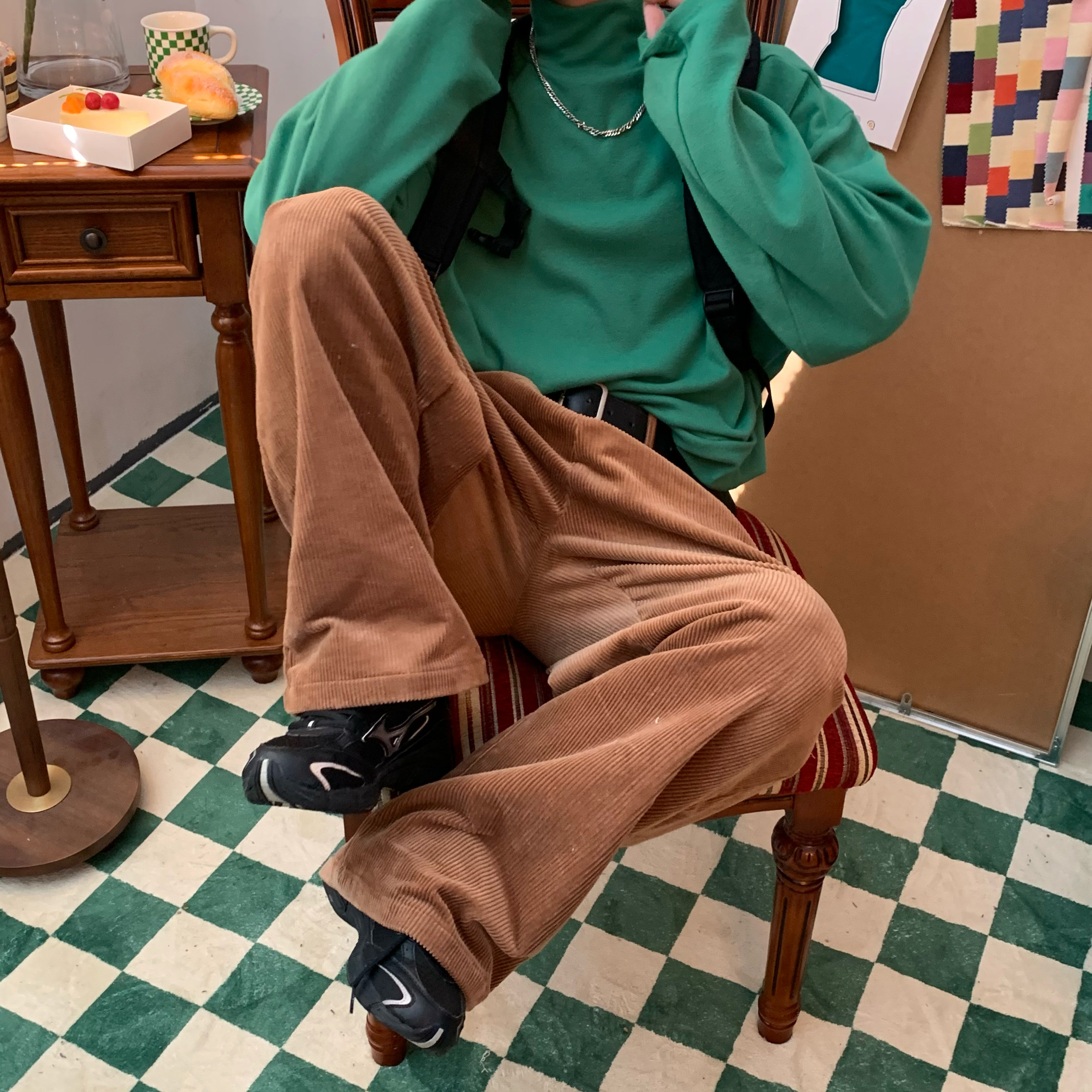 C2自製/港風復古燈芯絨休閒褲日系潮牌寬鬆濶腿褲子情侶百搭長褲