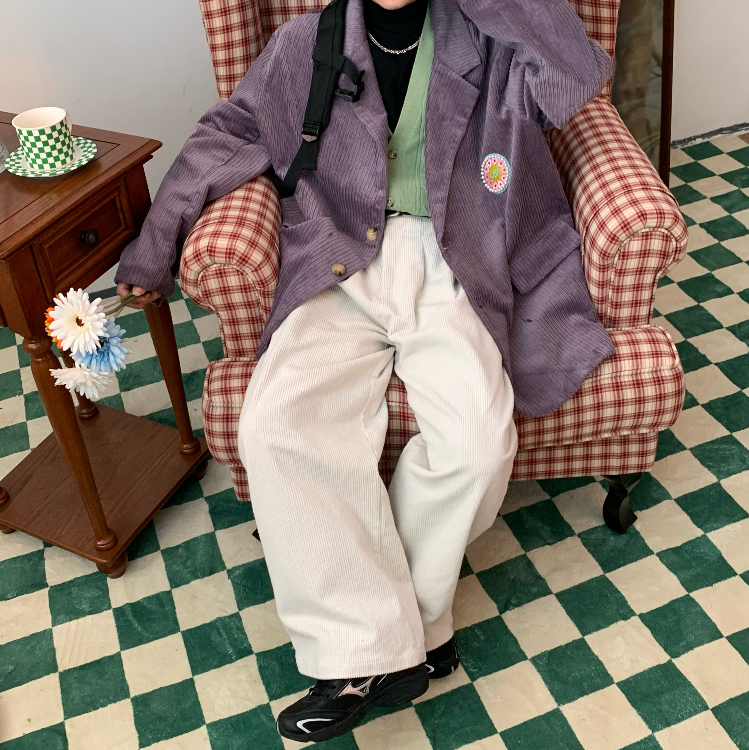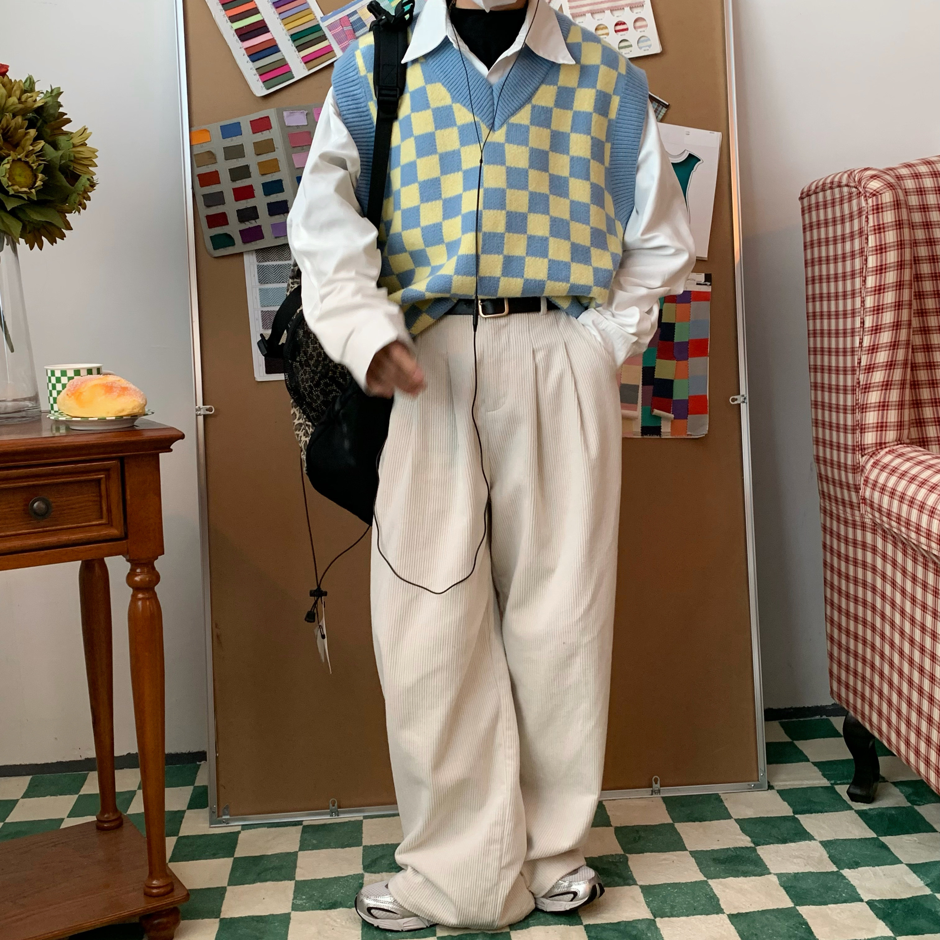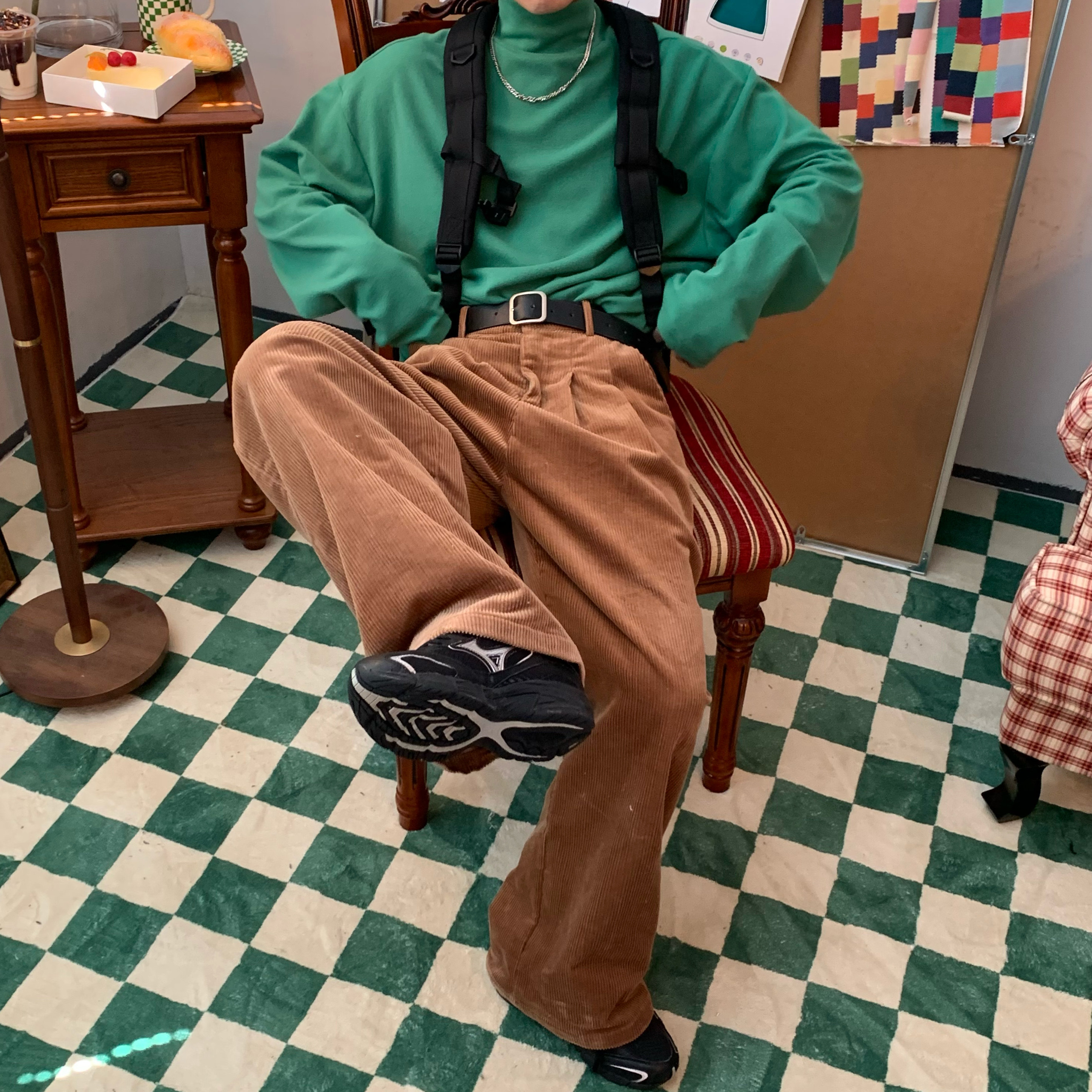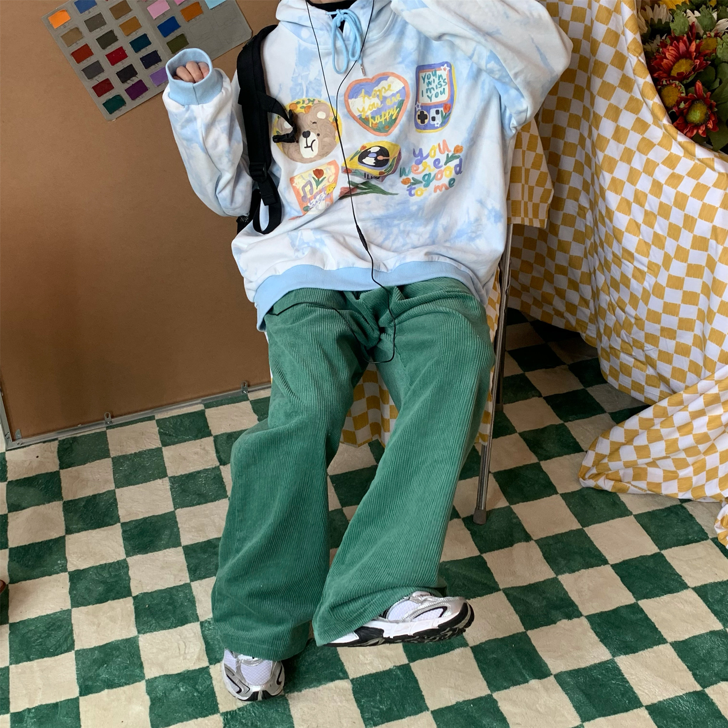 C2自製/港風復古燈芯絨休閒褲日系潮牌寬鬆濶腿褲子情侶百搭長褲