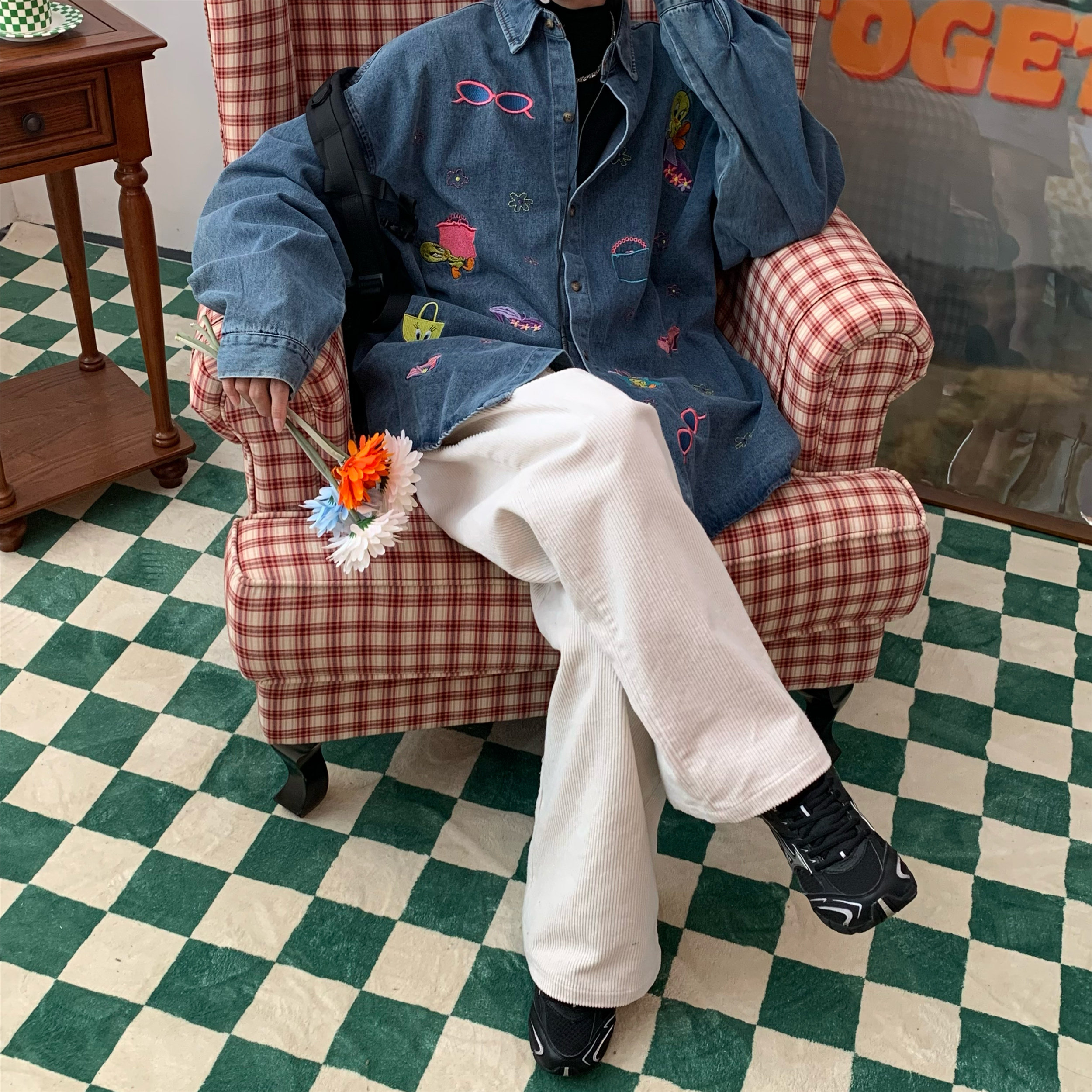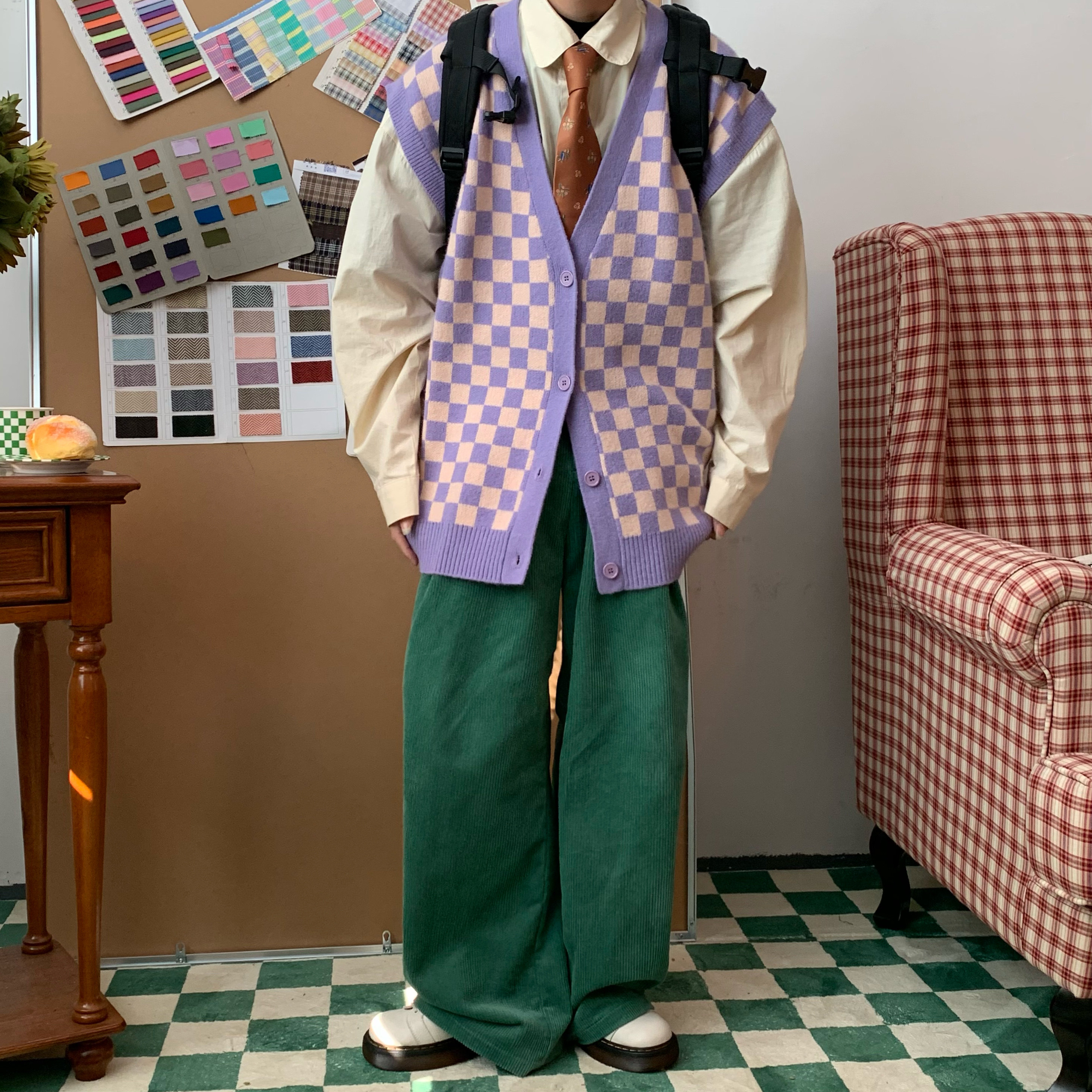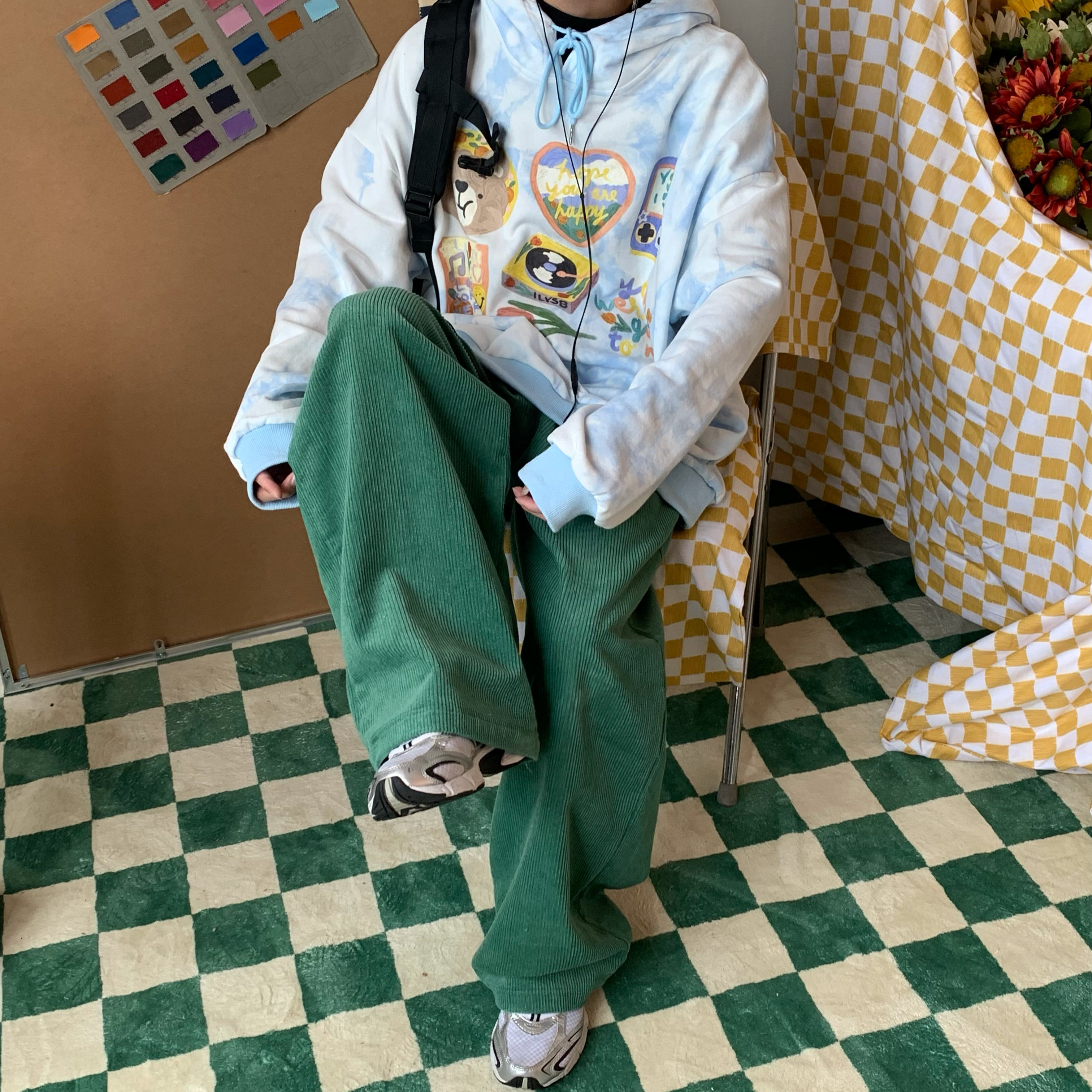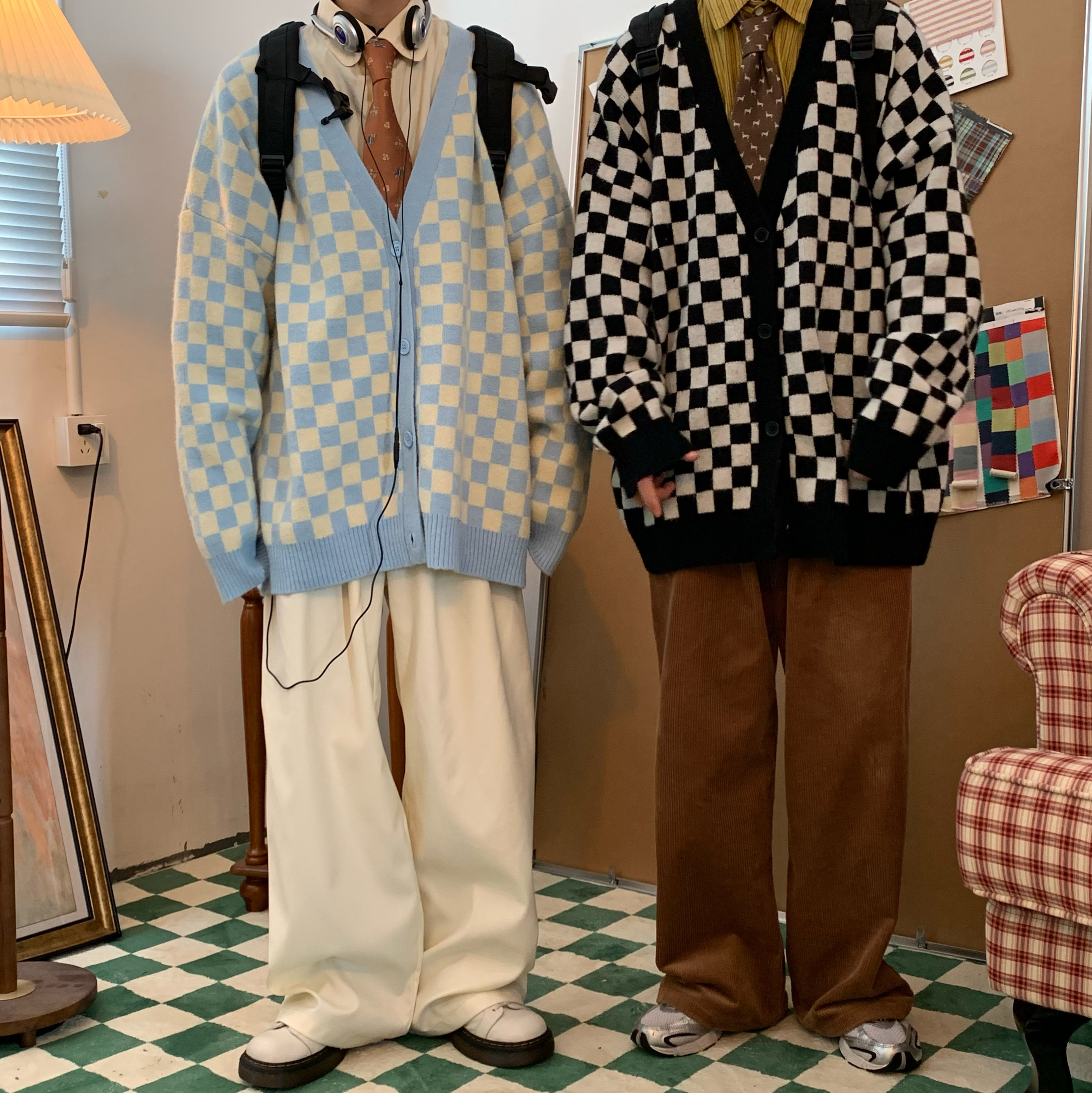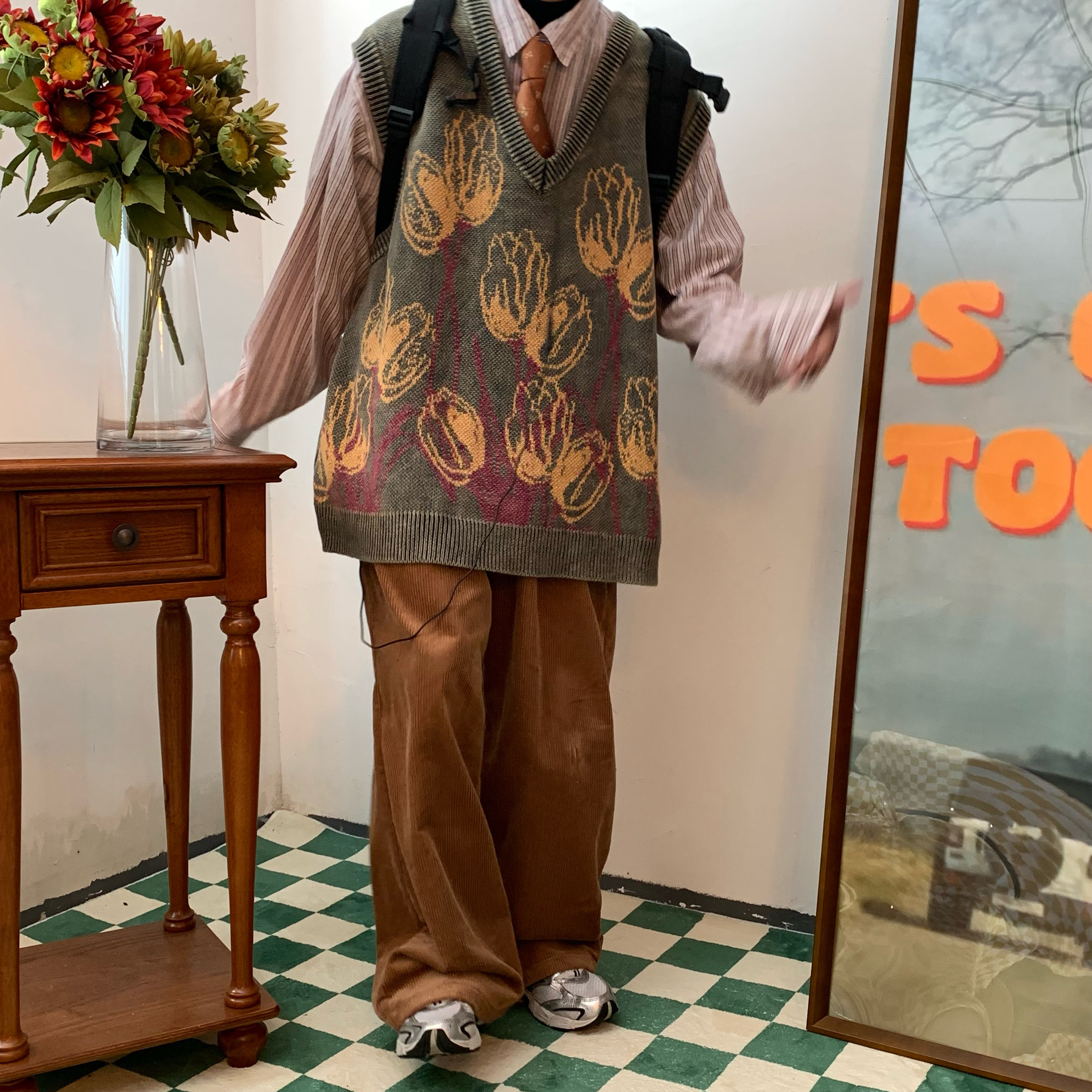 C2自製/港風復古燈芯絨休閒褲日系潮牌寬鬆濶腿褲子情侶百搭長褲