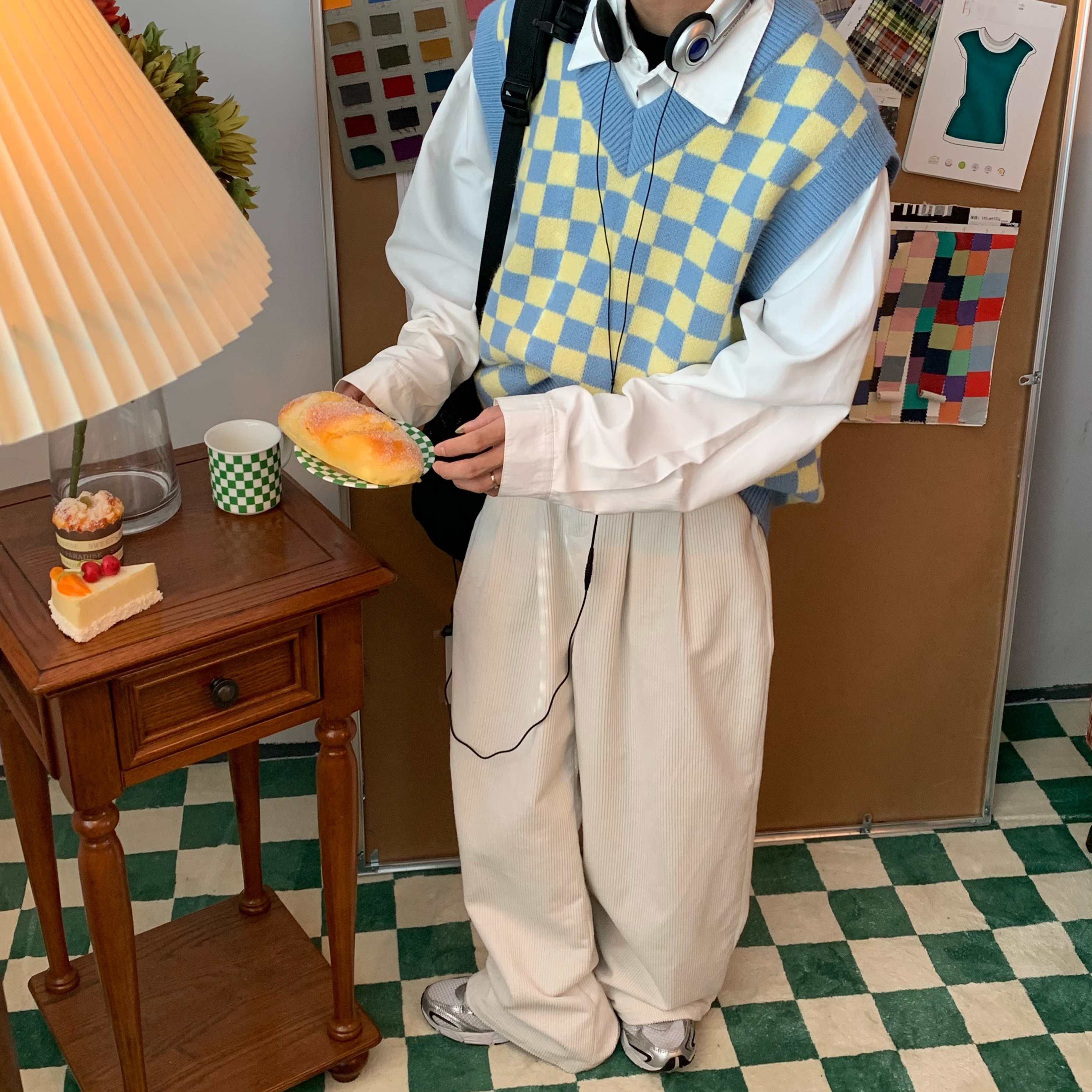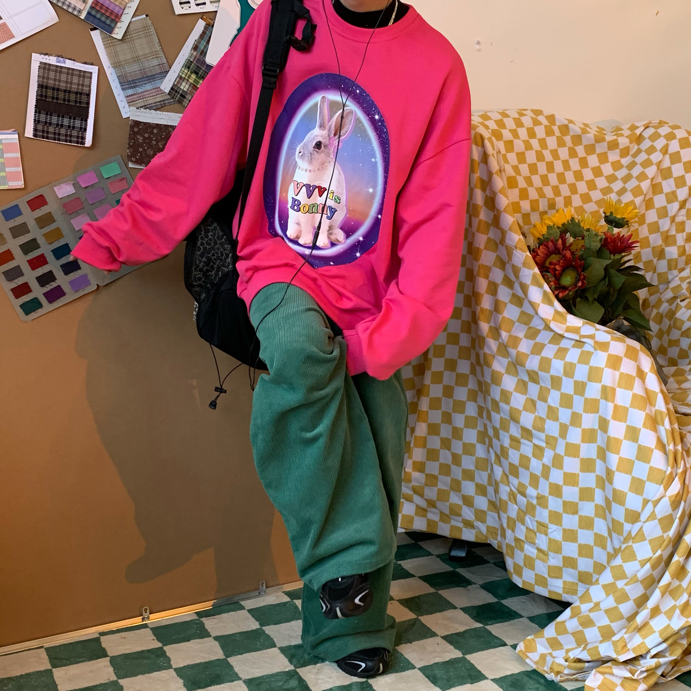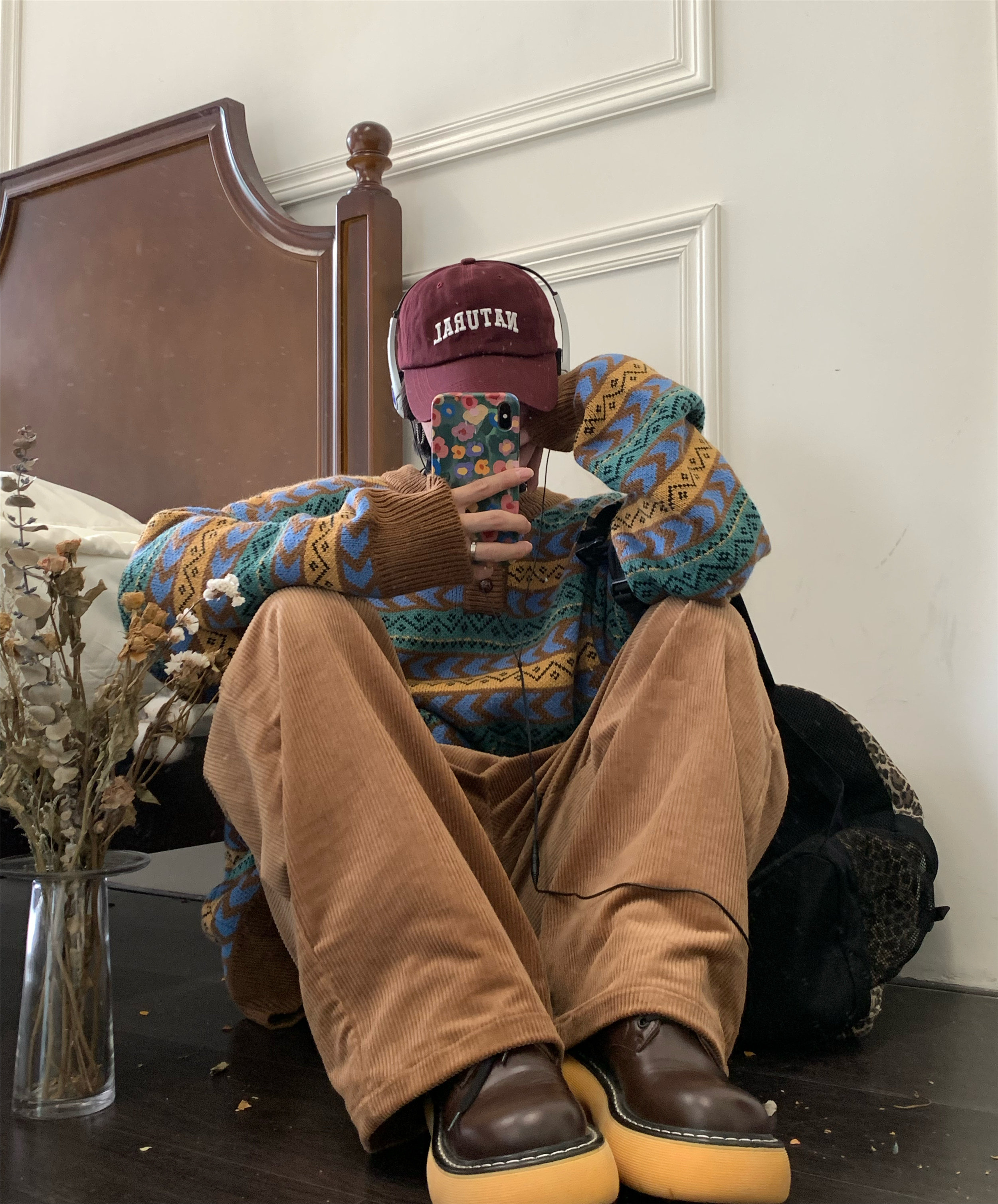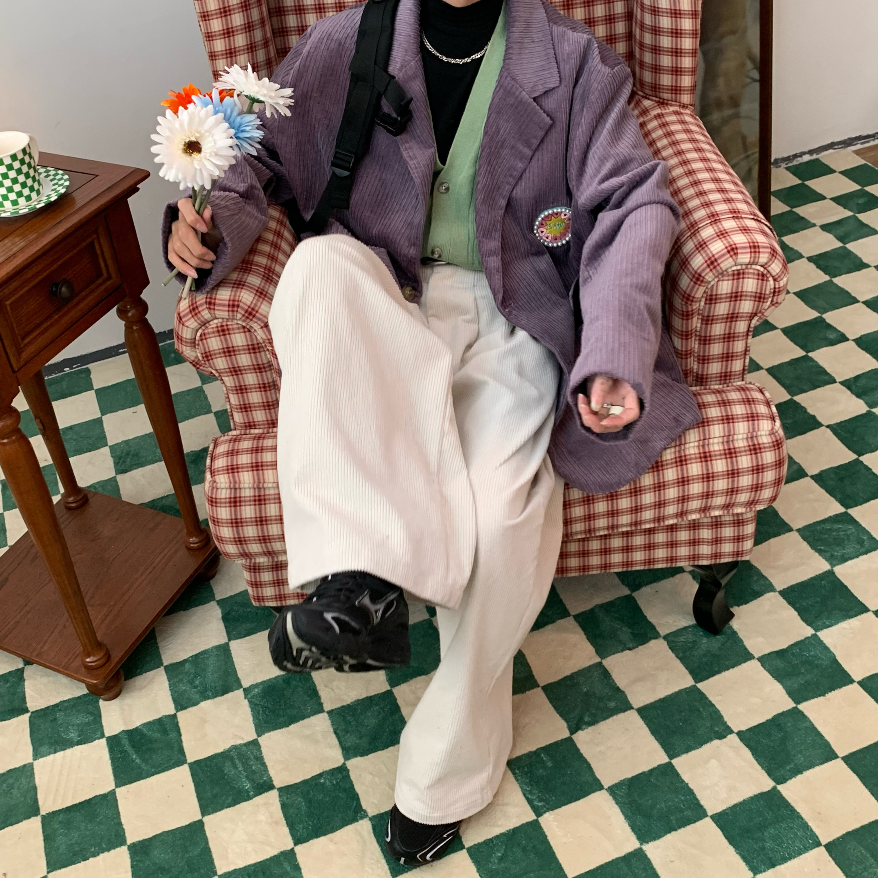 C2自製/港風復古燈芯絨休閒褲日系潮牌寬鬆濶腿褲子情侶百搭長褲