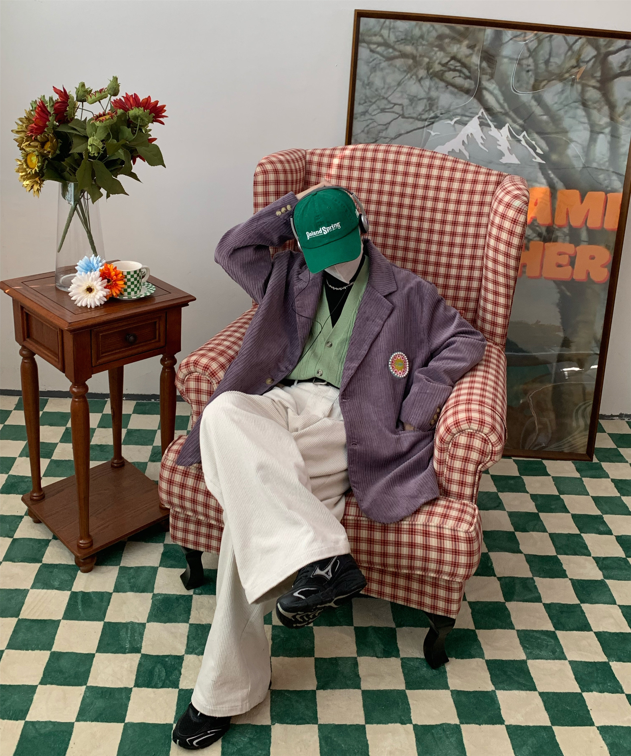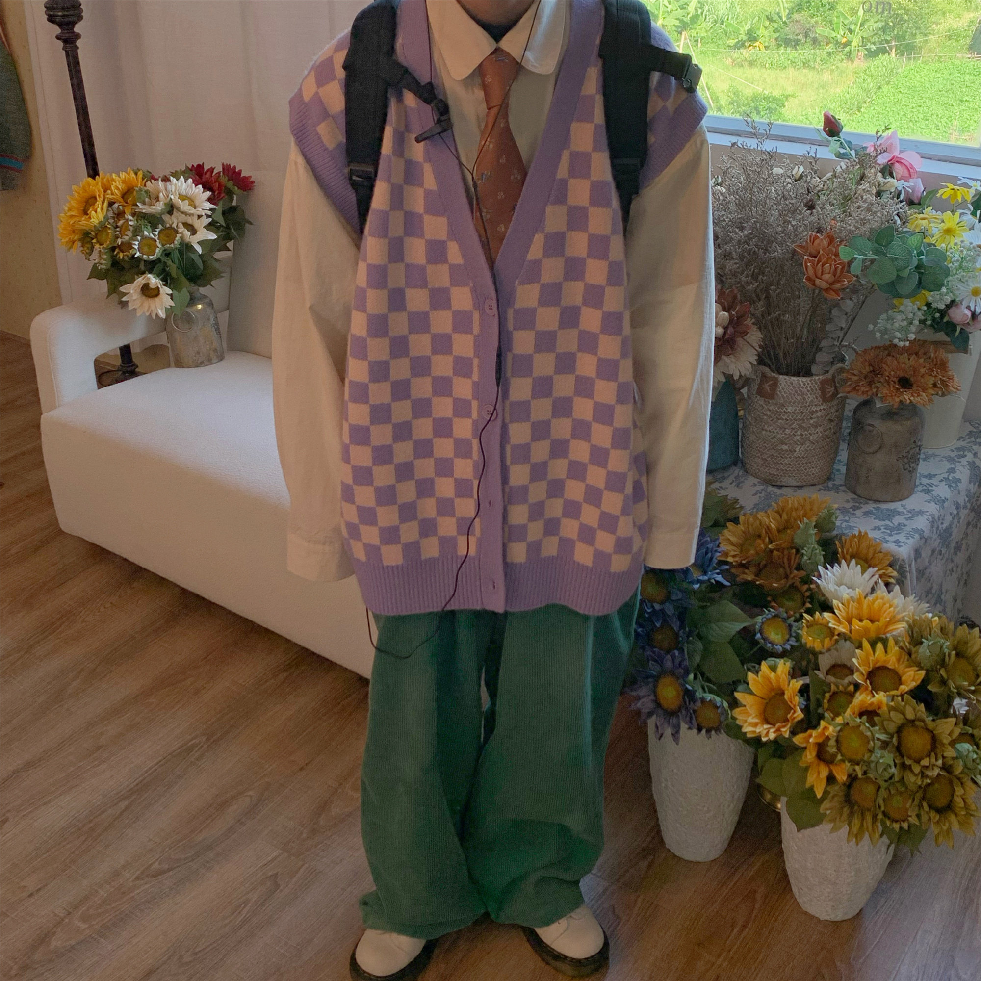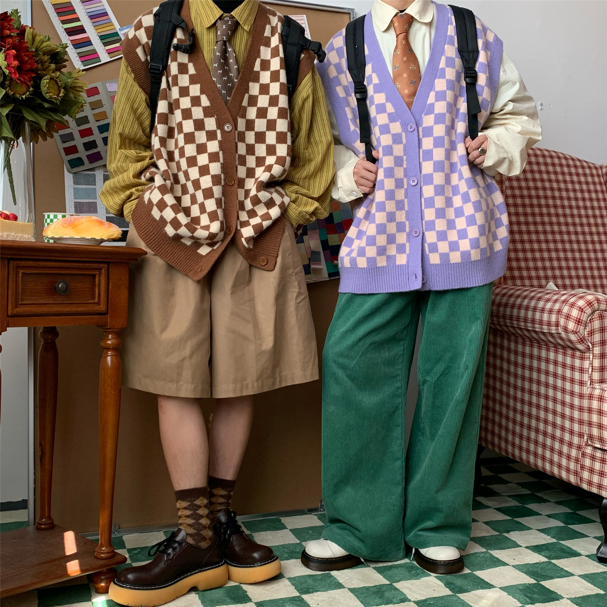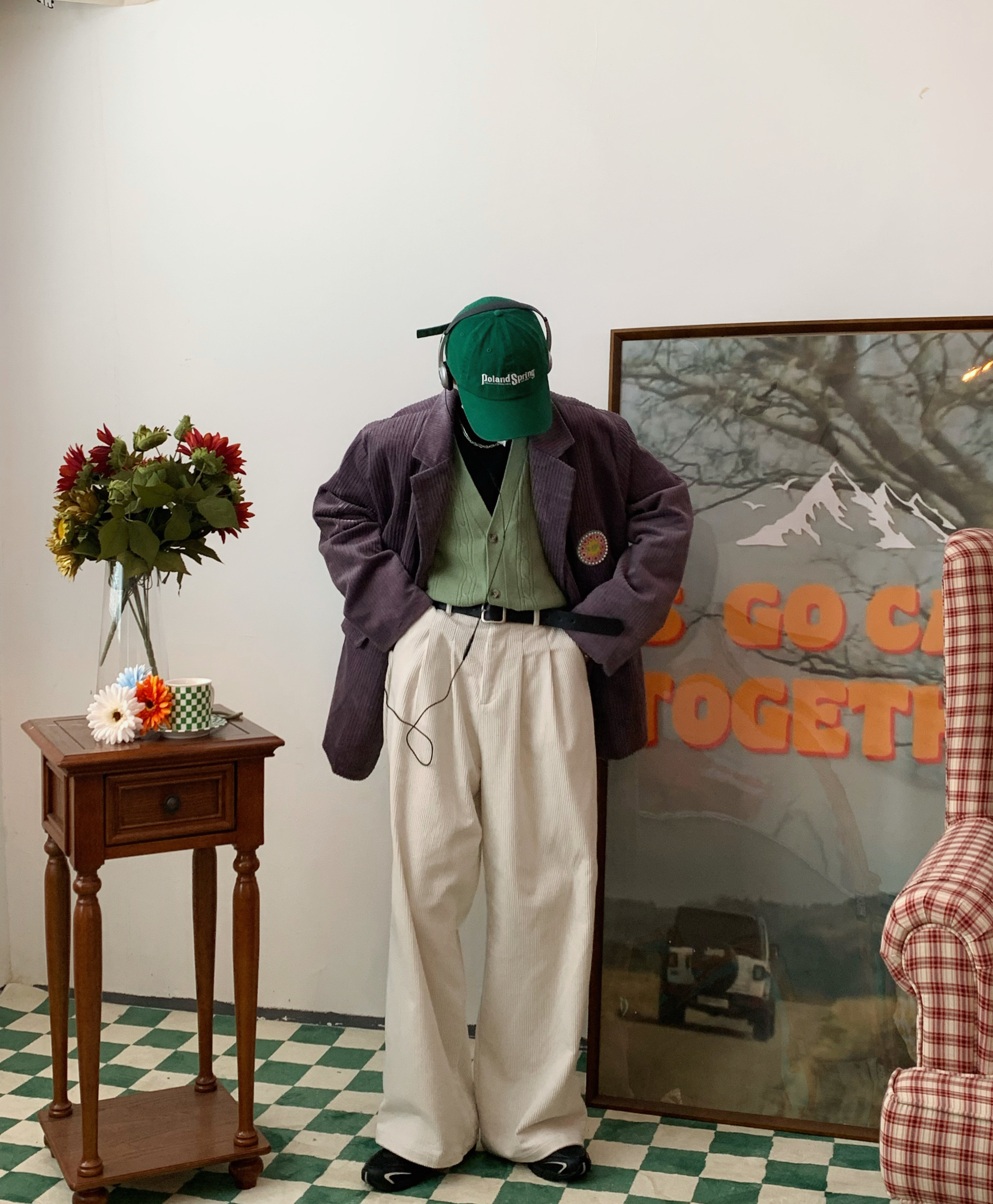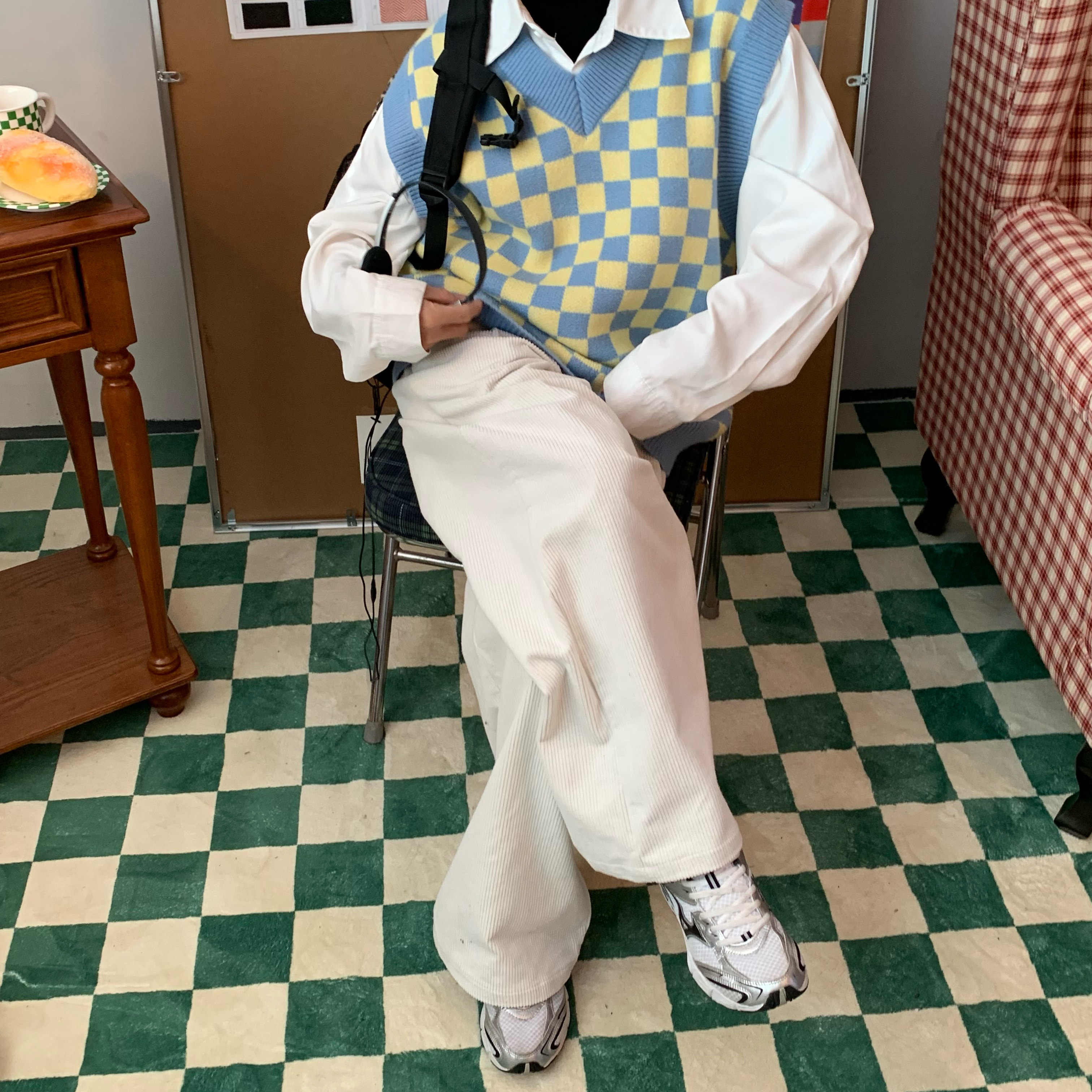 C2自製/港風復古燈芯絨休閒褲日系潮牌寬鬆濶腿褲子情侶百搭長褲