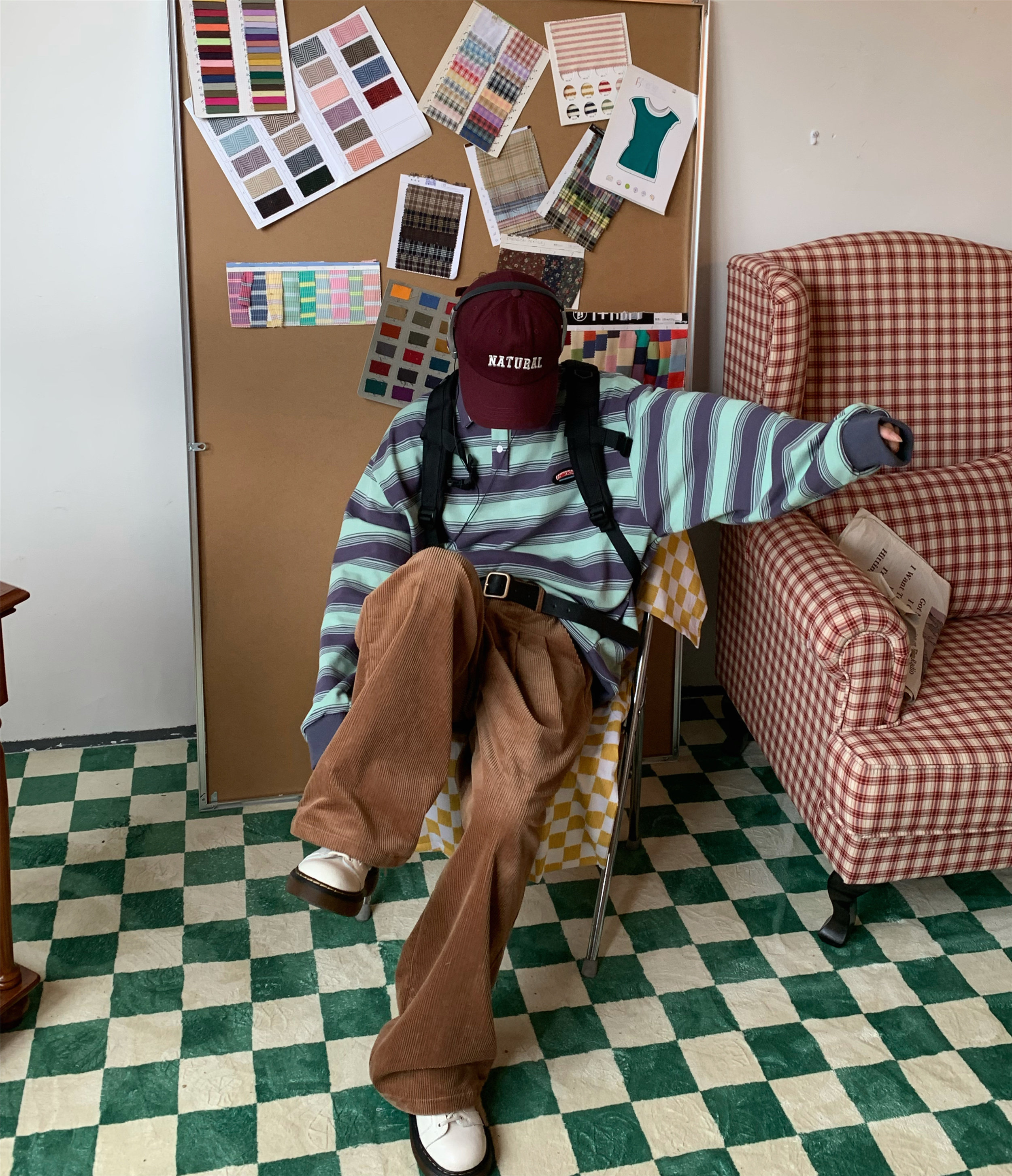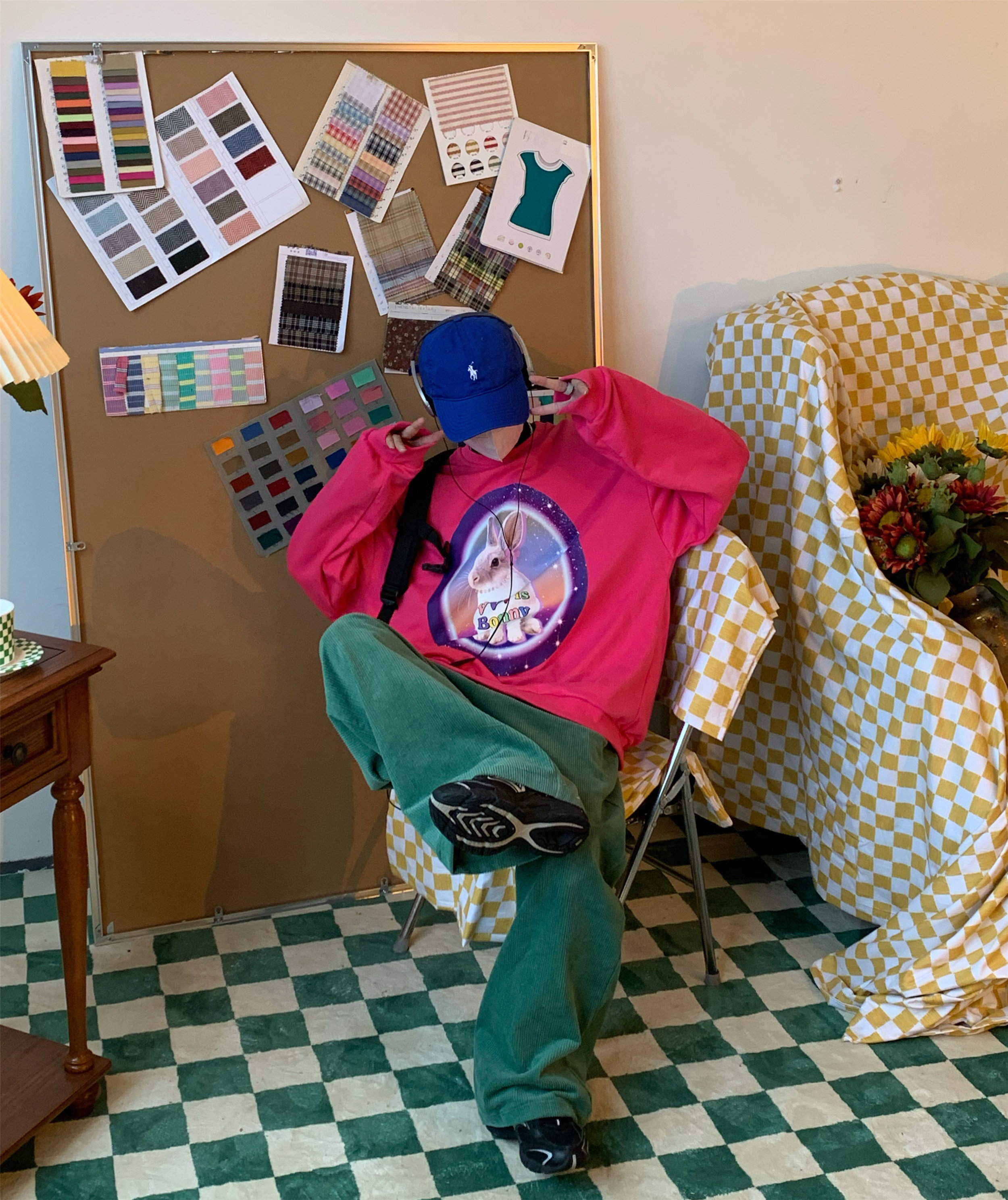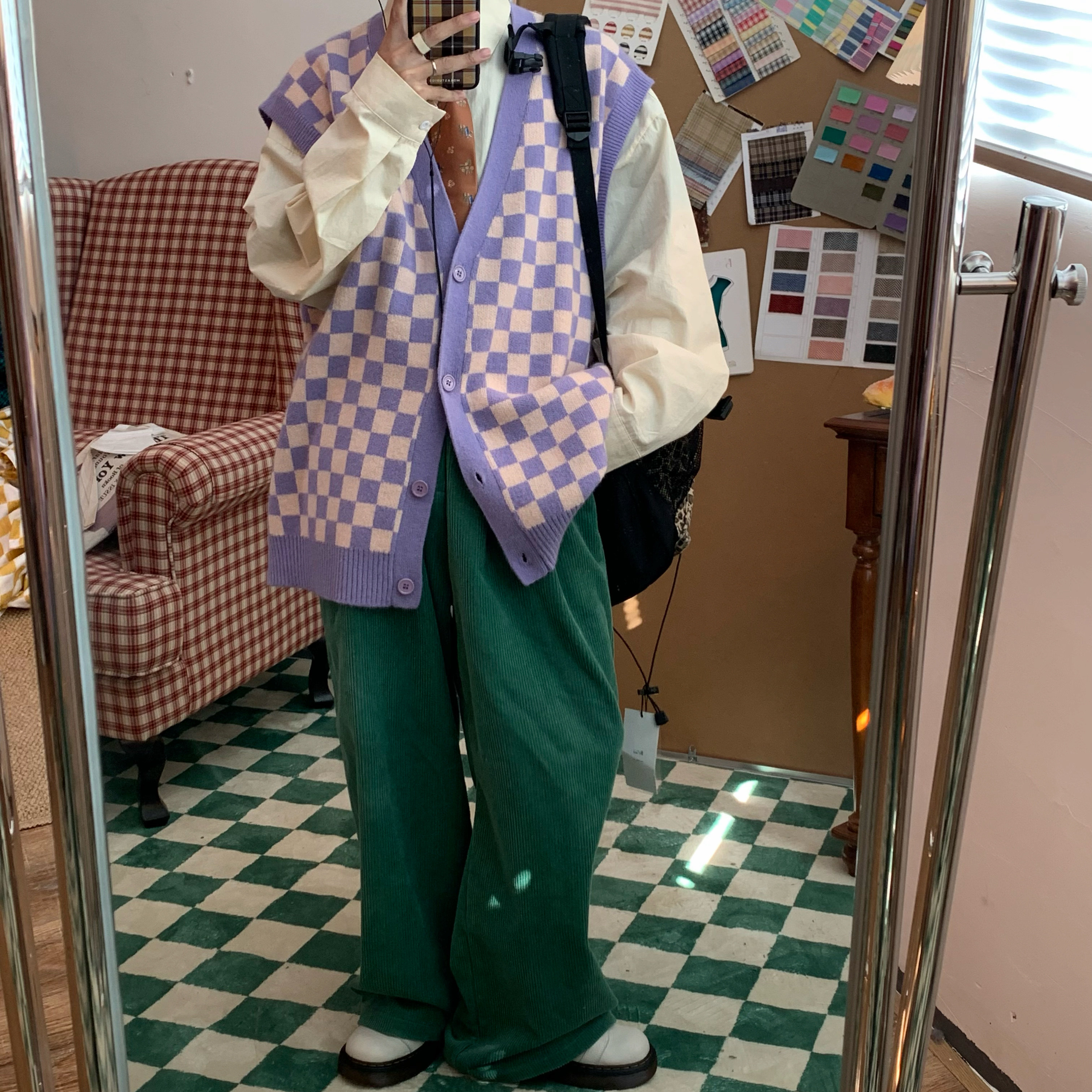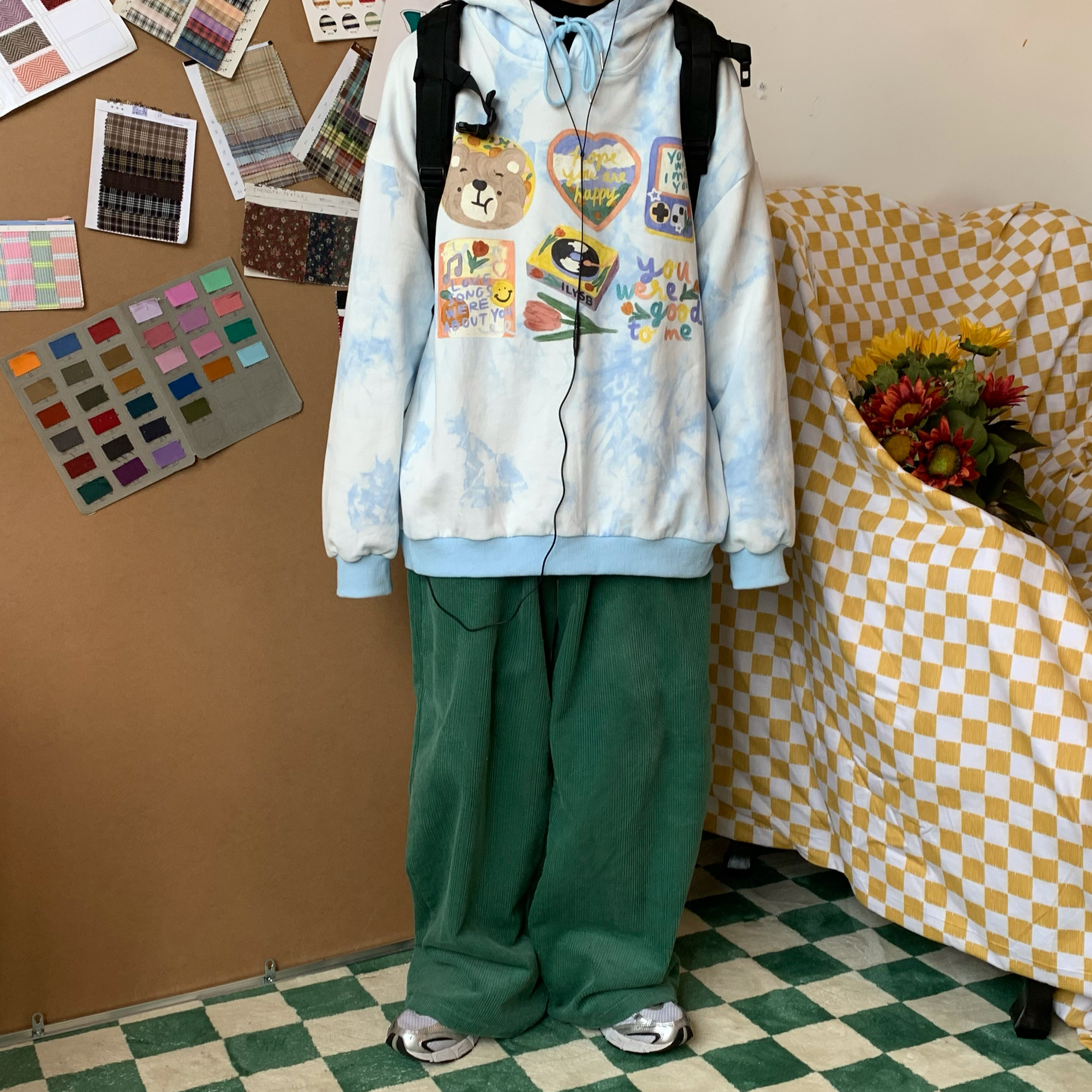 C2自製/港風復古燈芯絨休閒褲日系潮牌寬鬆濶腿褲子情侶百搭長褲