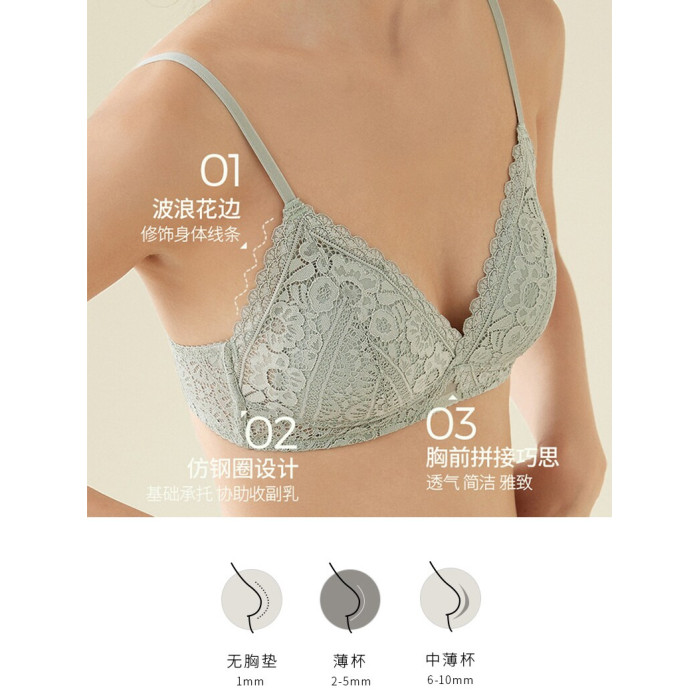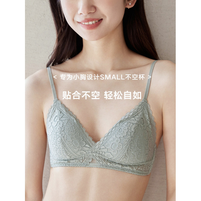 小胸平胸專用文胸三角杯不空無鋼圈法式內衣大胸顯小胸罩夏季薄款