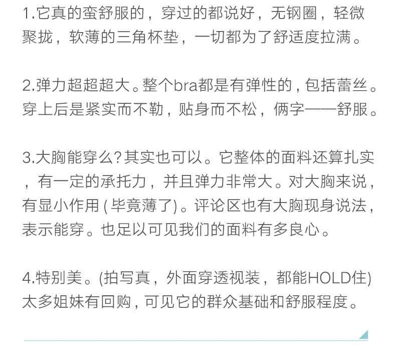 | 文胸款式 | U型、三角杯 |